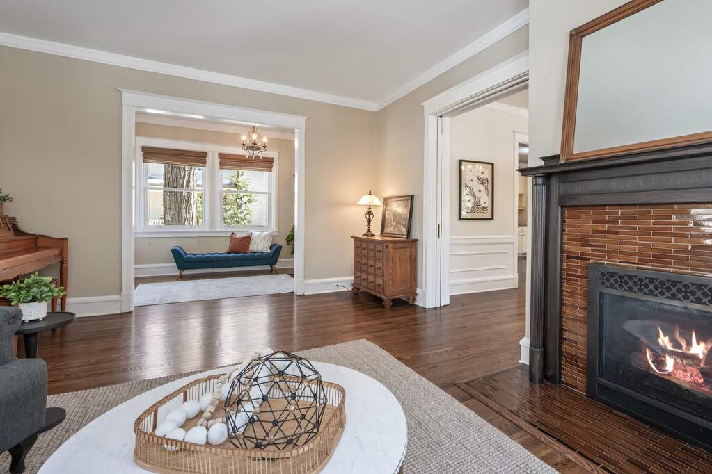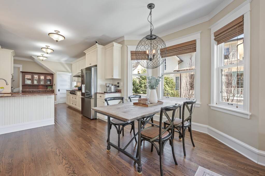 East Wilmette Beauty! Ideally located in one of Wilmette's most sought-after neighborhoods, this home offers exceptional walkability to downtown shops and restaurants, top-rated schools, the Metra, and the beach. Charming wide front porch, tall ceilings, and timeless vintage details are seamlessly blended with modern amenities. The thoughtfully designed open floor plan is filled with natural light throughout. The gourmet kitchen with stainless steel appliances opens to the family room, breakfast nook, and convenient mudroom-perfect for everyday living and entertaining. Four bedrooms are located on the second floor, along with a spacious laundry room and abundant storage closets. The expansive primary suite features vaulted ceilings, windows on three sides, and separate his-and-hers closets. The elegant primary bath includes a classic clawfoot tub, heated floors, dual sinks, and a separate shower. The third floor offers a private treetop bedroom and full bath, ideal for guests, a home office, or a quiet retreat. The dug-out finished basement with heated floors provides exceptional additional living space, including a media area, and bar for entertaining. A full bath, exercise room, and additional laundry area complete the lower level. Outside, enjoy a long private driveway, a secluded backyard with a patio, and a two-plus-car garage. An unbeatable East Wilmette location combining convenience, charm, and lifestyle. Welcome home!