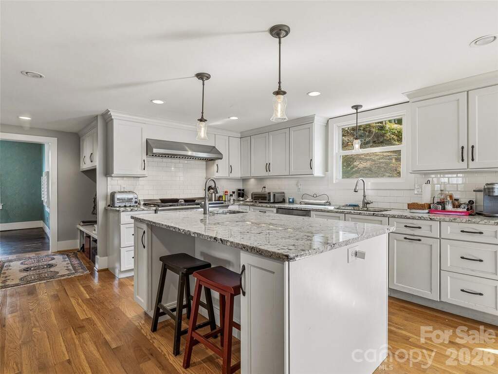 Welcome to 3 Perrion Avenue in Weaverville, a remarkable historic home offering over 4,500 heated square feet and an abundance of character rarely found today. Originally built in 1913, this property blends timeless architecture with thoughtful updates while preserving the charm that makes historic homes so special. Featuring 6+ bedrooms and 7 full bathrooms, six of the bedrooms include private en-suite baths, providing exceptional flexibility for large households, guests, or potential hospitality uses. Spacious living areas throughout the home showcase classic architectural details and a sense of history that is increasingly rare. The fully remodeled eat-in kitchen (2013) is designed for both everyday living and entertaining. It features granite countertops, custom cabinetry, a double oven, oversized gas range, and a stainless steel side-by-side Frigidaire refrigerator/freezer, offering generous space for cooking and gathering. Additional updates in 2013 include the upstairs primary bathroom and main-level laundry room, both finished with granite countertops and custom cabinetry. The primary bath also features a glass-enclosed shower, providing a refined and comfortable retreat. Step outside to the covered front porch, where you can enjoy sweeping 180-degree long-range westerly views-an ideal place to relax and take in unforgettable mountain sunsets. The property also includes a detached two-car garage and a full sauna located in the finished basement, creating an additional space for relaxation. Located just a short walk to charming downtown Weaverville, you'll enjoy easy access to local restaurants, shops, breweries, and community events while still enjoying the setting and presence of a historic property. Rich in history and architectural character, this home presents a rare opportunity for the next owner to add their personal touch and restore it to its full potential.