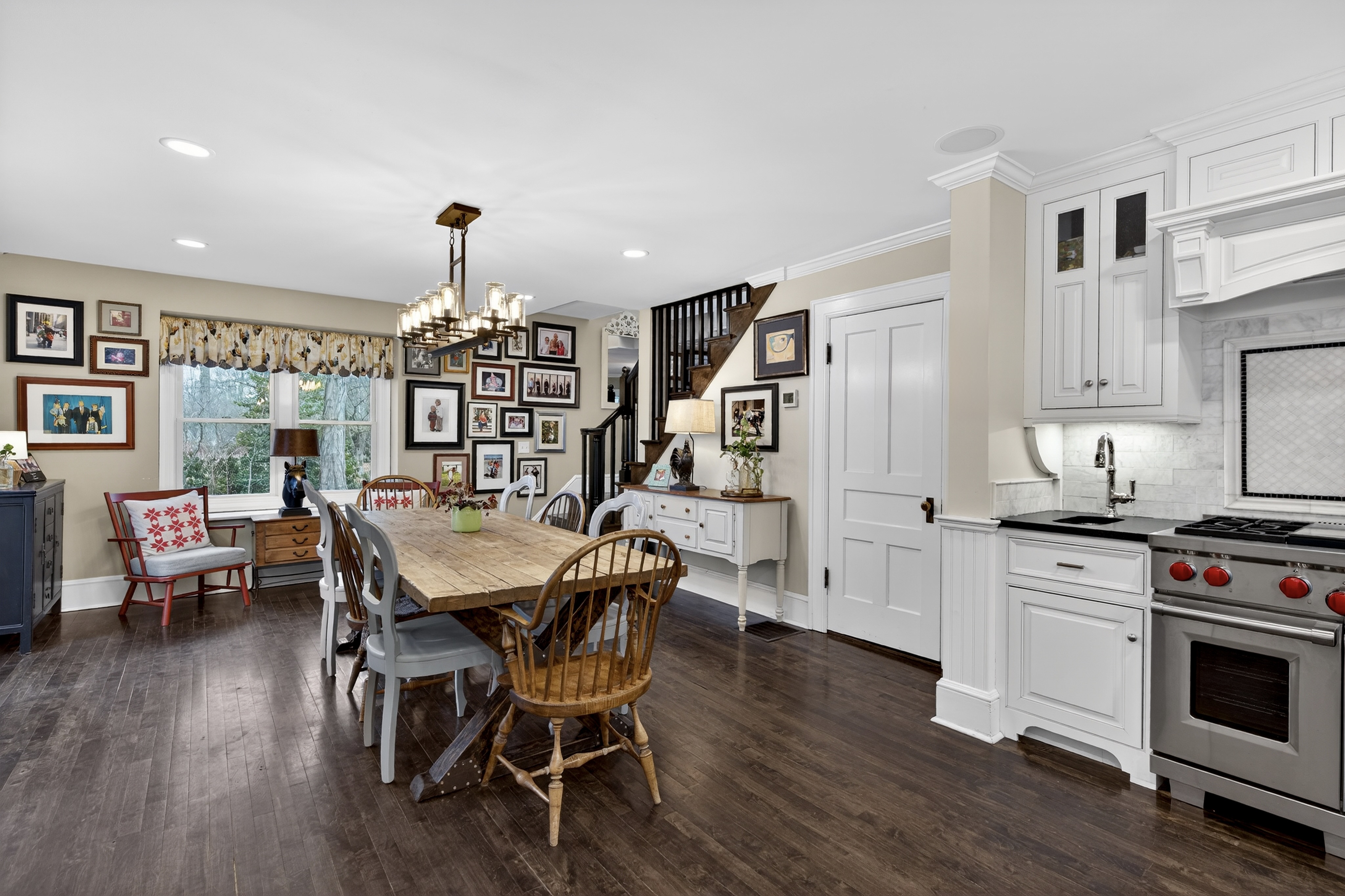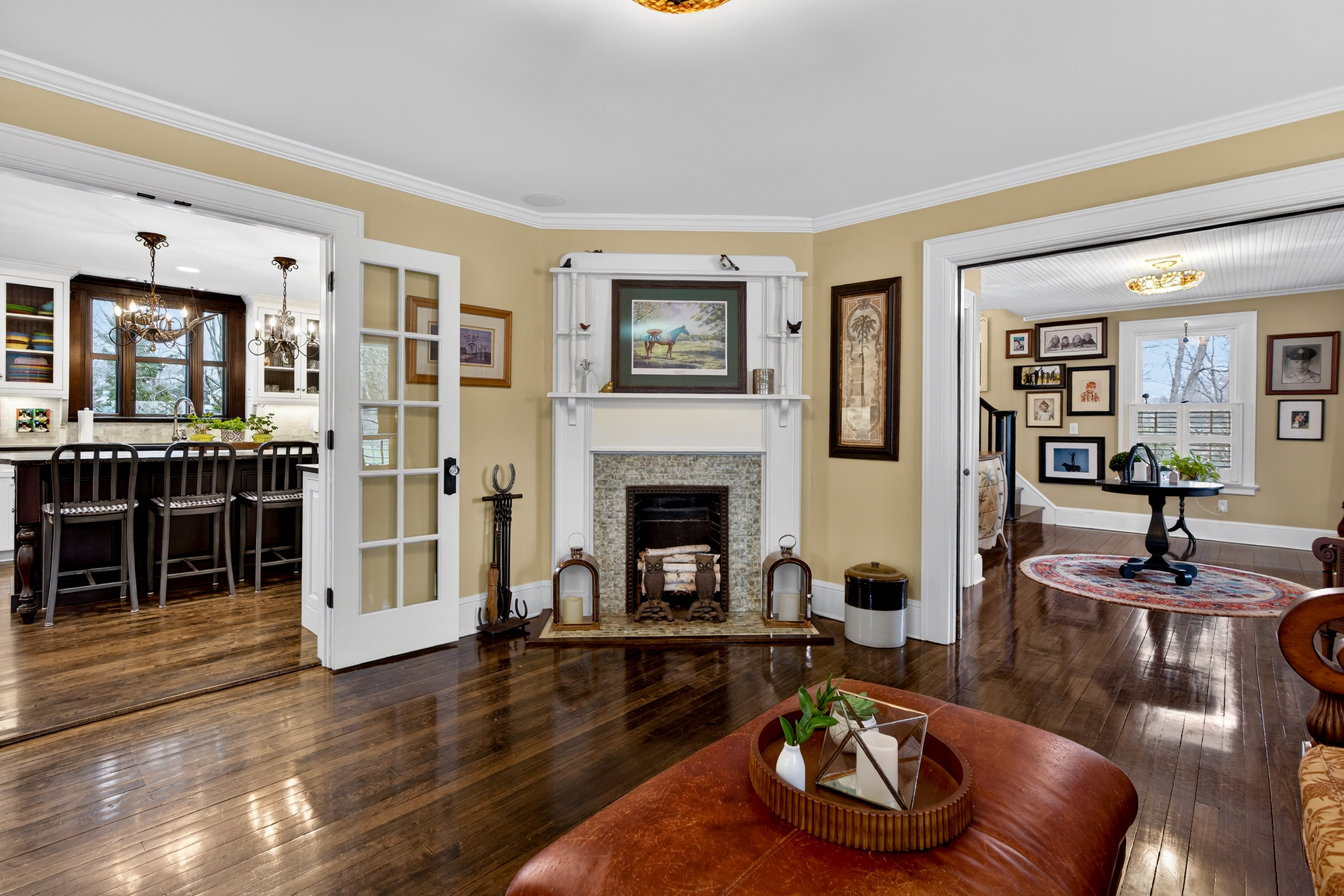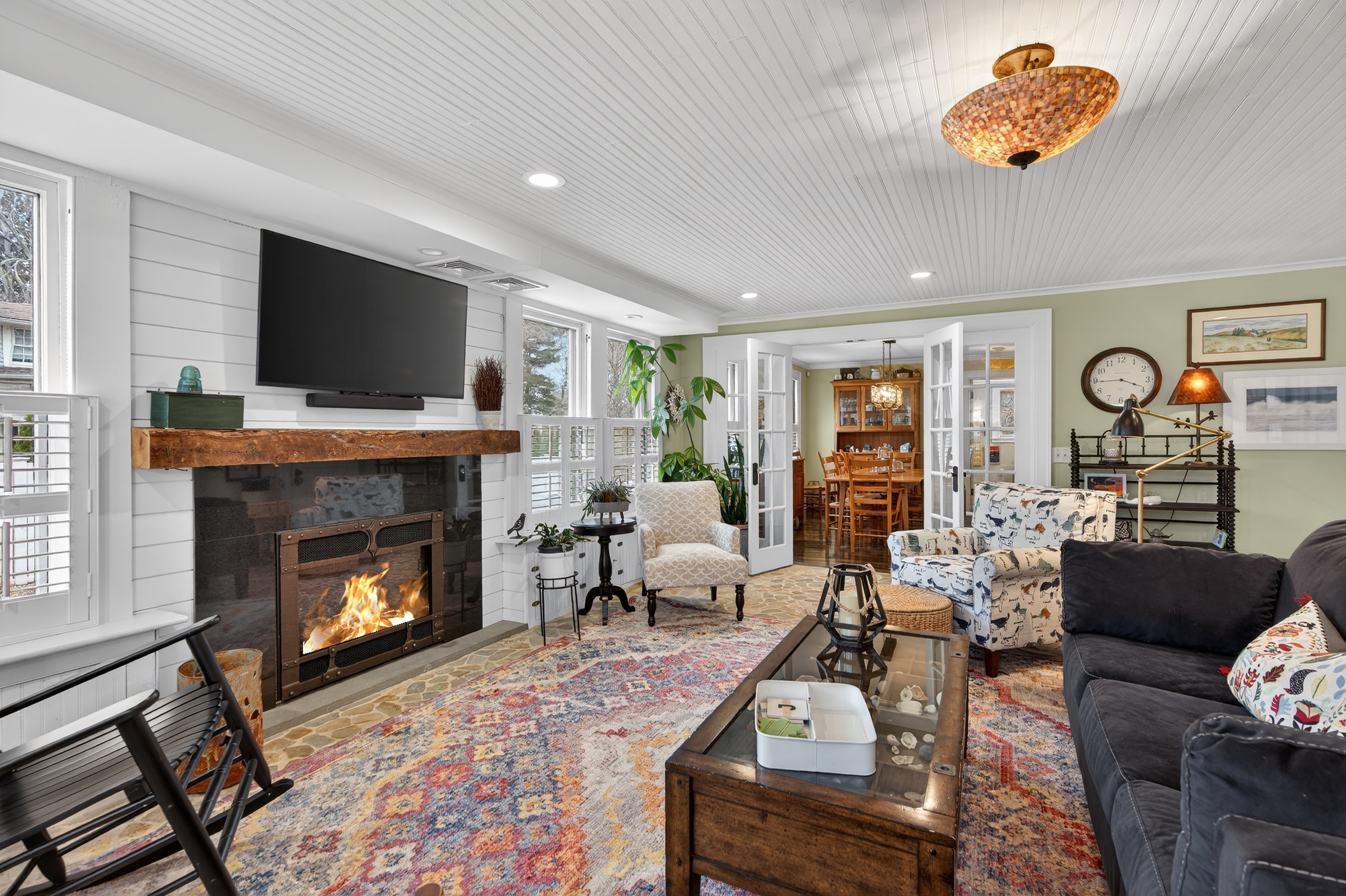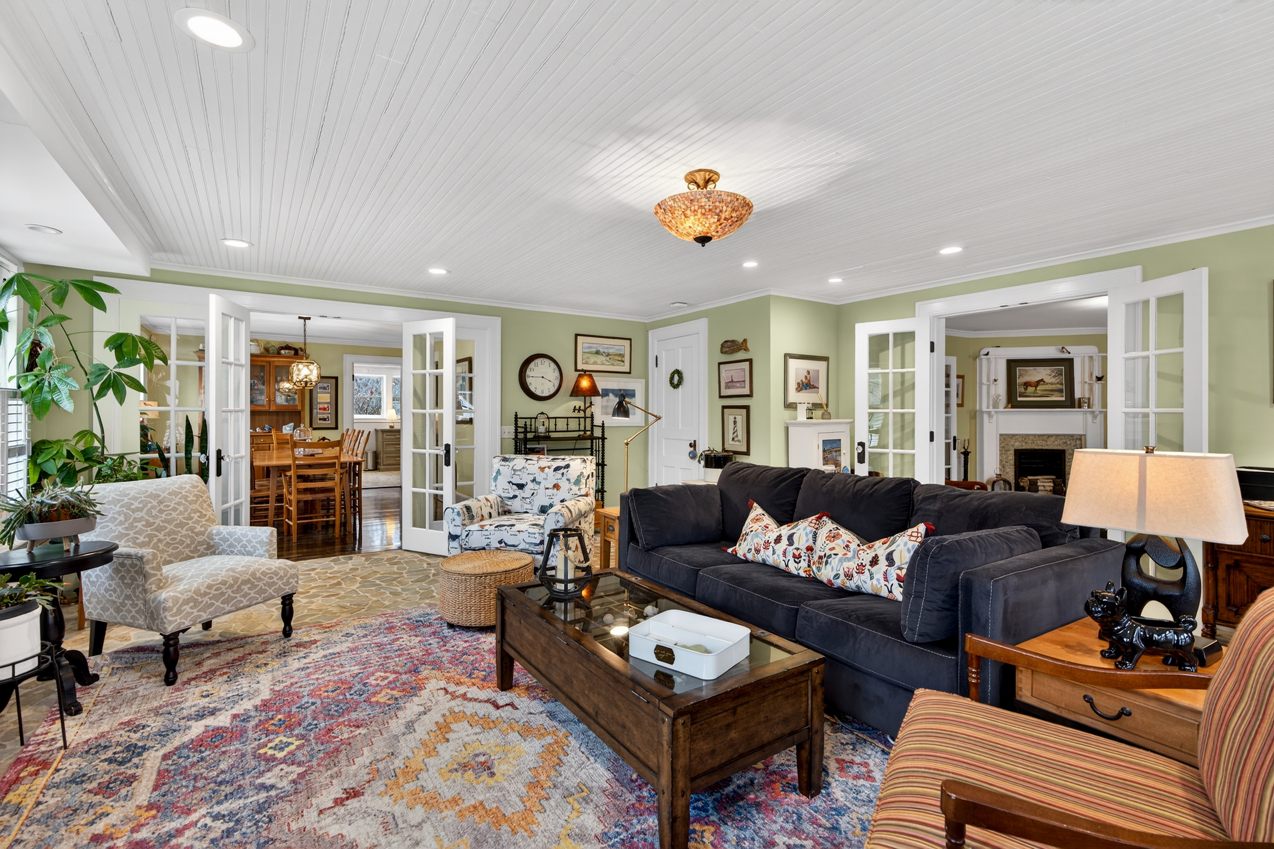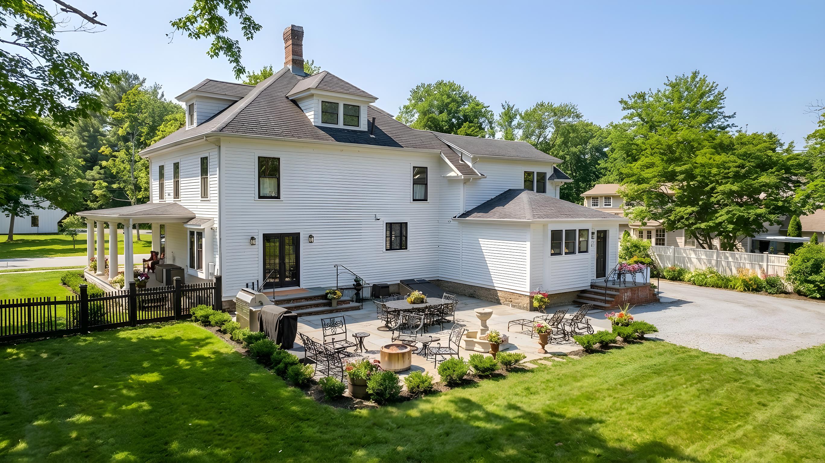 Nestled in the heart of Essex Village along one of its most picturesque streets, this iconic c.1818 home welcomes you with a charming wraparound covered front porch, an inviting place to sit and relax. Inside, you'll find a perfect blend of timeless character and thoughtful modern updates, creating a home is both beautiful and comfortable. At its heart is a custom chef's kitchen featuring solid wood cabinetry, granite countertops, a Wolf 6-burner range, dual sinks, and complete with a well appointed butler's pantry. The kitchen flows seamlessly into a dining and seating area that opens to the patio & backyard. A sun filled, cozy family room with a stone floor and fireplace provides the perfect setting for quiet evenings or casual gatherings. Formal living and dining rooms, along with, half bath, and mudroom, complete this level. Upstairs, the spacious primary suite serves as a true retreat, offering dual walk-in closets, a fireplace, and a spa like bathroom. Three additional bedrooms and two full baths provide plenty of space for family and guests, while a walk-up attic adds convenient storage. French doors open to a beautiful bluestone patio overlooking the spacious fenced backyard-ideal for outdoor entertaining or simply enjoying peaceful moments at home. A handsome two-car carriage house includes a heated garage and a finished (permitted/legal) upper level apartment with a full bath, perfect for a guest suite, studio, or private office.