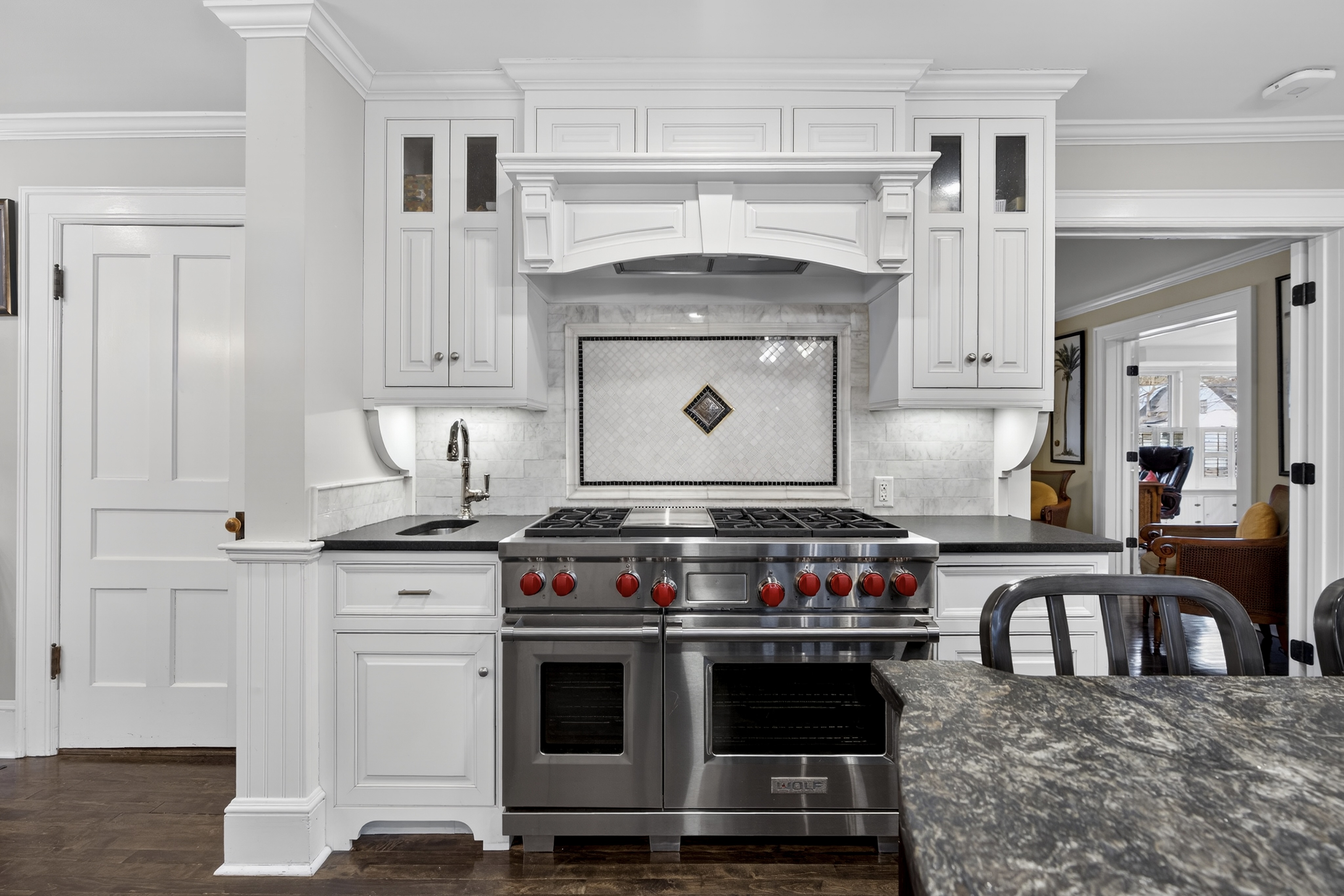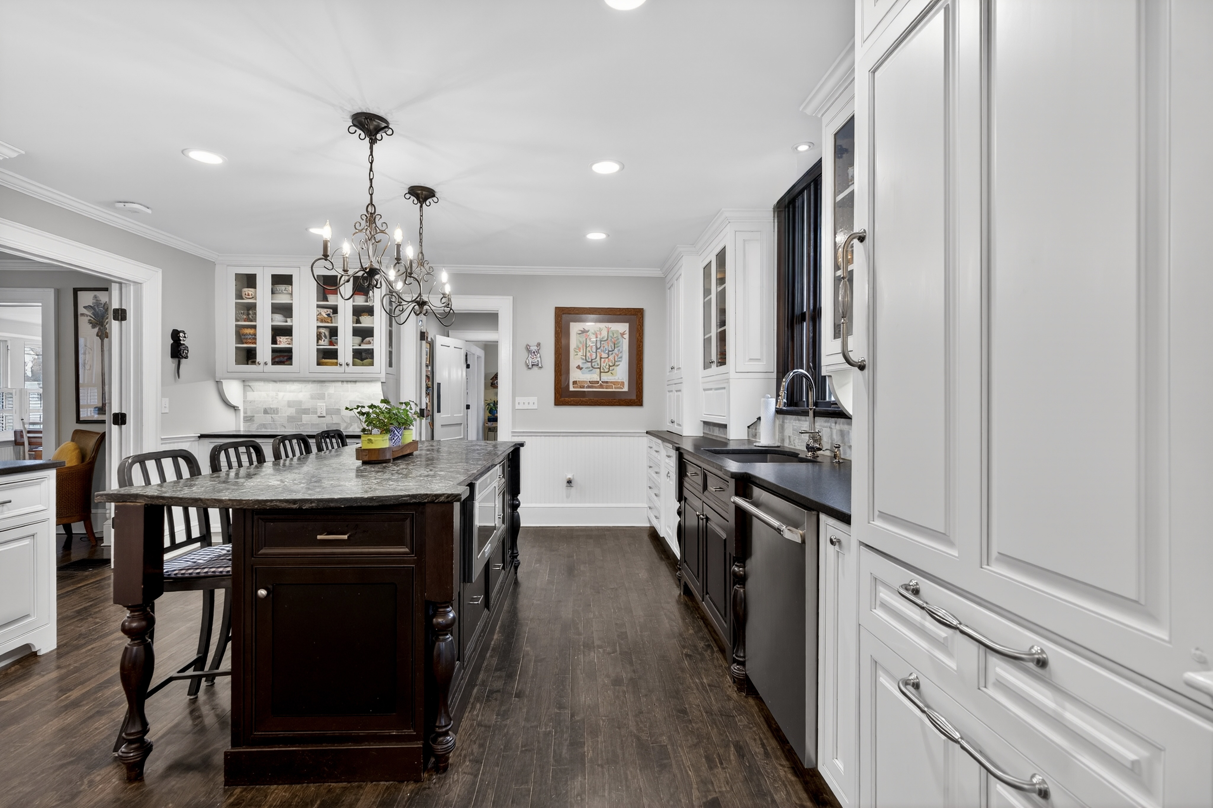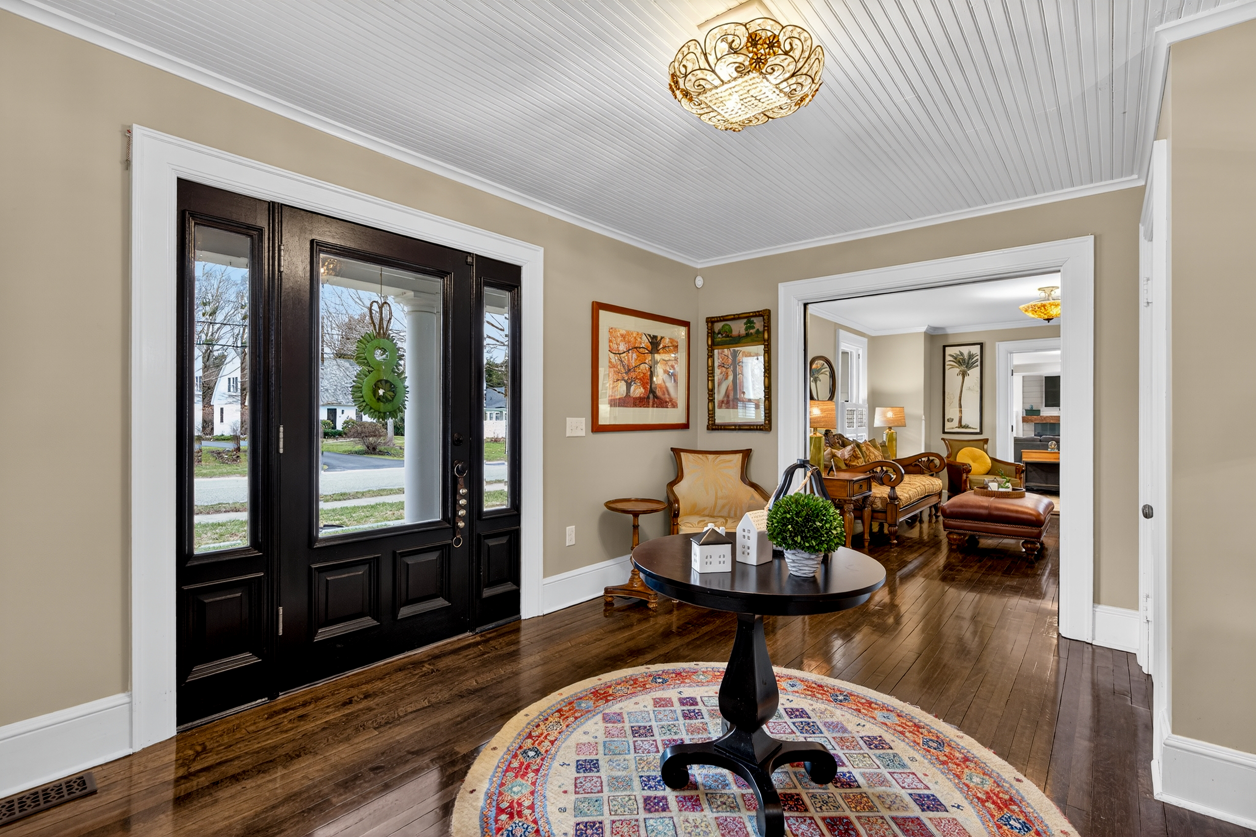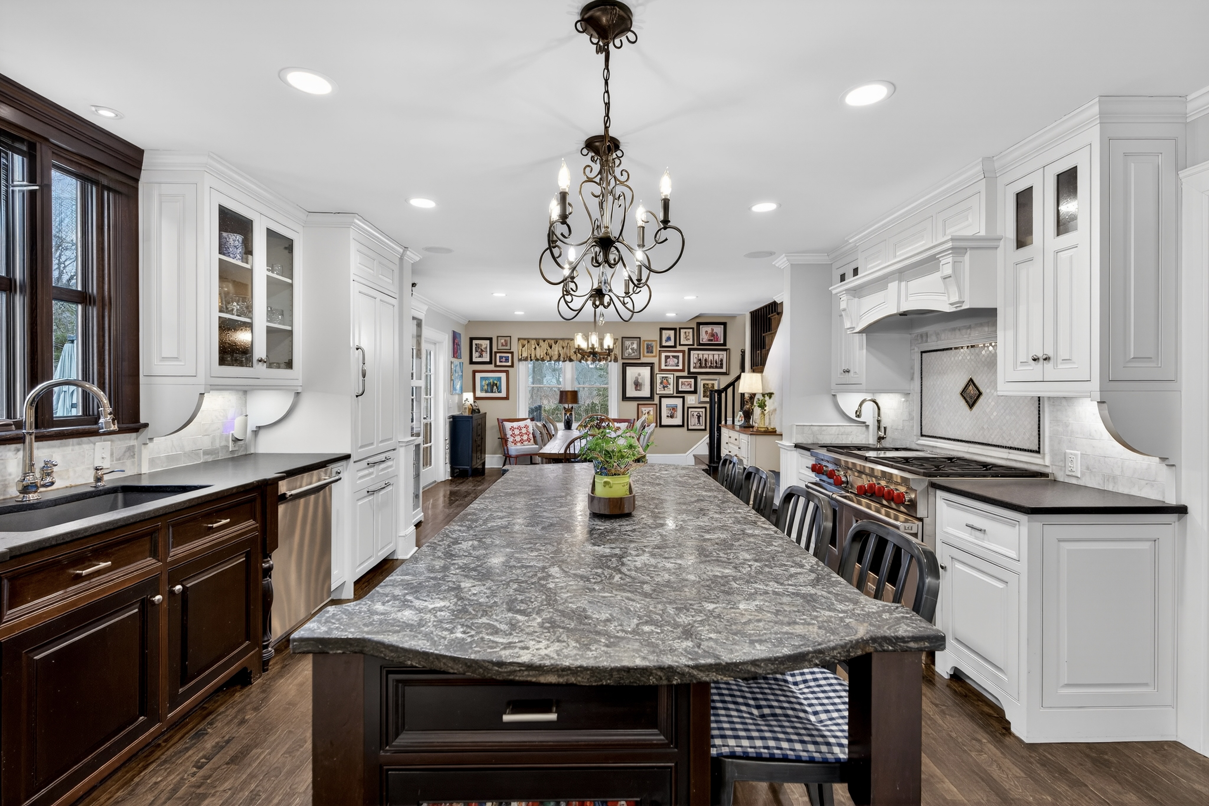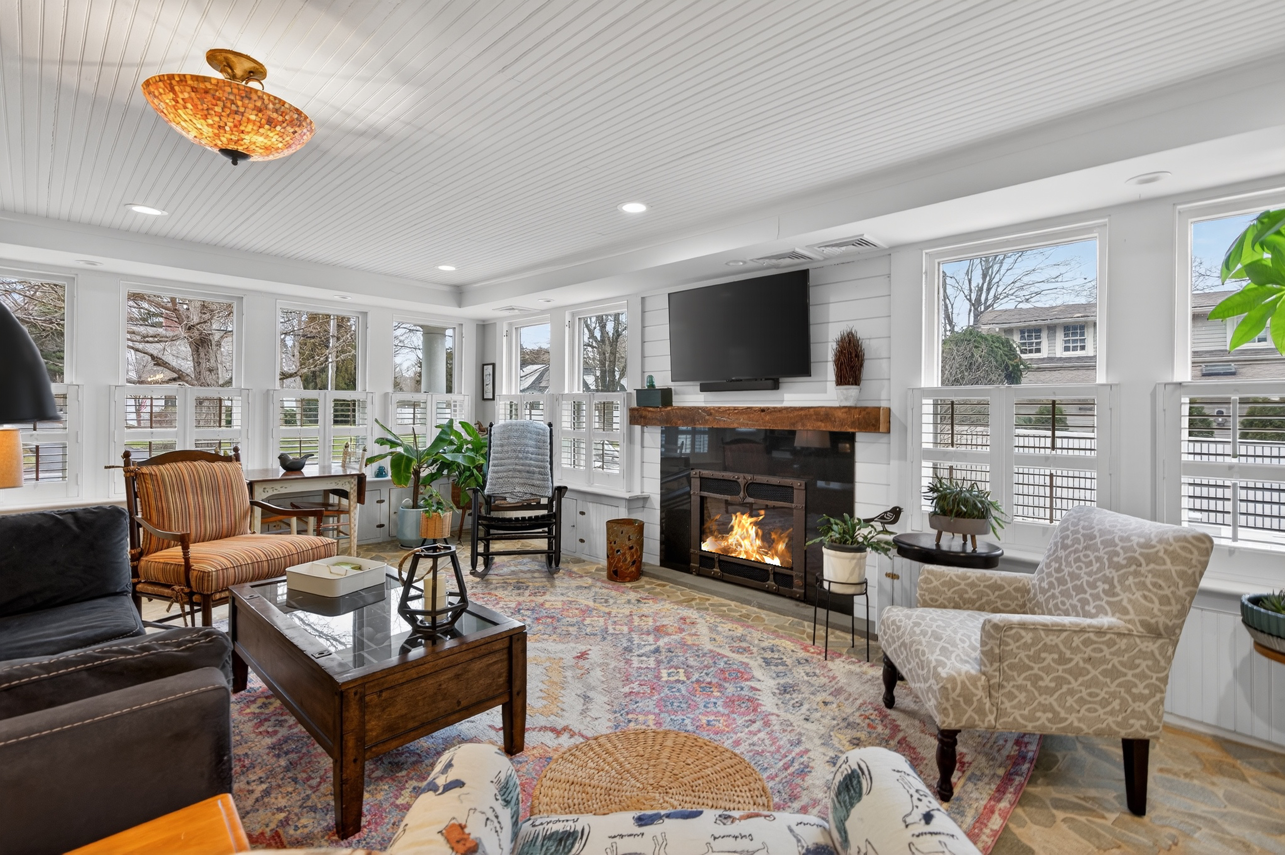 Nestled in the heart of Essex Village along one of its most picturesque streets, this iconic c.1818 home welcomes you with a charming wraparound covered front porch, an inviting place to sit and relax. Inside, you'll find a perfect blend of timeless character and thoughtful modern updates, creating a home is both beautiful and comfortable. At its heart is a custom chef's kitchen featuring solid wood cabinetry, granite countertops, a Wolf 6-burner range, dual sinks, and complete with a well appointed butler's pantry. The kitchen flows seamlessly into a dining and seating area that opens to the patio & backyard. A sun filled, cozy family room with a stone floor and fireplace provides the perfect setting for quiet evenings or casual gatherings. Formal living and dining rooms, along with, half bath, and mudroom, complete this level. Upstairs, the spacious primary suite serves as a true retreat, offering dual walk-in closets, a fireplace, and a spa like bathroom. Three additional bedrooms and two full baths provide plenty of space for family and guests, while a walk-up attic adds convenient storage. French doors open to a beautiful bluestone patio overlooking the spacious fenced backyard-ideal for outdoor entertaining or simply enjoying peaceful moments at home. A handsome two-car carriage house includes a heated garage and a finished (permitted/legal) upper level apartment with a full bath, perfect for a guest suite, studio, or private office.