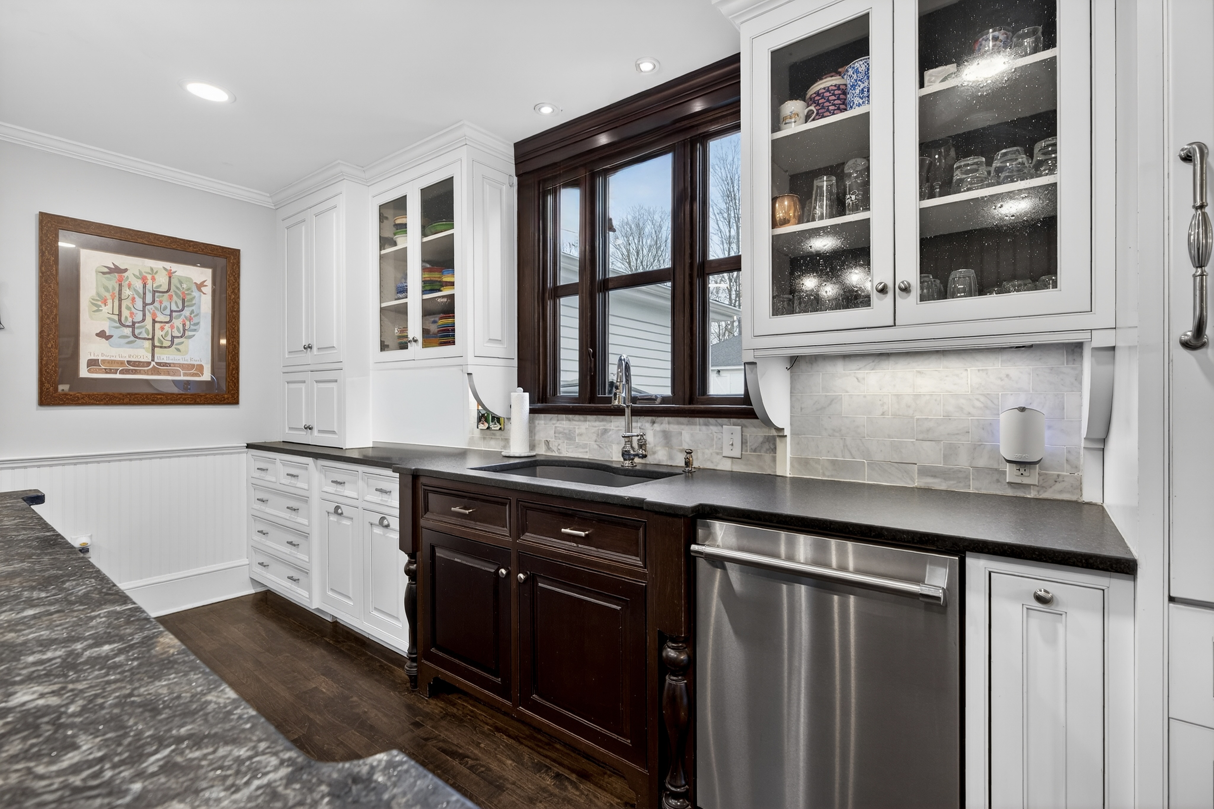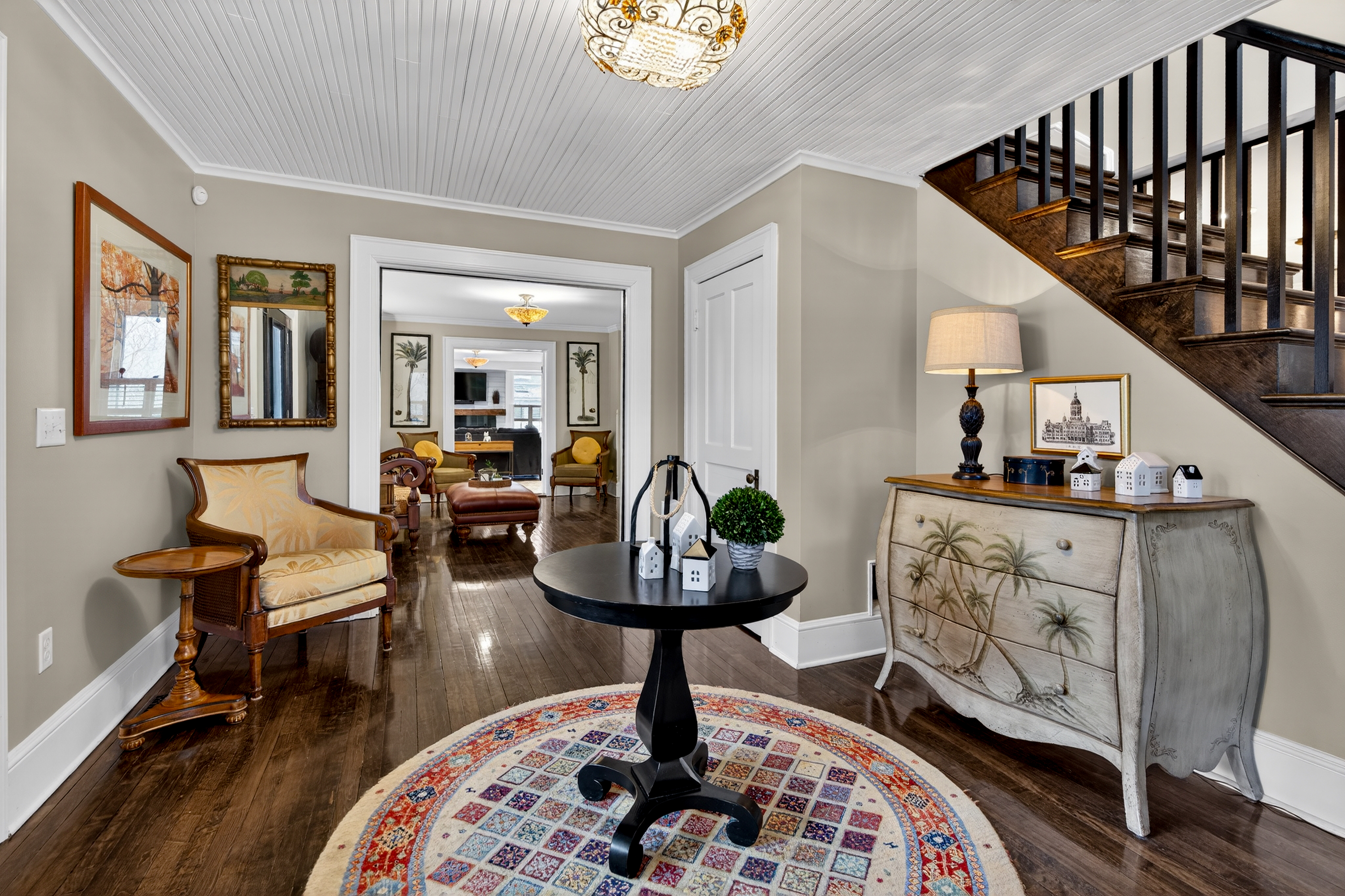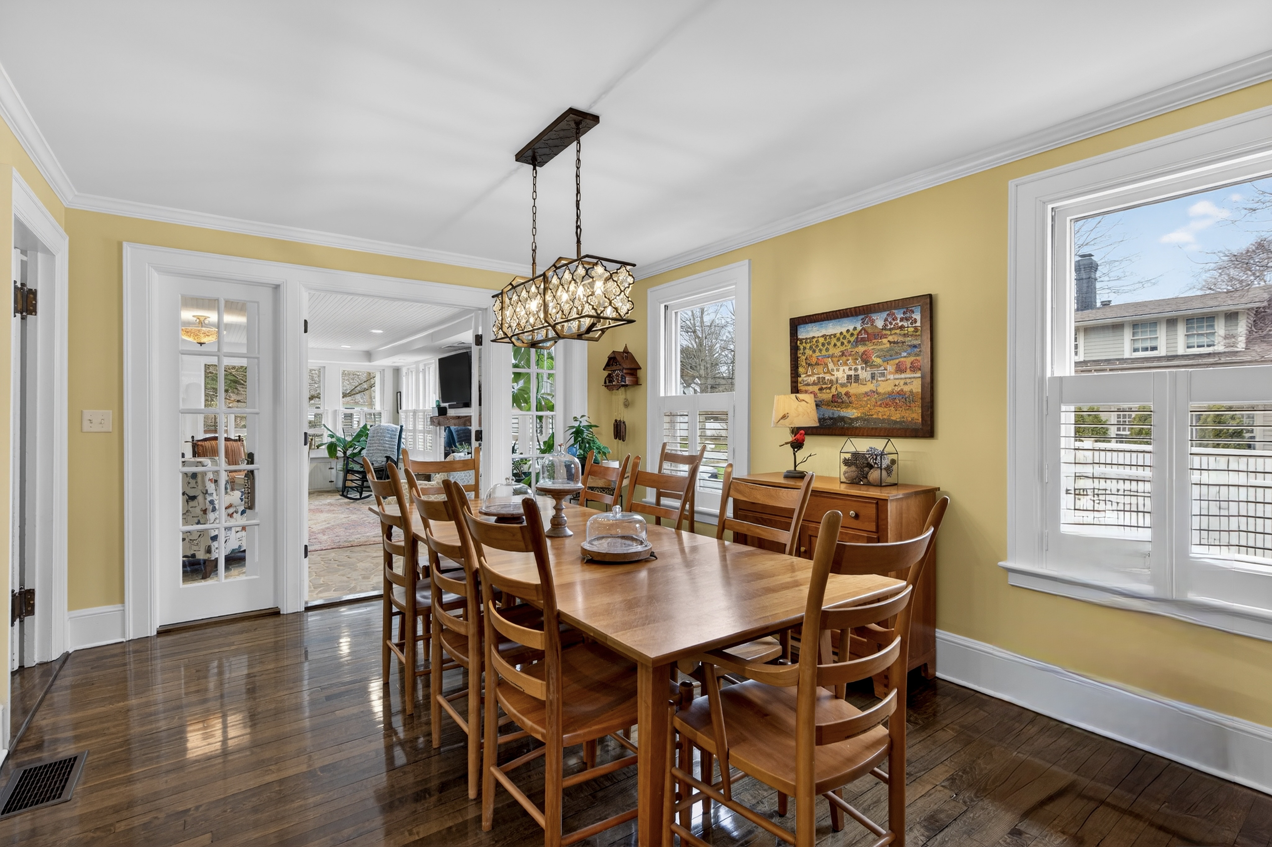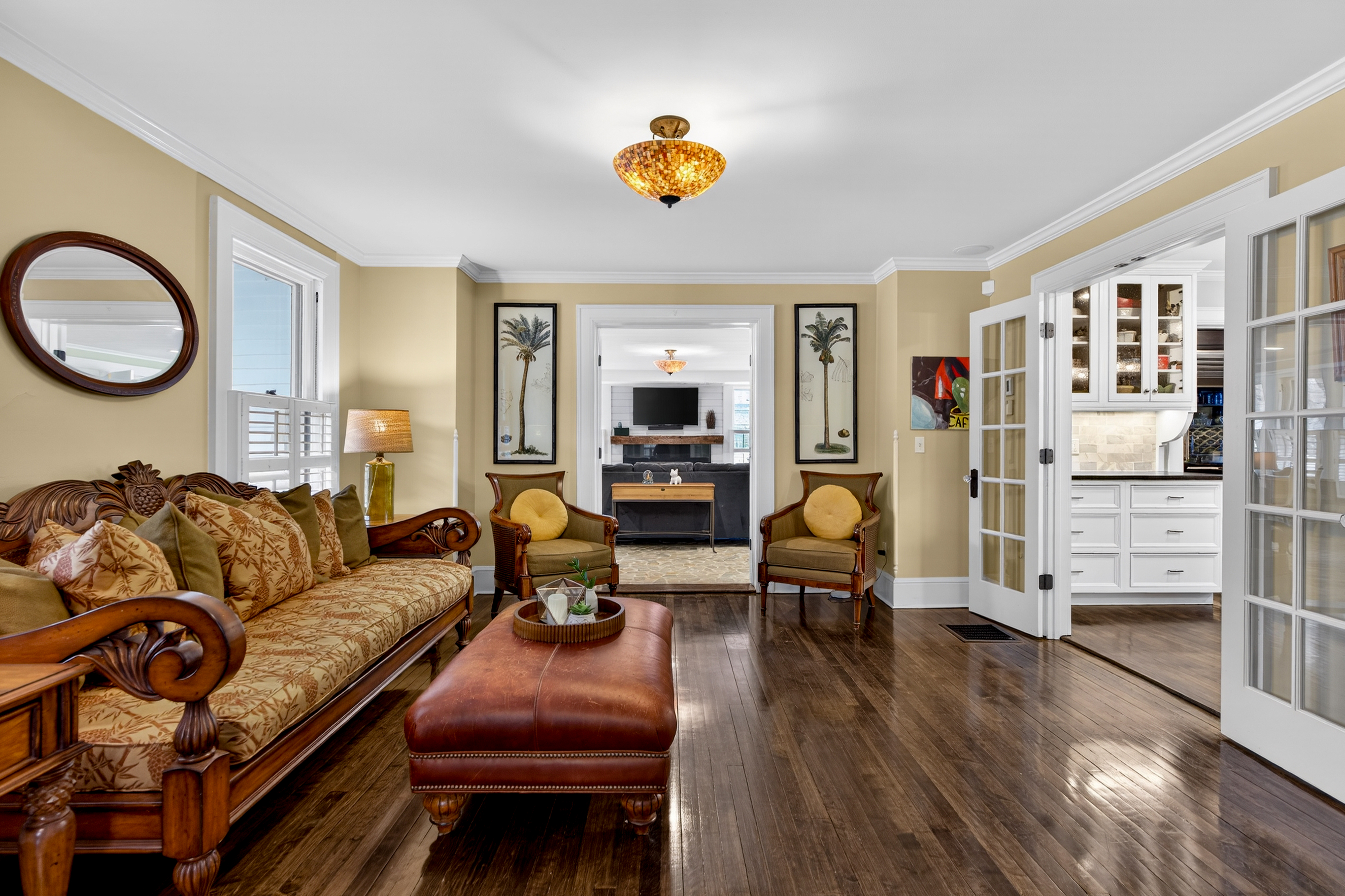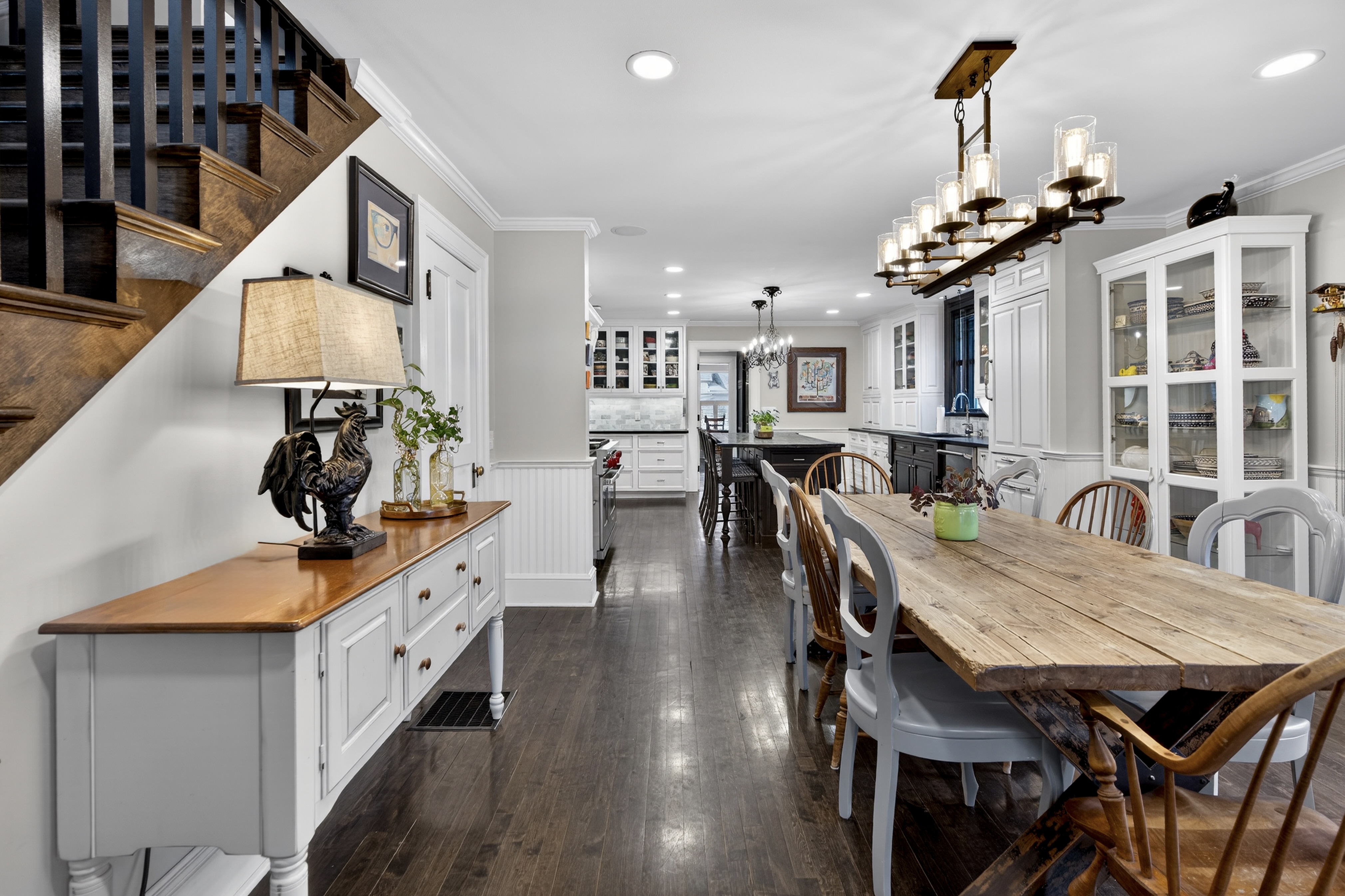 Nestled in the heart of Essex Village along one of its most picturesque streets, this iconic c.1818 home welcomes you with a charming wraparound covered front porch, an inviting place to sit and relax. Inside, you'll find a perfect blend of timeless character and thoughtful modern updates, creating a home is both beautiful and comfortable. At its heart is a custom chef's kitchen featuring solid wood cabinetry, granite countertops, a Wolf 6-burner range, dual sinks, and complete with a well appointed butler's pantry. The kitchen flows seamlessly into a dining and seating area that opens to the patio & backyard. A sun filled, cozy family room with a stone floor and fireplace provides the perfect setting for quiet evenings or casual gatherings. Formal living and dining rooms, along with, half bath, and mudroom, complete this level. Upstairs, the spacious primary suite serves as a true retreat, offering dual walk-in closets, a fireplace, and a spa like bathroom. Three additional bedrooms and two full baths provide plenty of space for family and guests, while a walk-up attic adds convenient storage. French doors open to a beautiful bluestone patio overlooking the spacious fenced backyard-ideal for outdoor entertaining or simply enjoying peaceful moments at home. A handsome two-car carriage house includes a heated garage and a finished (permitted/legal) upper level apartment with a full bath, perfect for a guest suite, studio, or private office.