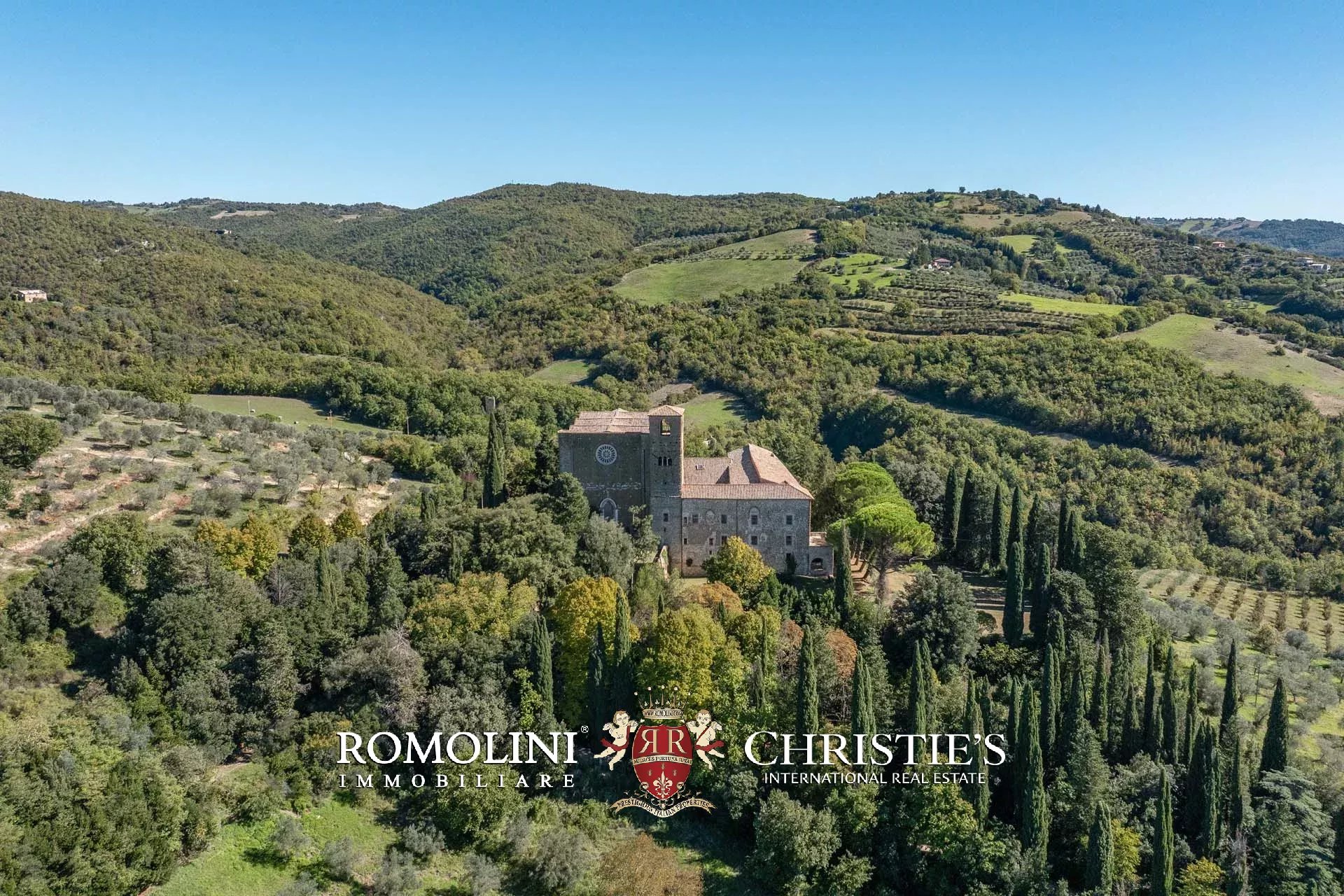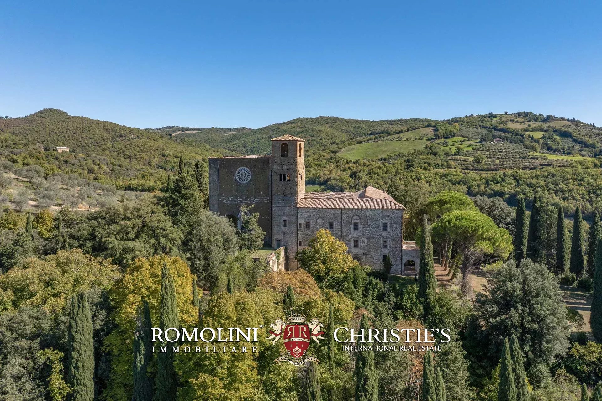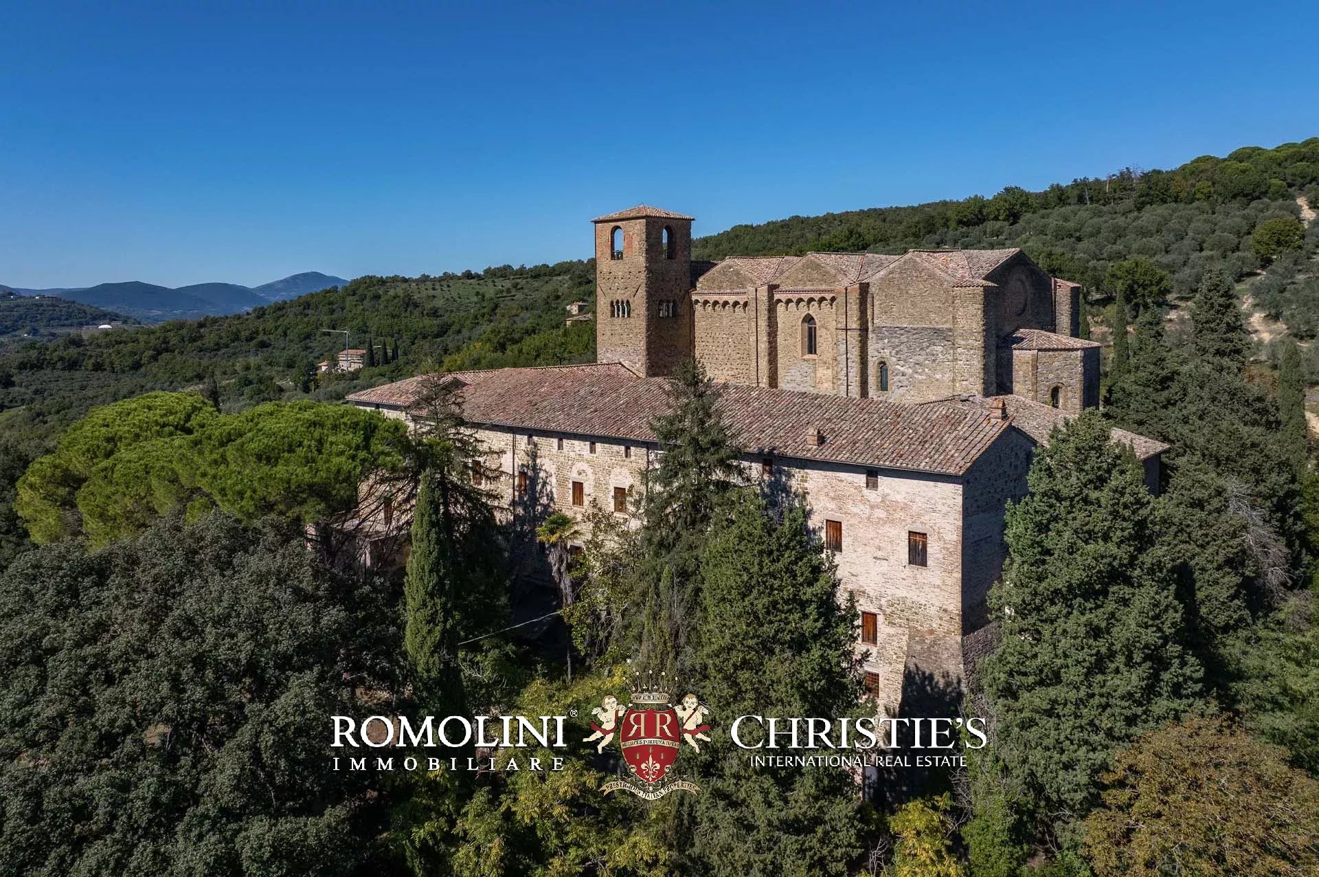 In the hills of Umbria, not far from Perugia and in an area of rare beauty, impressive estate with medieval abbey for sale. The numerous buildings on the estate largely need restoration work, but the property boasts incredible development potential with the possibility of creating a high-level accommodation business (over 150 potential bedrooms) combined with the agricultural activity already in place.