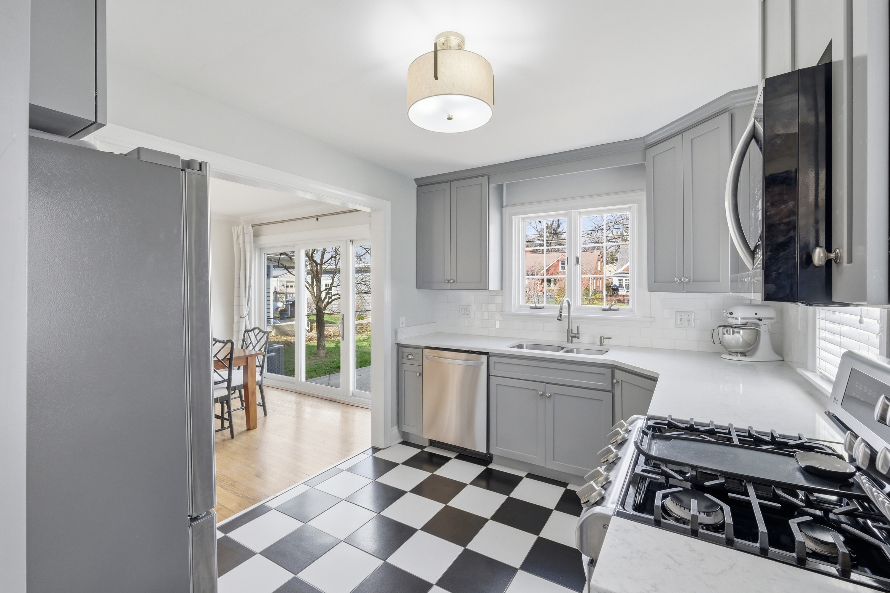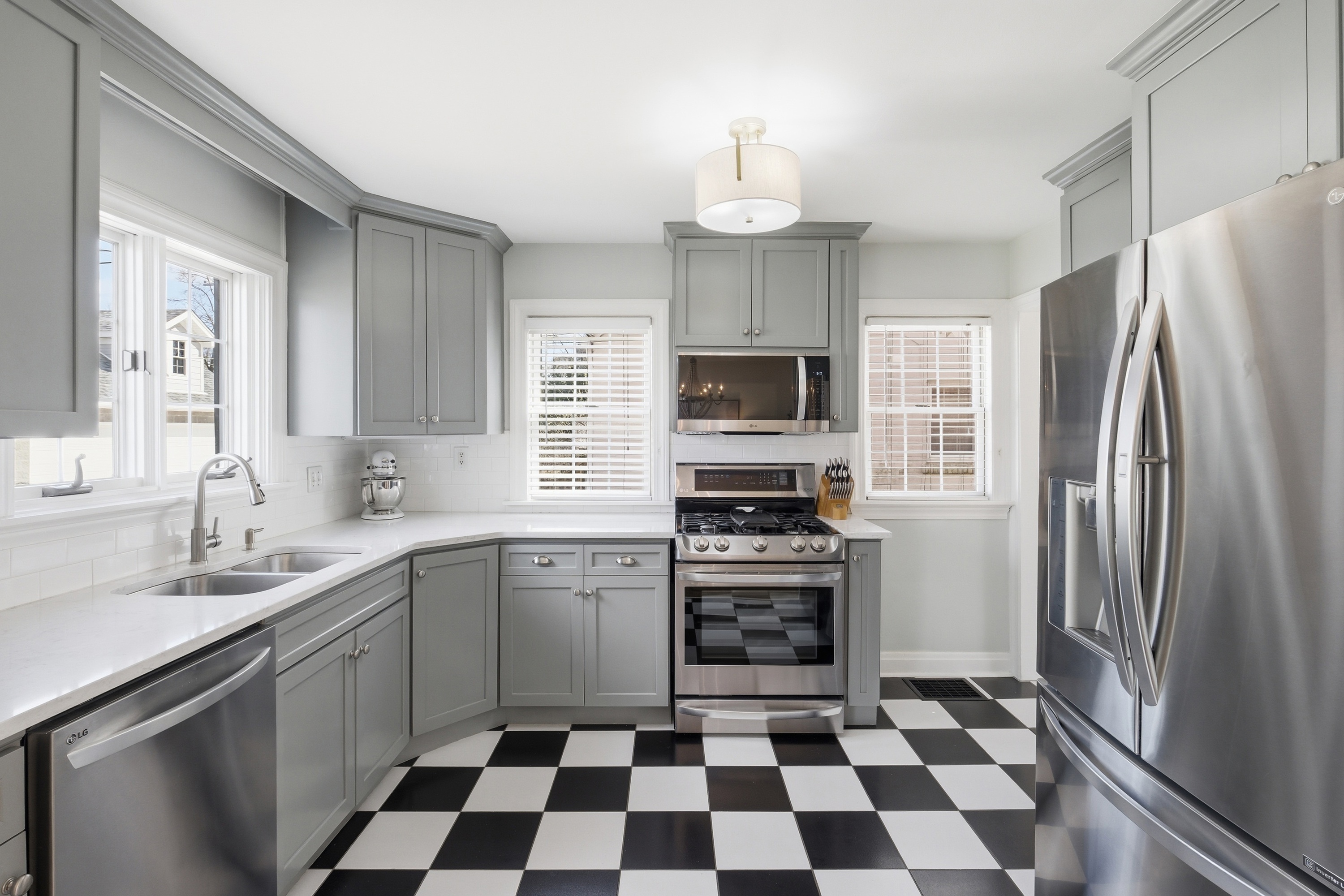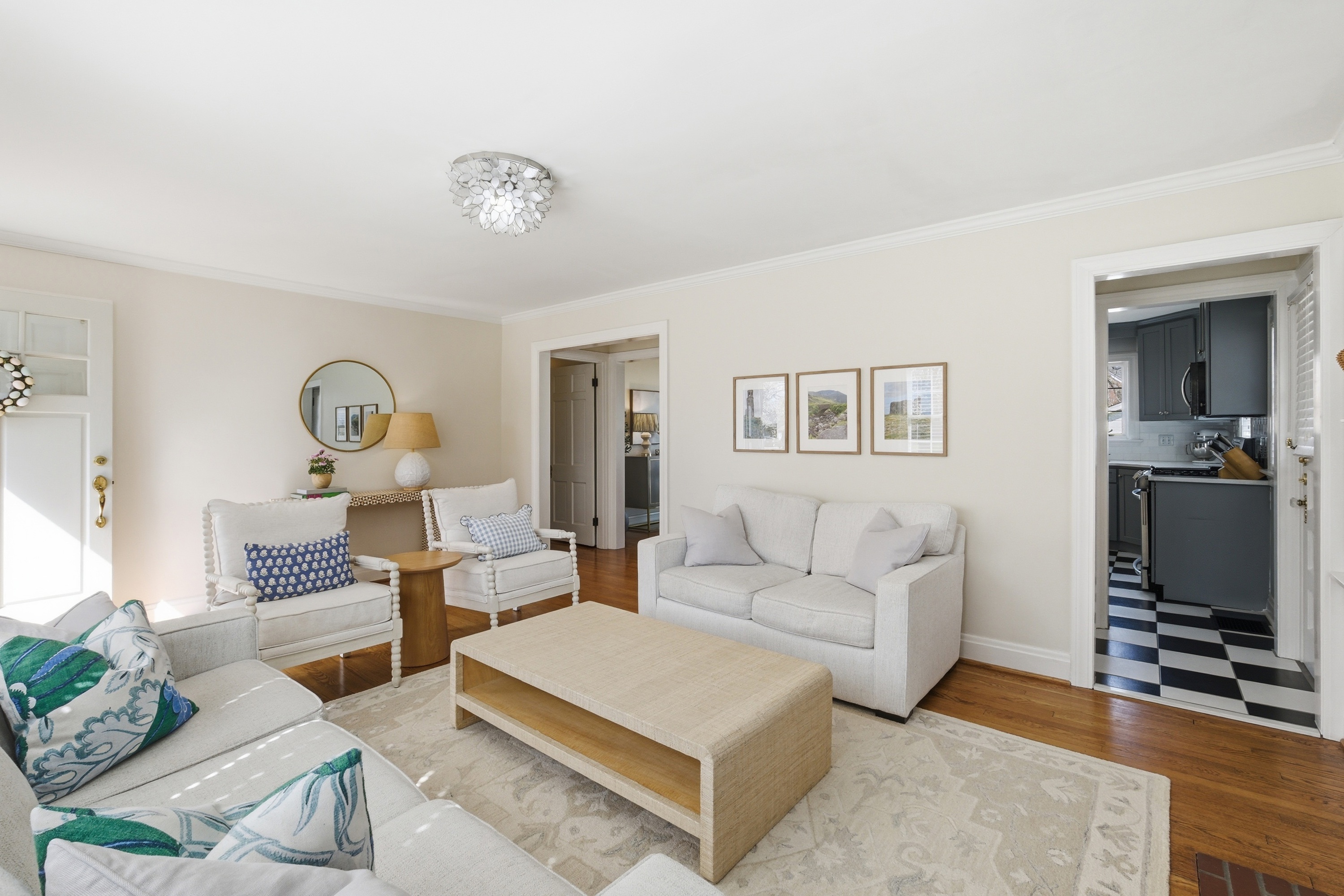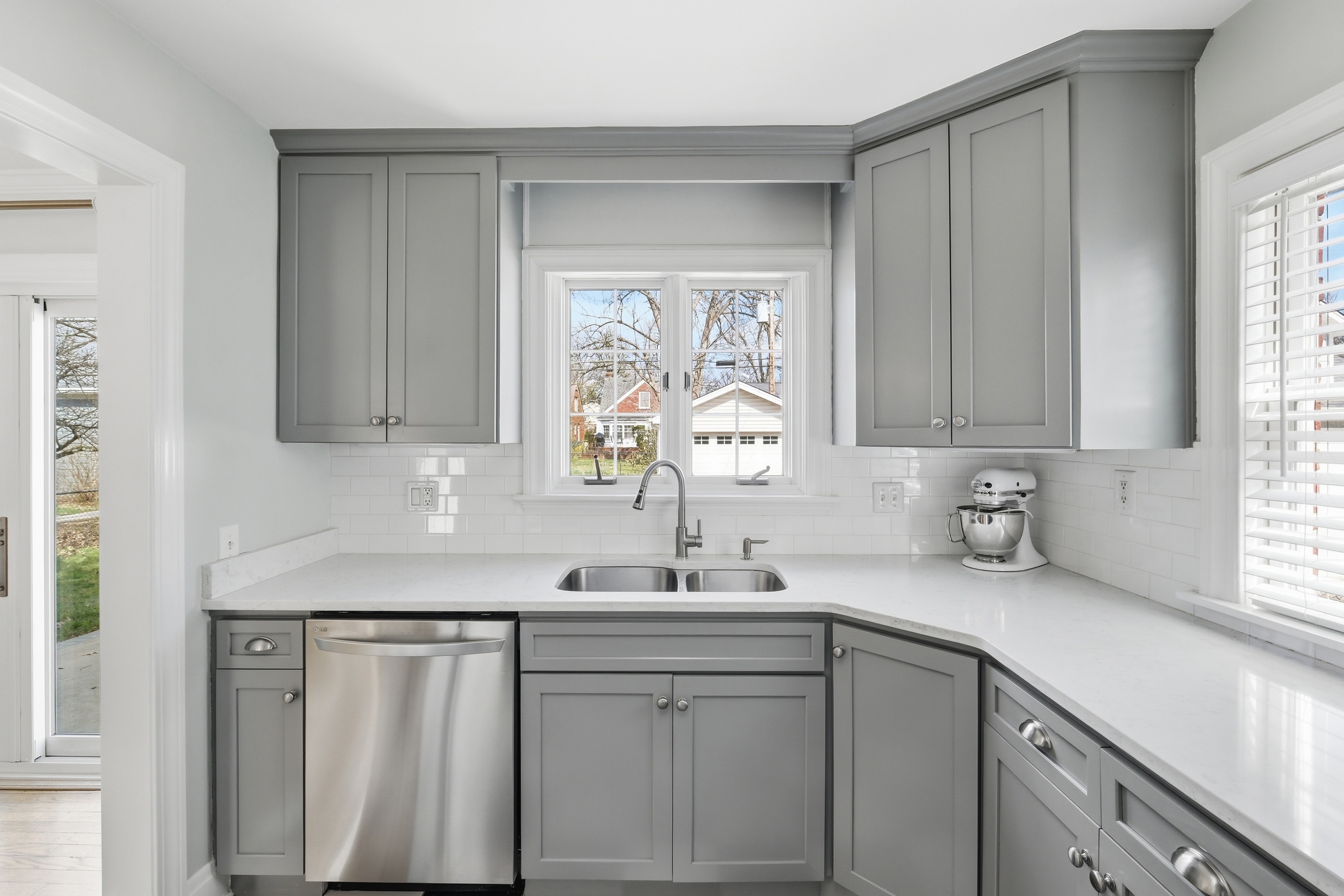 Move right in to this beautifully updated St. Matthews home, perfectly situated on a level, tree-lined lot just steps from restaurants, boutique shops, and parks. Inside, light-filled rooms and gleaming hardwood floors create a warm, inviting atmosphere. The living room with fireplace flows seamlessly into the dining room and a thoughtfully updated kitchen featuring custom cabinetry, black-and-white checkered floors, and quartz countertops. Two first-floor bedrooms and a renovated full bath complete the main level. Upstairs, the primary suite impresses with 9-foot ceilings, a large walk-in closet, and remodeled bathroom with dual sinks and a spacious shower - a rare find in St. Matthews. The finished basement adds approximately 550 sq. ft. of versatile living space, including a great room with built-in entertainment center, laundry, and ample storage. Outside, the patio overlooks a generous fenced backyard, ideal for relaxing or entertaining. A move-in-ready home in a sought-after location - one not to miss!