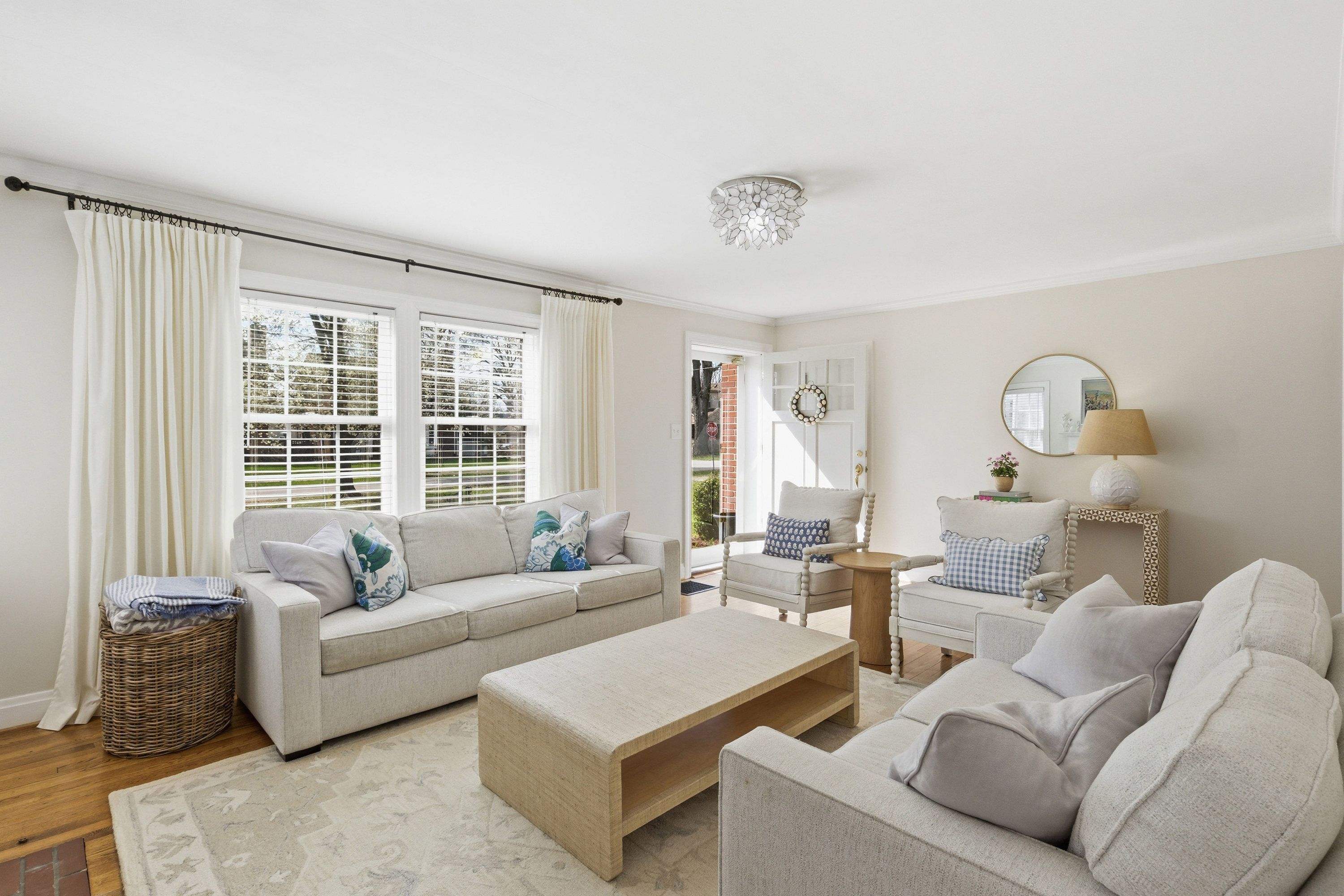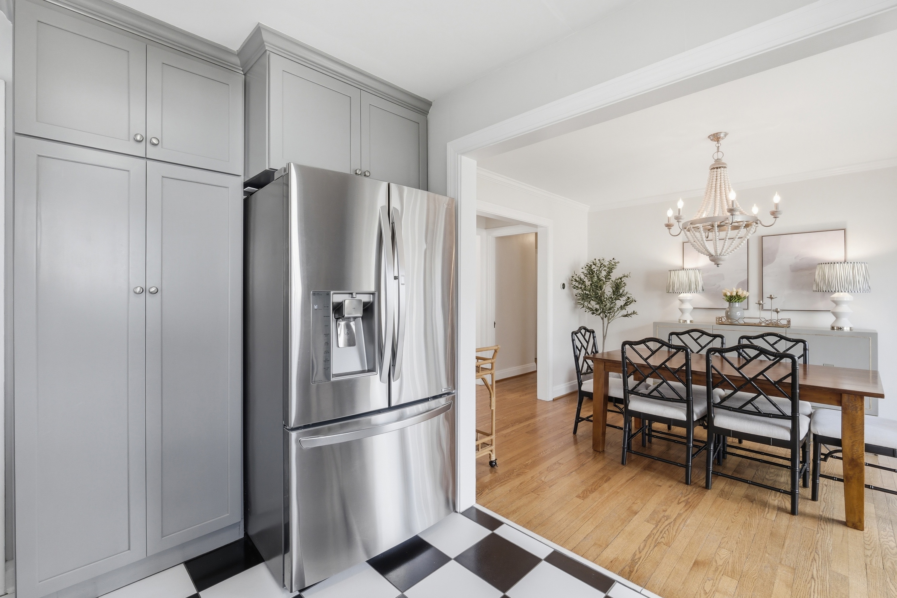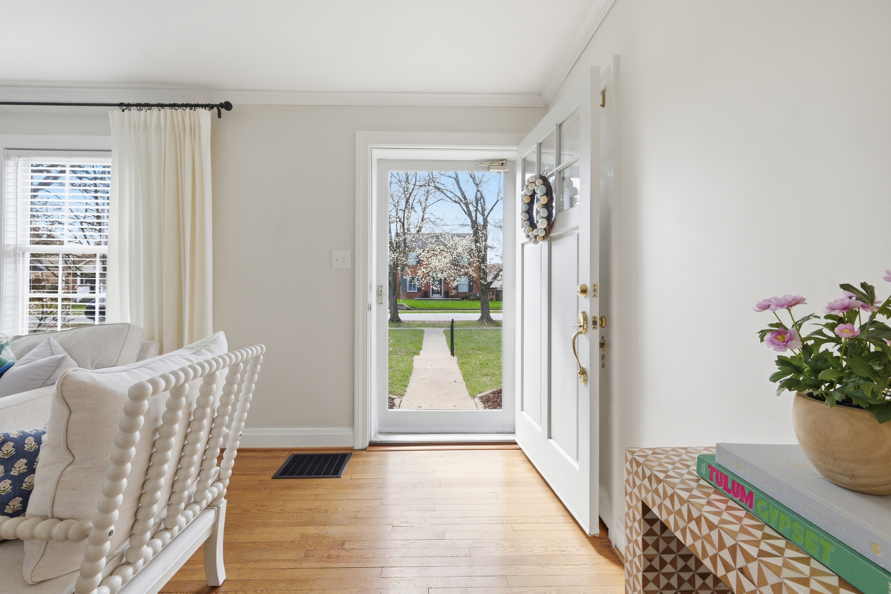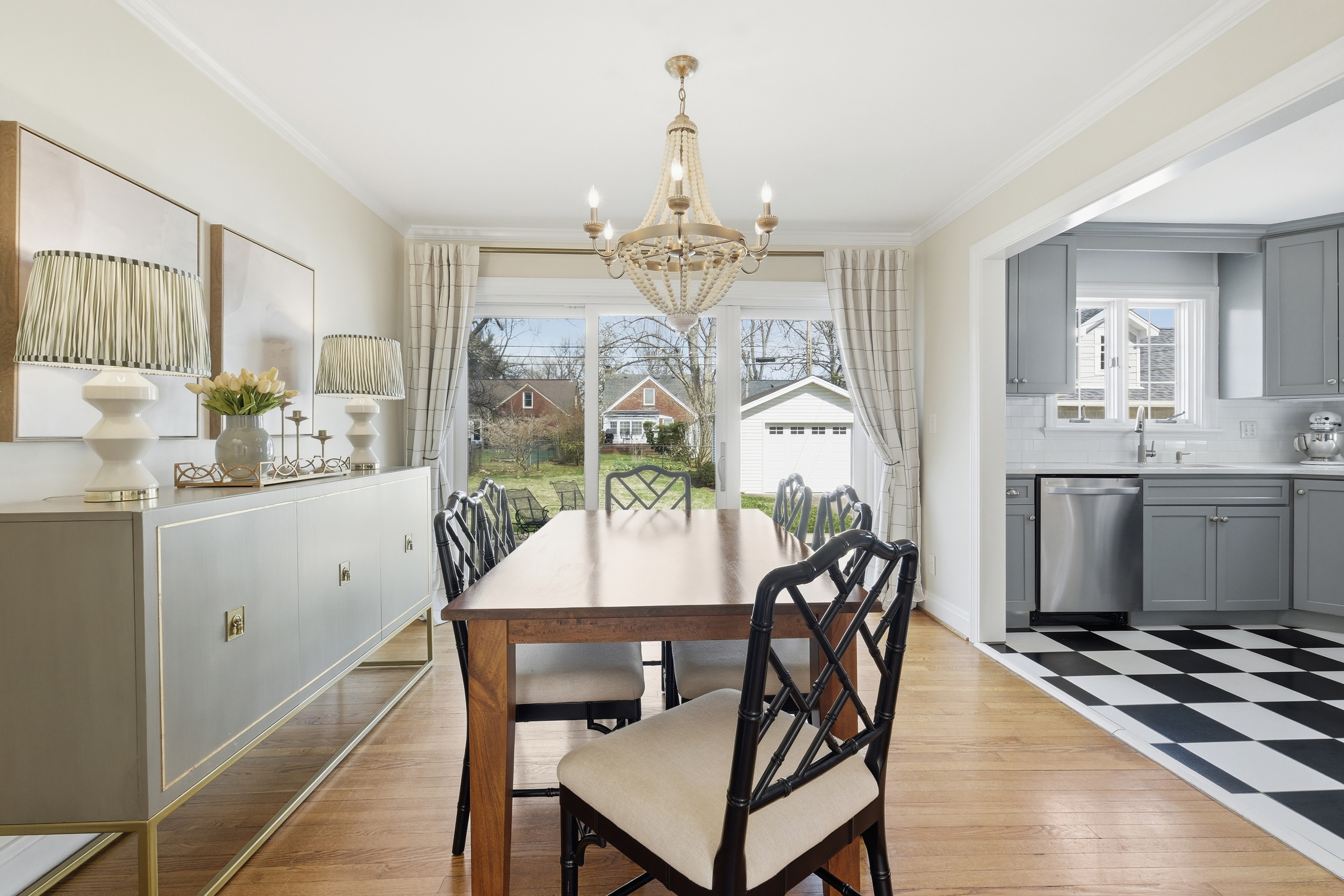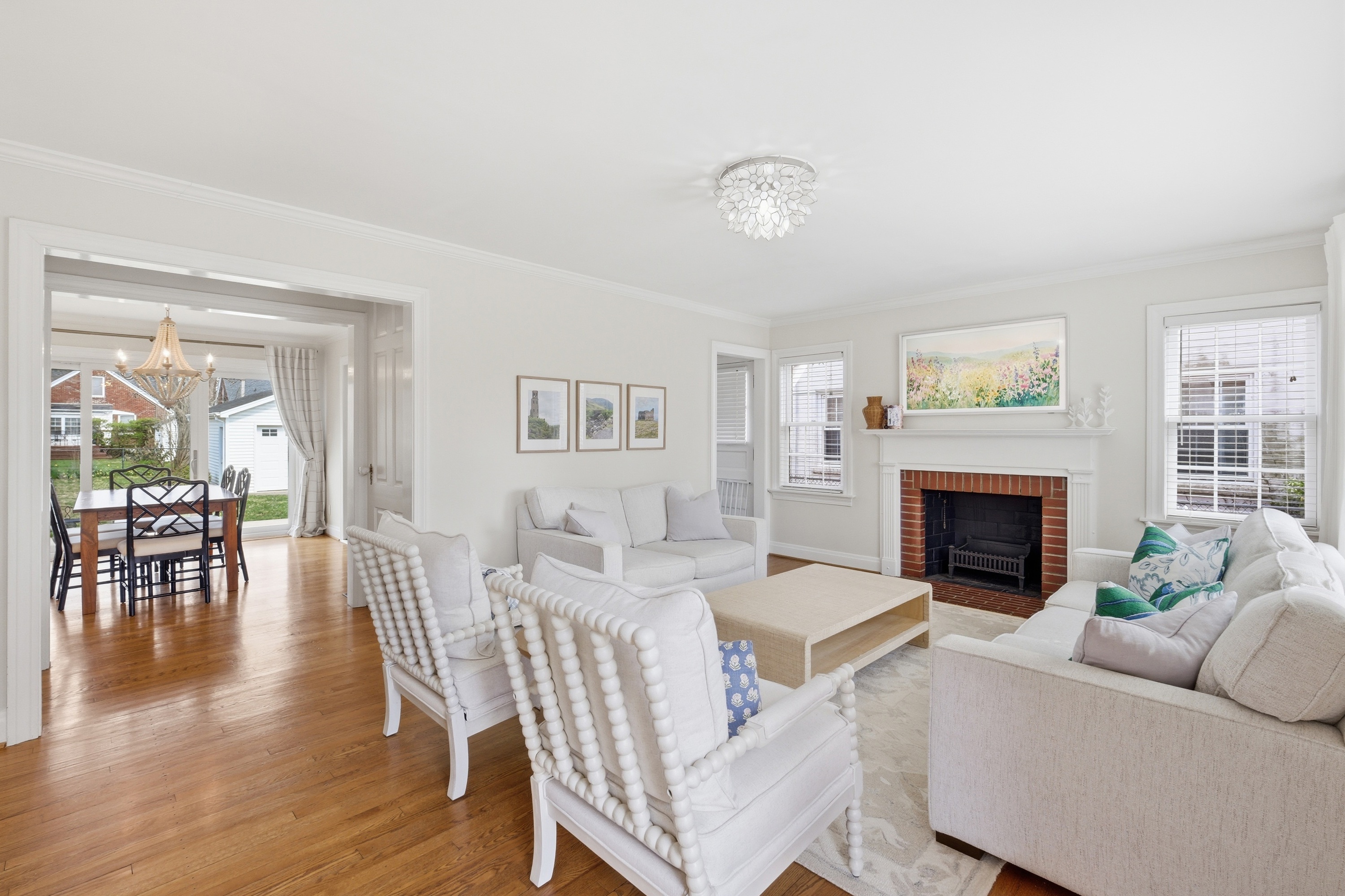 Move right in to this beautifully updated St. Matthews home, perfectly situated on a level, tree-lined lot just steps from restaurants, boutique shops, and parks. Inside, light-filled rooms and gleaming hardwood floors create a warm, inviting atmosphere. The living room with fireplace flows seamlessly into the dining room and a thoughtfully updated kitchen featuring custom cabinetry, black-and-white checkered floors, and quartz countertops. Two first-floor bedrooms and a renovated full bath complete the main level. Upstairs, the primary suite impresses with 9-foot ceilings, a large walk-in closet, and remodeled bathroom with dual sinks and a spacious shower - a rare find in St. Matthews. The finished basement adds approximately 550 sq. ft. of versatile living space, including a great room with built-in entertainment center, laundry, and ample storage. Outside, the patio overlooks a generous fenced backyard, ideal for relaxing or entertaining. A move-in-ready home in a sought-after location - one not to miss!