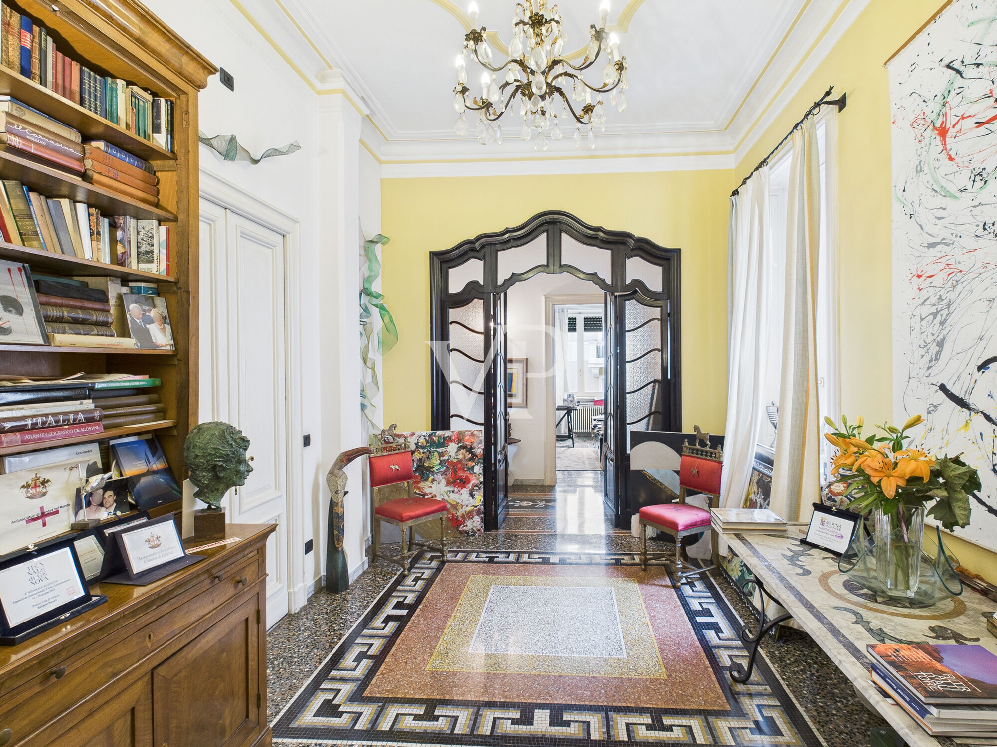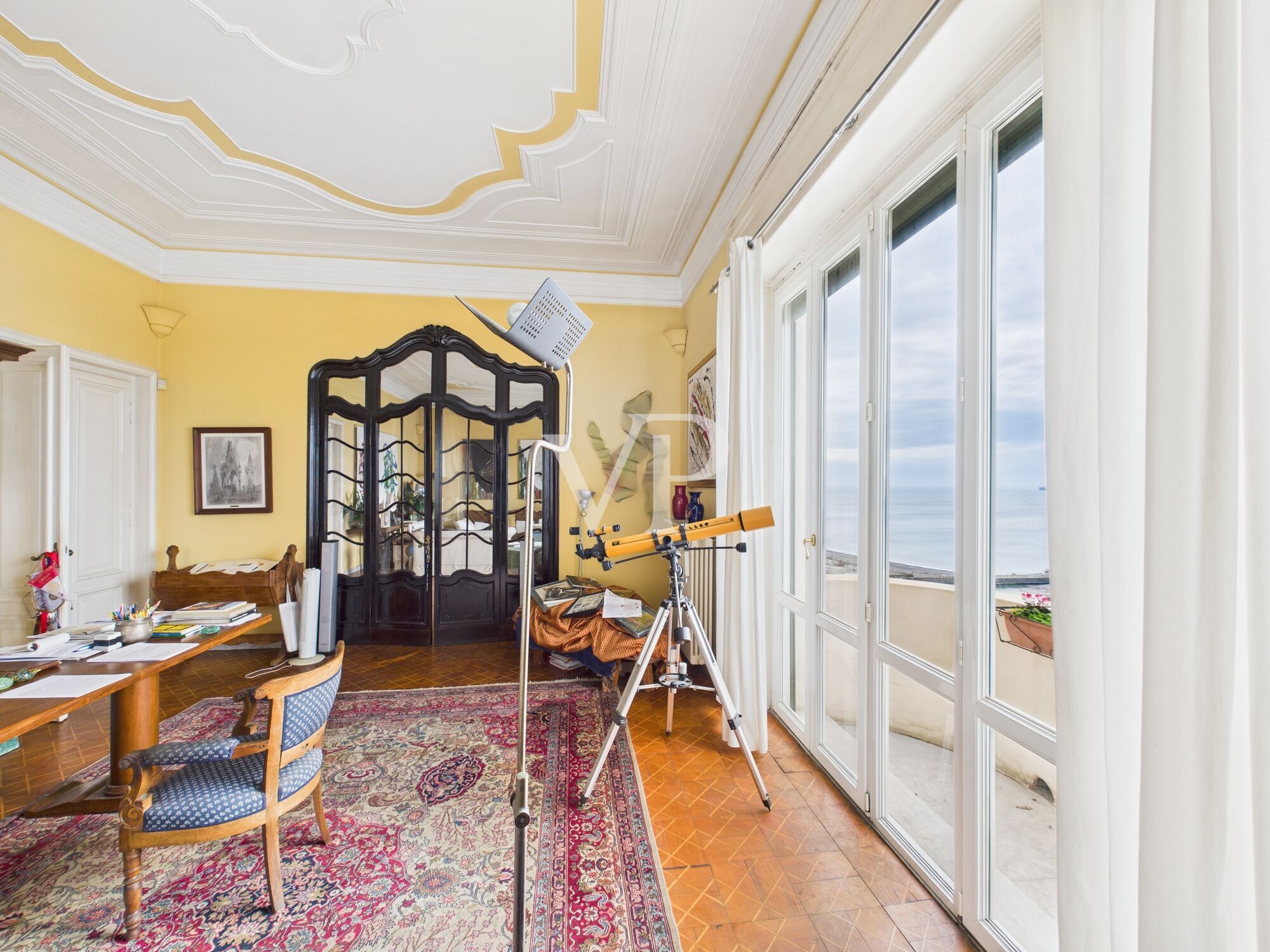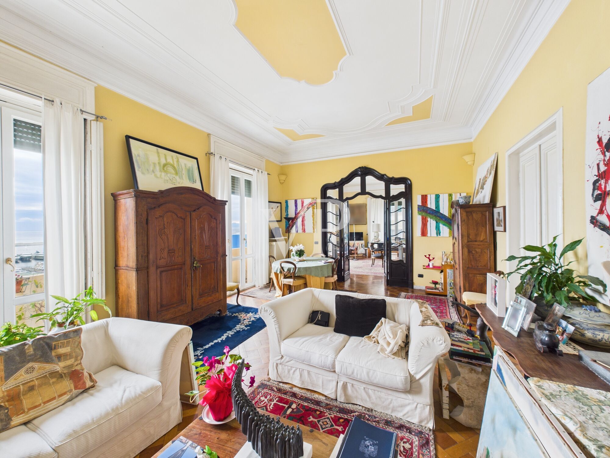 In the heart of the elegant Carignano district, in a seafront location, we propose a prestigious apartment inserted in a splendid early 20th-century building, an authentic expression of Genoese architecture of the period.The entrance to the palace is of great representation: large atrium embellished with stucco and original designs on the walls, marble staircase and a majestic vintage wrought-iron elevator, a rare example perfectly preserved.The apartment occupies the fifth and top floor, ensuring privacy, brightness and an open and spectacular sea view. The property is completed by an element of absolute value: the terrace above of about 60 square meters, with enchanting sea view, equipped with wooden shed, ideal for moments of relaxation and conviviality outdoors.The solid wood armored front door introduces to an elegant entrance hall, featuring marble floors with refined mosaic designs, high ceilings and original stucco work, all in excellent condition.A harmonious and stately distribution of spaces unfolds from the large interior atrium. The living area consists of three large reception rooms:the first two lounges, both very bright, are embellished with period parquet flooring with an elegant square pattern, enjoy southern exposure and have balconies with splendid sea views. The two rooms are separated by a magnificent period glass door, which gives continuity and great charm to the spaces.From the second living room there is access to a third living room, also perfect as a study or television room, facing sideways but still with a sea view.The living area, kitchen, bathrooms and sleeping area are connected by a corridor with marble flooring, which further enhances the elegance of the property.The large kitchen, with marble flooring, is exposed to the side and has a balcony, offering a functional and bright space. Continuing along the corridor leads to the sleeping area, consisting of 5 bedrooms, three windowed bathrooms-one of which has a Jacuzzi shower-and a convenient storage room.The property is completed by a rare and valuable element for the area: a garage of about 18 sqm with electric opening, located in the adjacent building and accessible through an automated gate.A residence of absolute charm, where historical elegance, wide spaces, sea view and modern comforts come together in a unique context, ideal for those who want to live the most exclusive Genoa.Finally, we would like to add that the square footage of the apartment allows it to be divided into two units, with the possibility of creating a direct access from inside the building to the terrace.We specify lastly that, with a ruling in 2019, there was a change in classification from A/1 to A/2 at the request of the owners.Corso Aurelio Saffi 5 is located in the Carignano neighborhood, one of Genoa's most sought-after residential areas, a short distance from the center and the sea. The location is convenient and well served, ideal for both families and professionals.The area is excellently connected by surface transportation: several AMT bus lines run along Corso Saffi and in the immediate vicinity, including lines 13 and 13/, which quickly connect the area with Genoa Brignole and the Old Port, and lines 35 and 35/, convenient for reaching Piazza De Ferrari, the historic center and Genoa Principe. Connections are frequent and make it easy to get around without a car.Genoa Brignole train station can be reached in a few minutes, as can the city center. For those using a car, the Genova Est freeway entrance is just minutes away and provides quick access to the highway network. Cristoforo Colombo Airport can be reached in about 20 to 25 minutes.The Old Port and the marina are easily reached by public transportation or in a few minutes by car; the Genoa Aquarium, museums, pedestrian areas, restaurants, and leisure spaces are located here. The historic center, with the Palazzi dei Rolli and the Cathedral of San Lorenzo, is also conveniently accessible.The area is well served educationally: there are nursery, primary, and middle schools nearby; several high schools are located in central areas of the city and are easily accessible by transportation. The locations of the University of Genoa are distributed among the historic center, Brignole, and other well-connected areas.The beaches are within easy walking distance by walking along the promenade below the palace, the beaches of Corso Italia, and the village of Boccadasse.There are restaurants, bars, grocery stores, and supermarkets in the neighborhood and neighboring streets, providing all the services needed for daily life.In summary, Corso Aurelio Saffi 5 offers a practical and well-connected location, close to the center, the sea, the main services, and with quick access to the highway, in one of Genoa's most popular residential neighborhoods.
