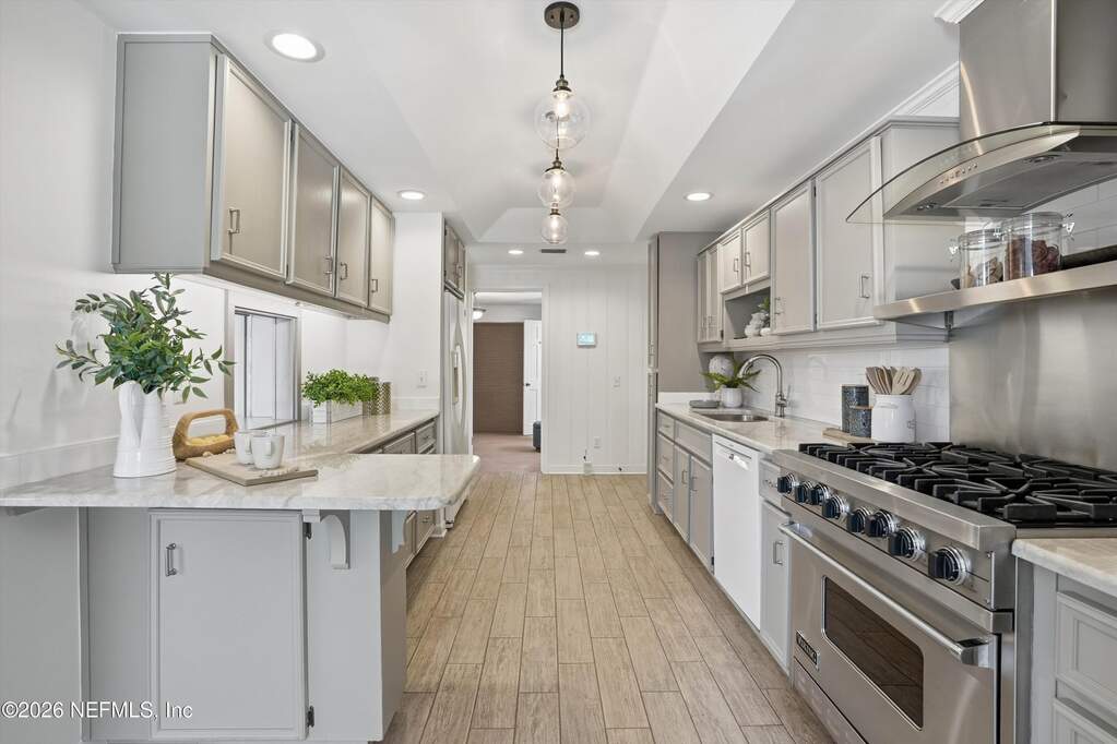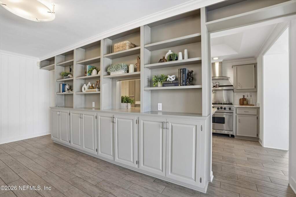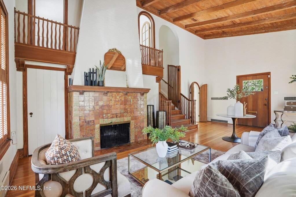 Stunning 1930's Mediterranean on Marco Lake, just steps from San Marco Square. This 3 bedroom, 4 bath home plus office / 4th bedroom option, is the perfect blend of timeless architecture, waterfront serenity, and one of the best locations in the city! Enjoy water and downtown views, along with inviting outdoor spaces designed for entertaining and relaxation. Spacious pool, covered patio, dock with boat lift, and lakefront backdrop create a true resort-like atmosphere. Marco lake leads out to the St Johns River, bring your boat for easy access to fishing, sandbar days, and waterfront dining. Freshly painted inside and out, with original wood trim details enhancing the Mediterranean charm. Soaring ceilings in the living room, framed by a dramatic fireplace and Juliet Balconies bring you back to another time. Whether you are hosting guests, enjoying quiet mornings by the water, or taking a short stroll to the shops and dining in the Square, this exceptional home delivers an unmatched lifestyle in one of Jacksonville's most desirable locations.