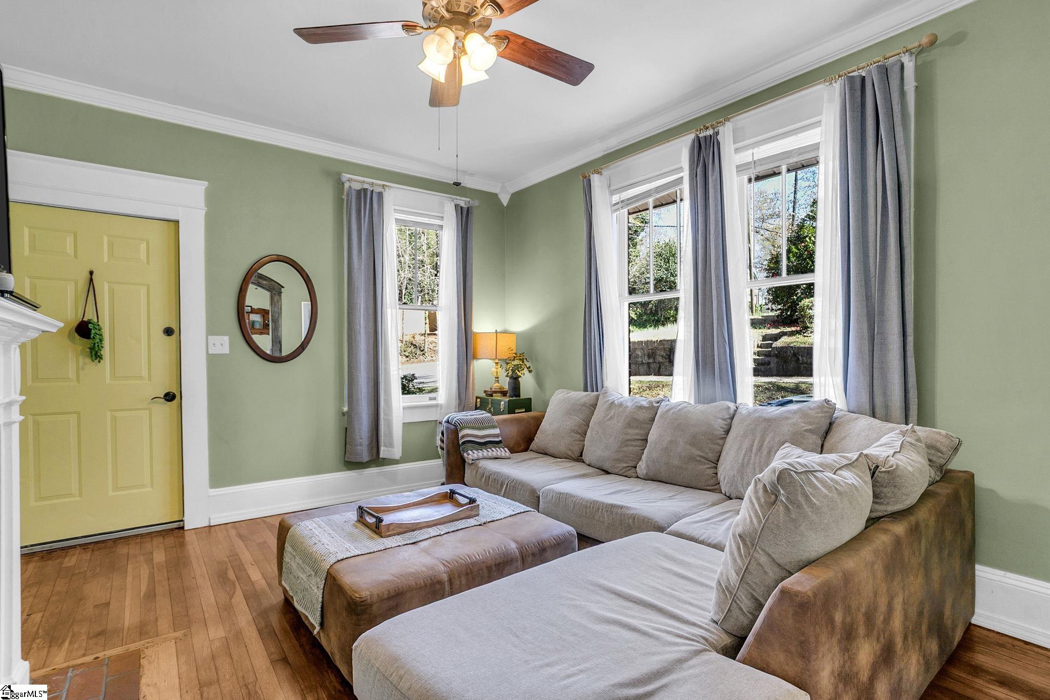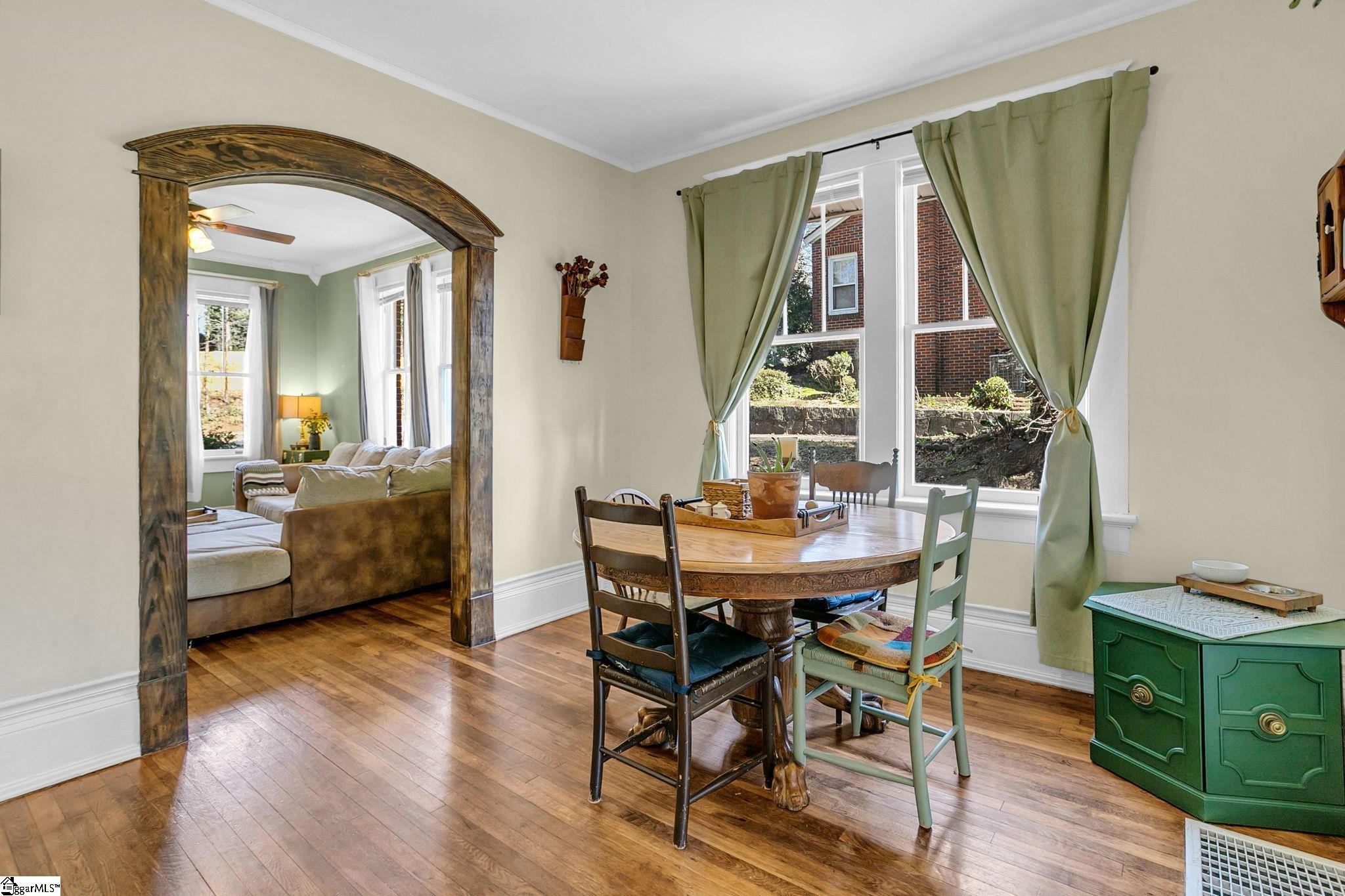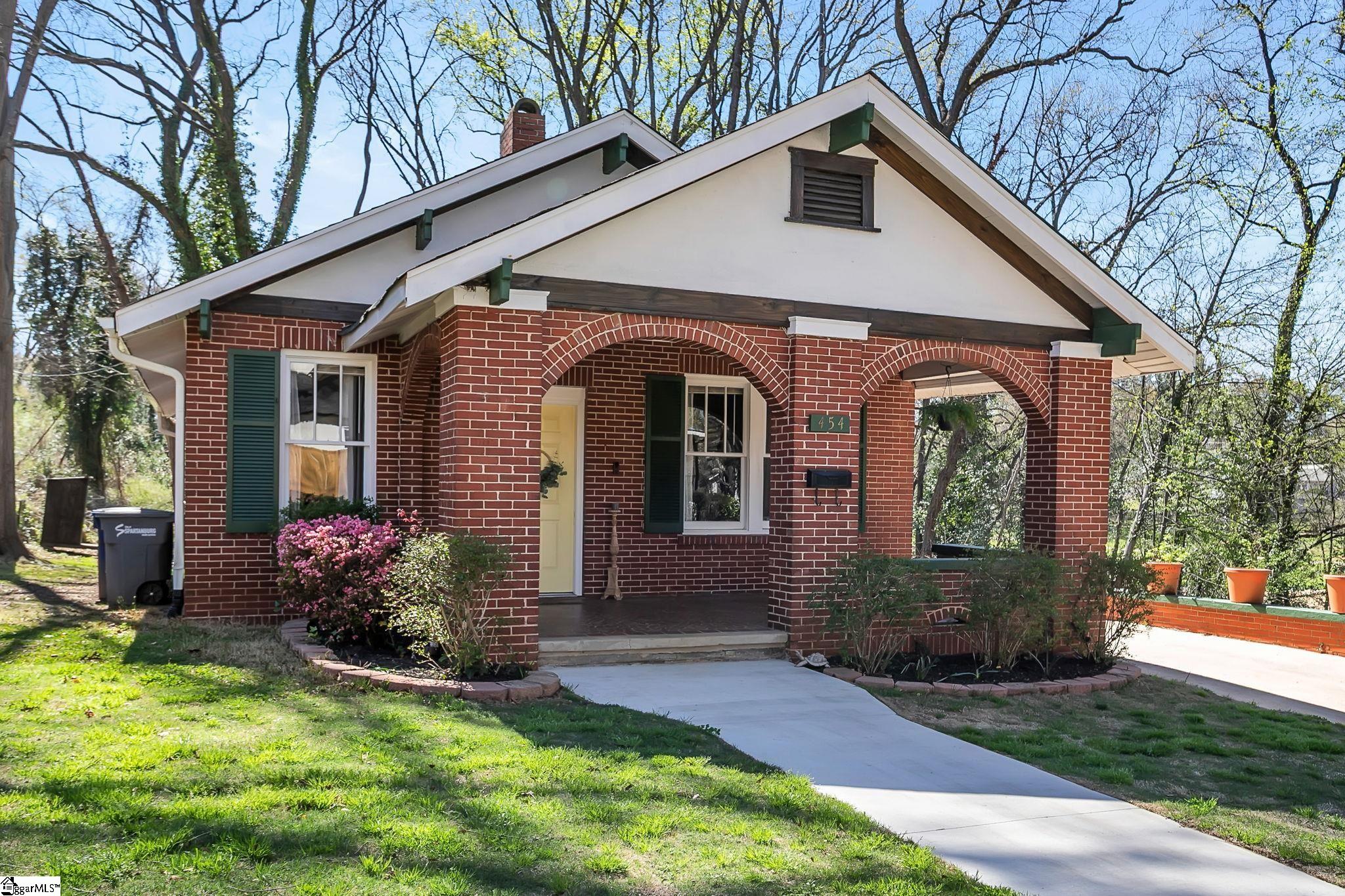 Loaded with Charm and Character, this Full Brick Bungalow in Downtown Spartanburg will not disappoint! The curb appeal of the brick front porch with classic arches and stained plank ceiling will make you fall in love at first sight! It offers a traditional 2/1 layout with tons of storage in the walk-in crawlspace. Many updates have been completed with special attention to maintain or add to the timeless character of this home. All new plumbing, electrical updates, bathroom remodel (tile floor and shower), and a ton of effort restoring the original windows and craftsman trim/moldings throughout the home. The location is ideal; an easy walk or short bike ride into downtown Spartanburg and Fifth Third Park, Home of the Spartan-burgers minor league baseball team. The lot offers plenty of yard space with mature trees at the rear of the lot for plenty of privacy. South Converse Street Park with playground, basketball goals, picnic tables and walking trails is right next door! This quaint 2 bed 1 bath home in historical South Converse packs so much charm. Do not miss your opportunity to own such a wonderful home in such an ideal location.