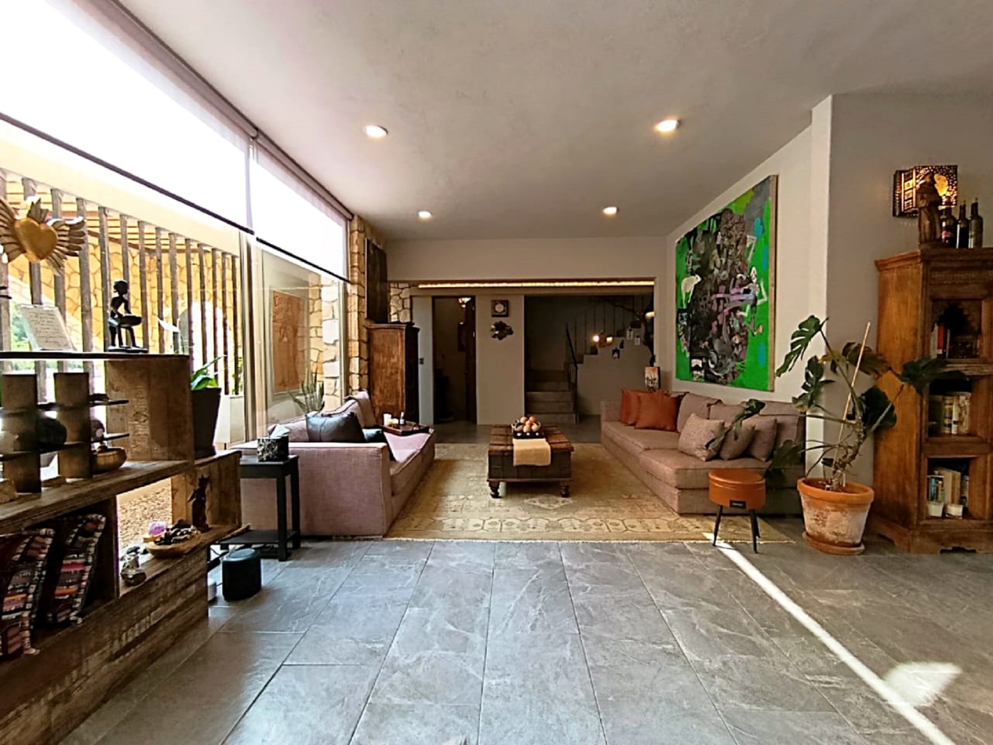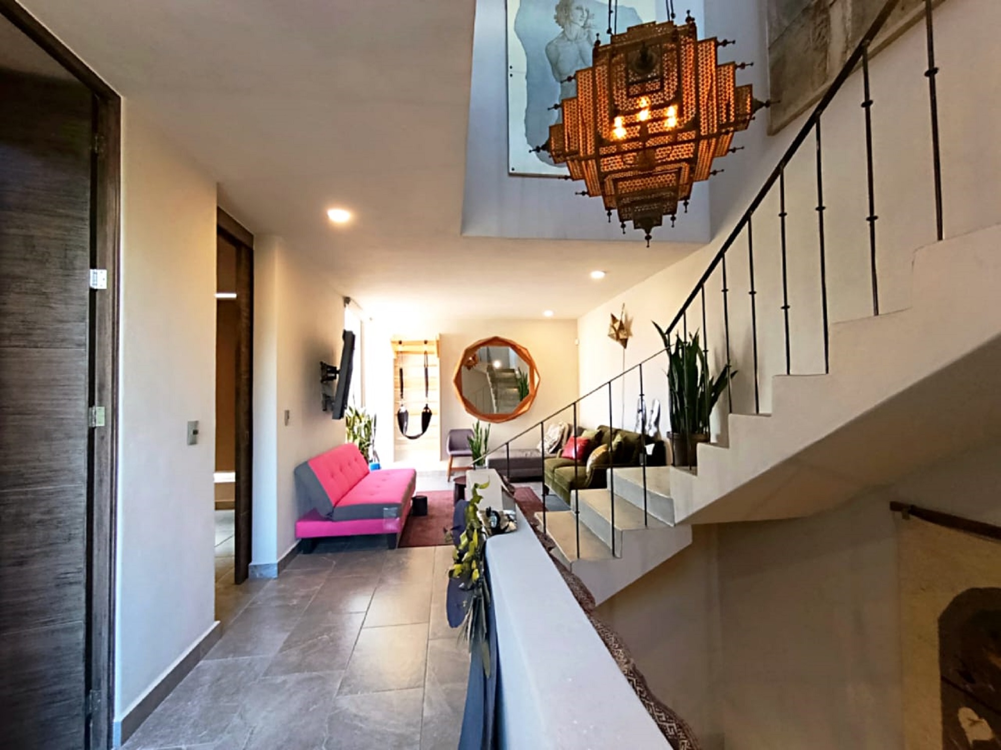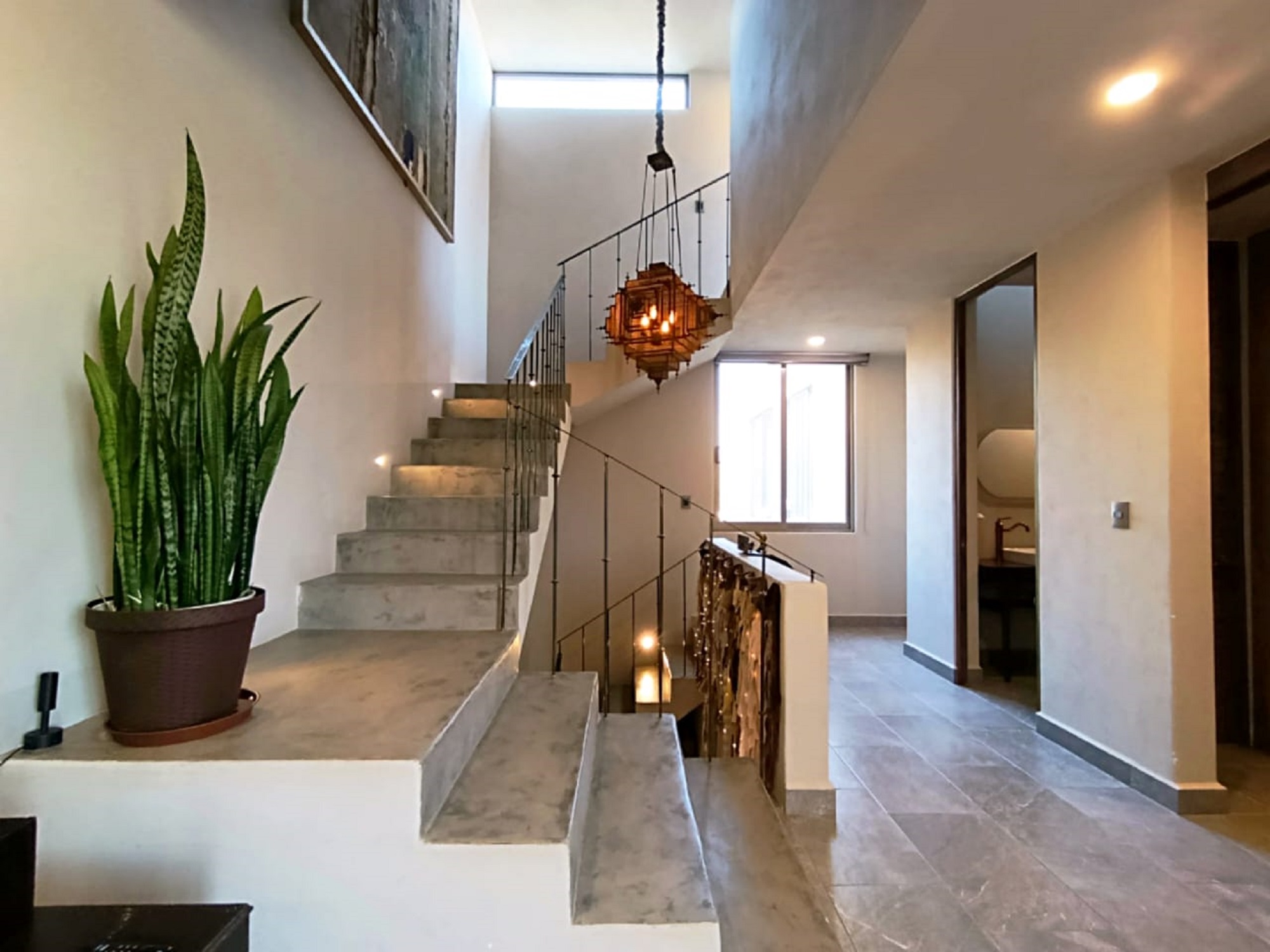 A final staircase leads to the rooftop terrace, where sweeping panoramic views stretch from La Presa to the iconic skyline of San Miguel de Allende’s Centro—an ideal setting to enjoy sunsets and the peaceful surroundings of this exceptional community.