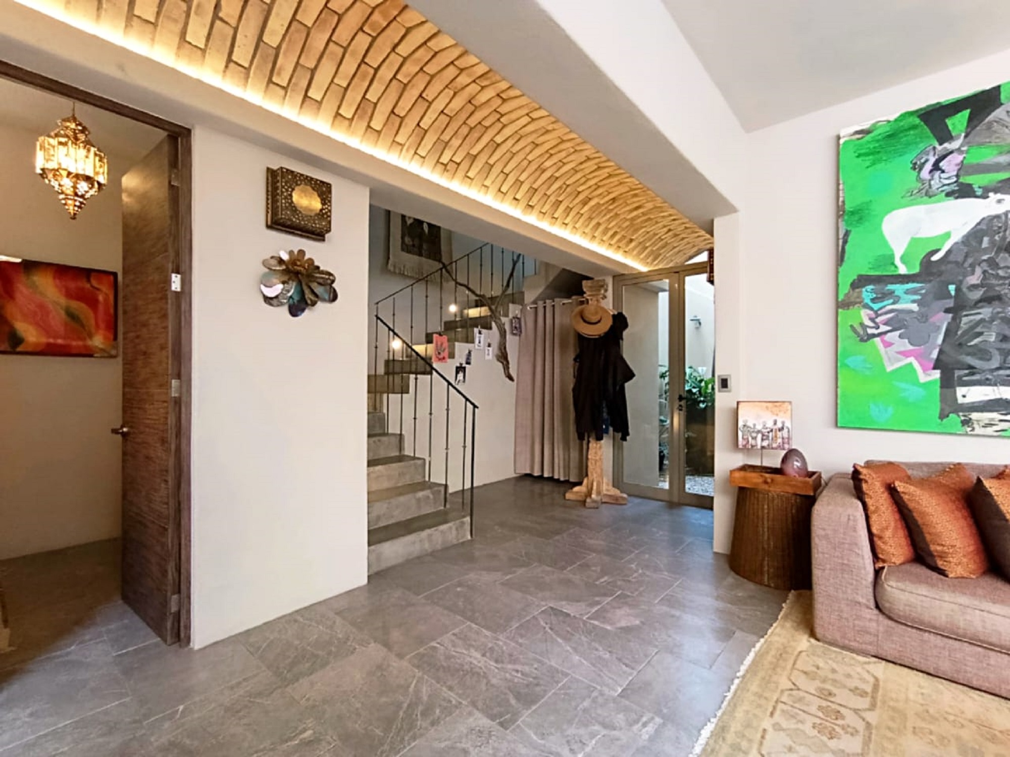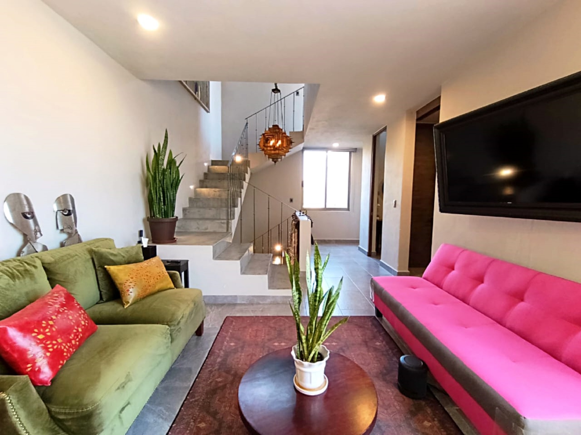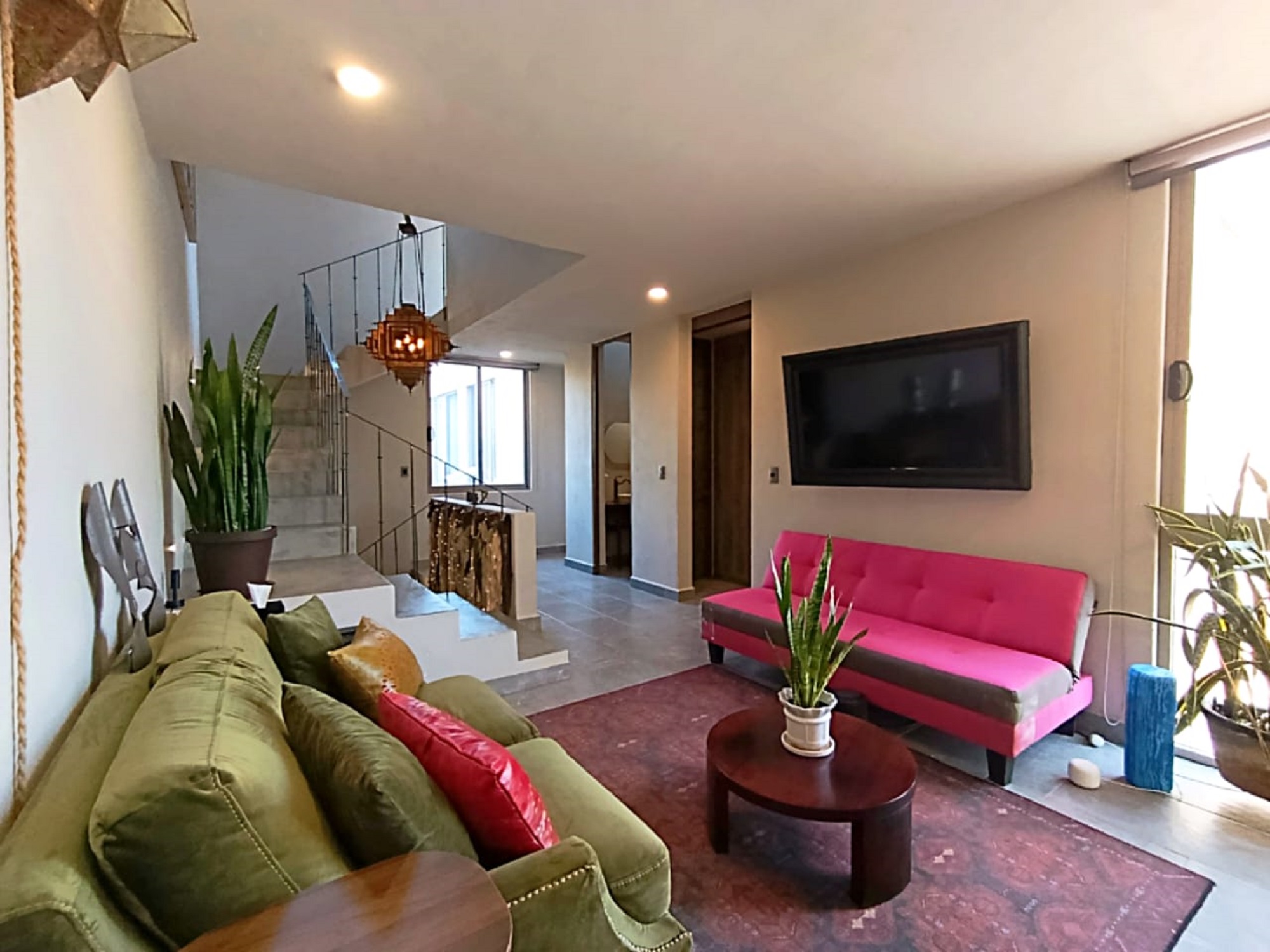 A final staircase leads to the rooftop terrace, where sweeping panoramic views stretch from La Presa to the iconic skyline of San Miguel de Allende’s Centro—an ideal setting to enjoy sunsets and the peaceful surroundings of this exceptional community.