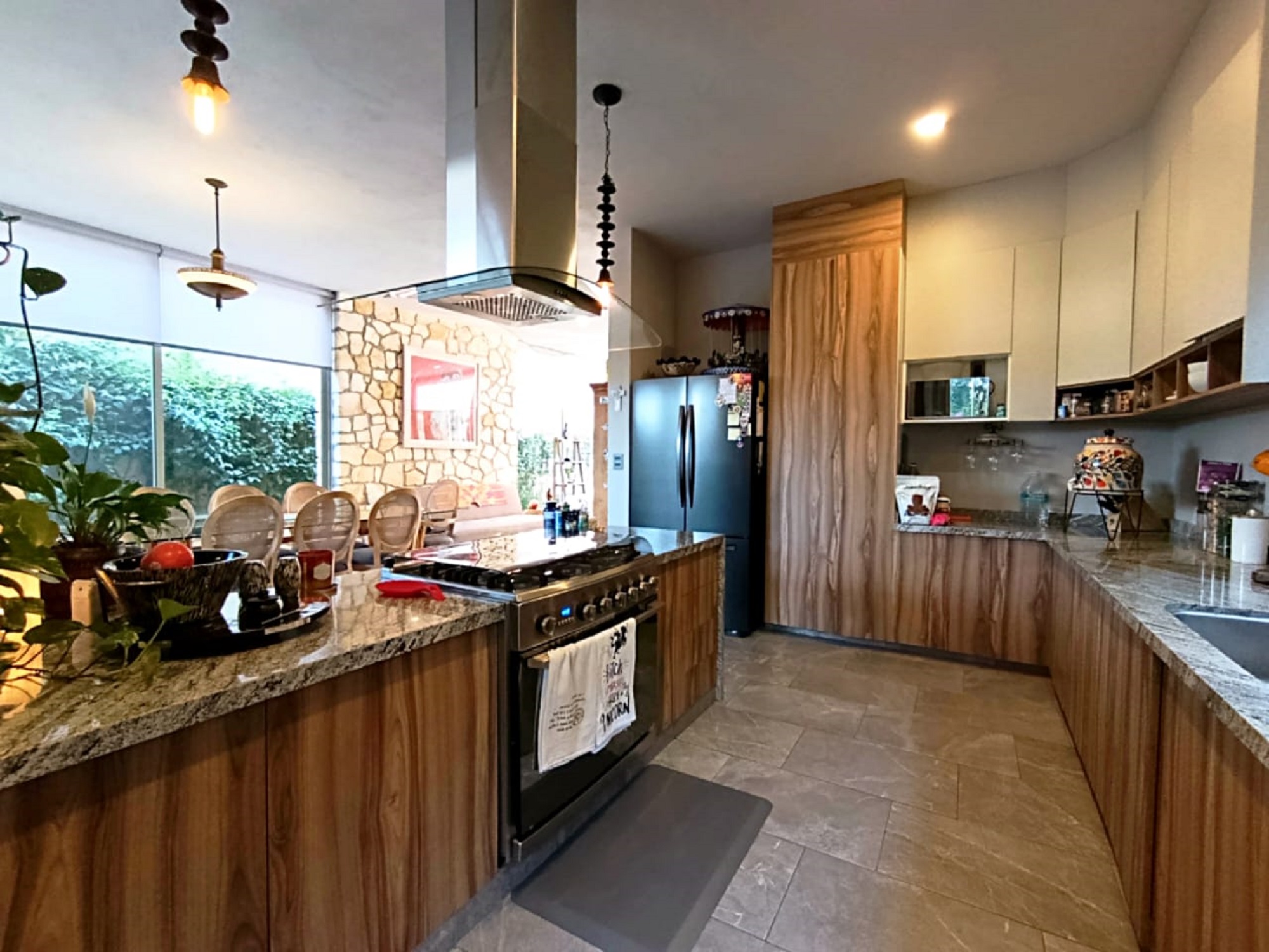 The main level features an open-concept living and dining area that flows seamlessly into the kitchen and out to a charming breakfast terrace—perfect for relaxed mornings. Also on this floor is a convenient guest or service bedroom that can easily function as a home office, connected to the laundry room and kitchen for practical everyday living.