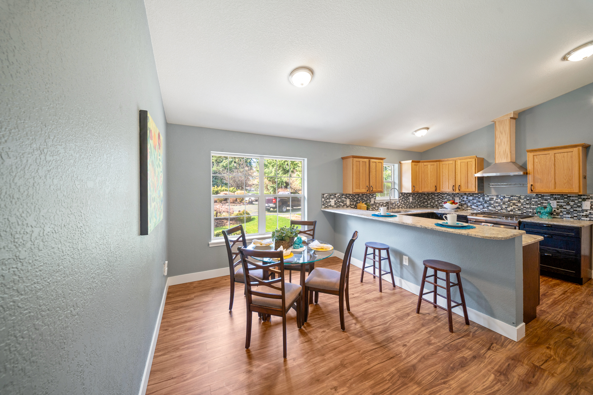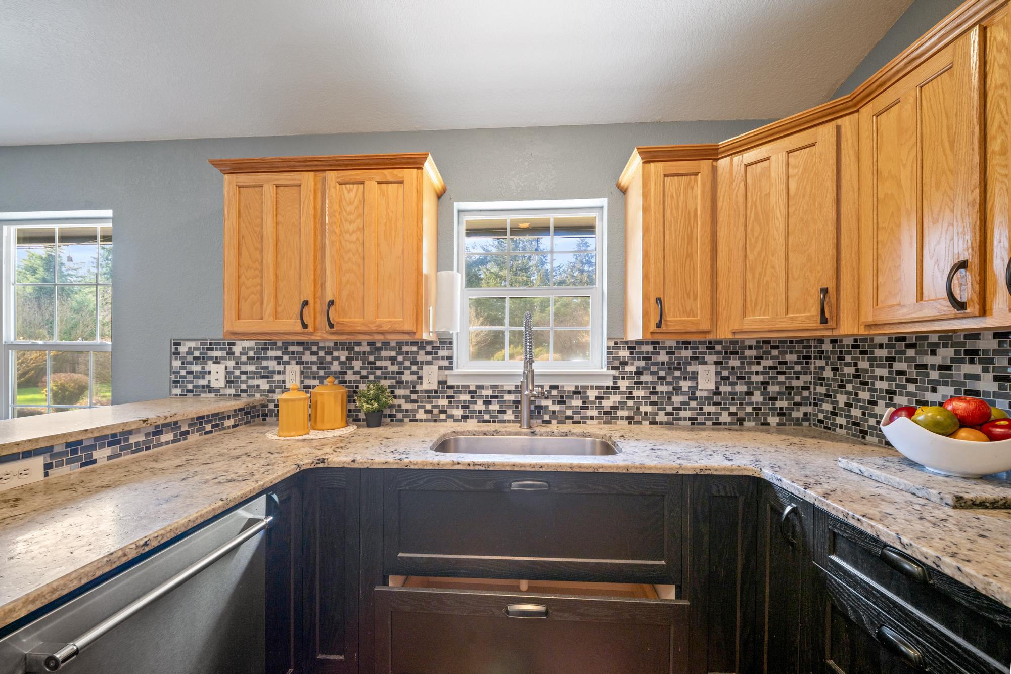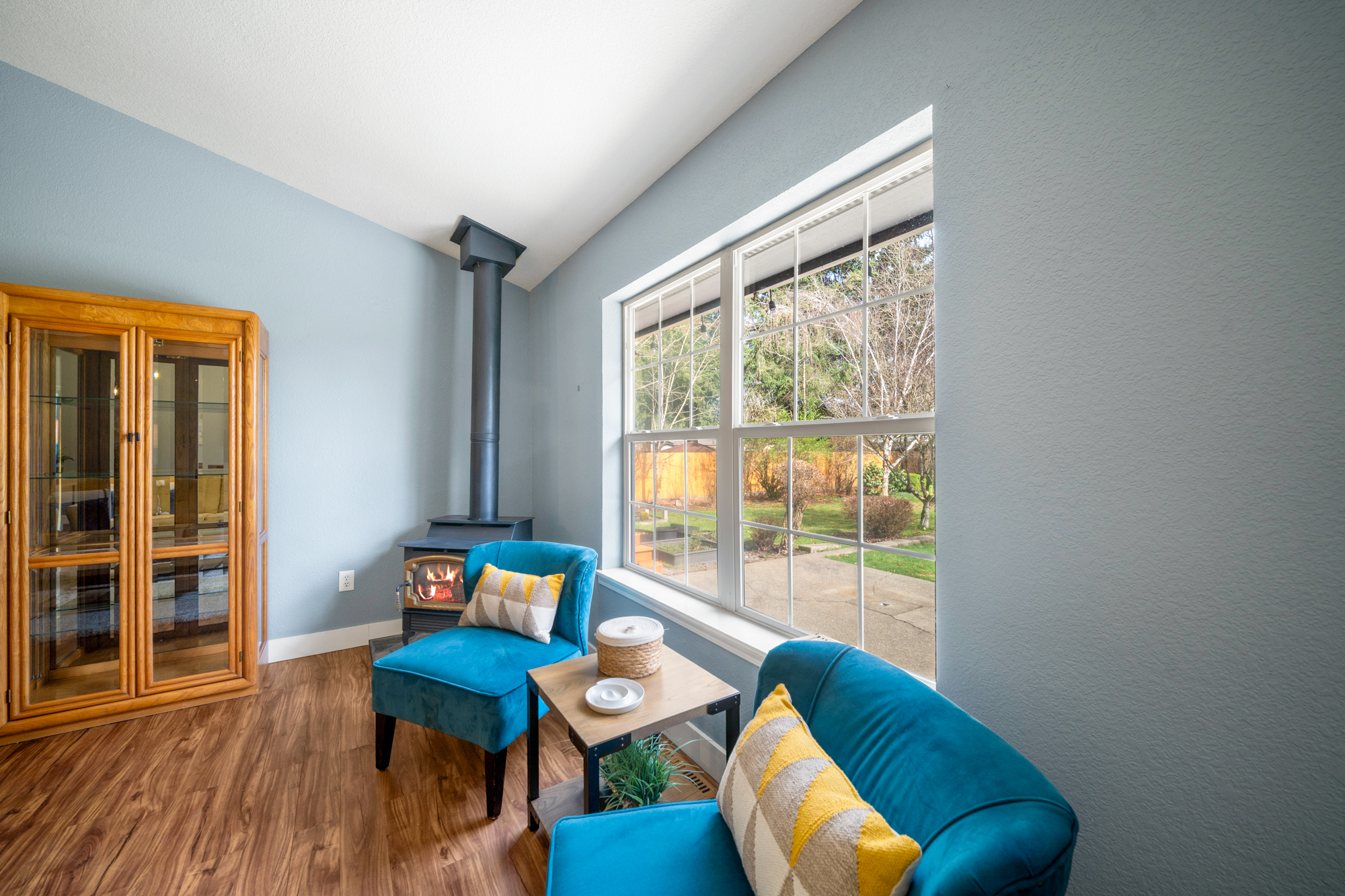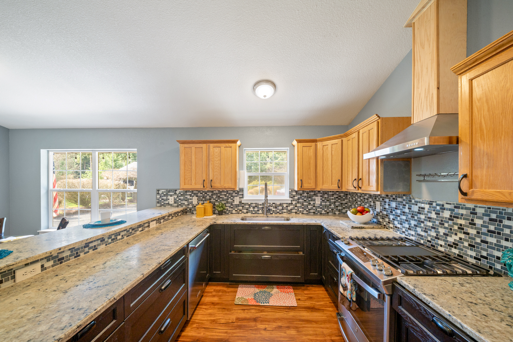 Charming well-maintained rambler on .93 +/- acres! Updated kitchen with granite counters, tile backsplash, stainless appliances, breakfast bar, and dining area. Vaulted ceilings create an open feel through the kitchen and living room, with hard-surface flooring throughout. Spacious primary bedroom with French doors leading to the deck. Comfort features include ceiling fans, central A/C, propane freestanding stove, and solar panels. Enjoy the huge fully fenced backyard with mature trees, above-ground pool, and plenty of space to garden. Extra-large 2-car garage plus 24×36 shop and RV parking—room for all your toys!