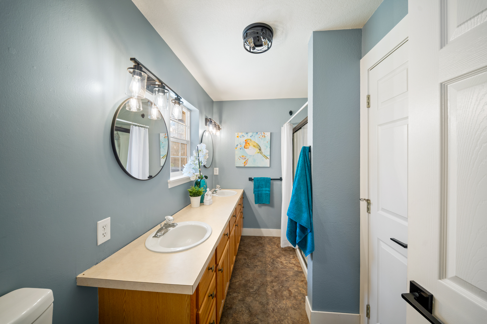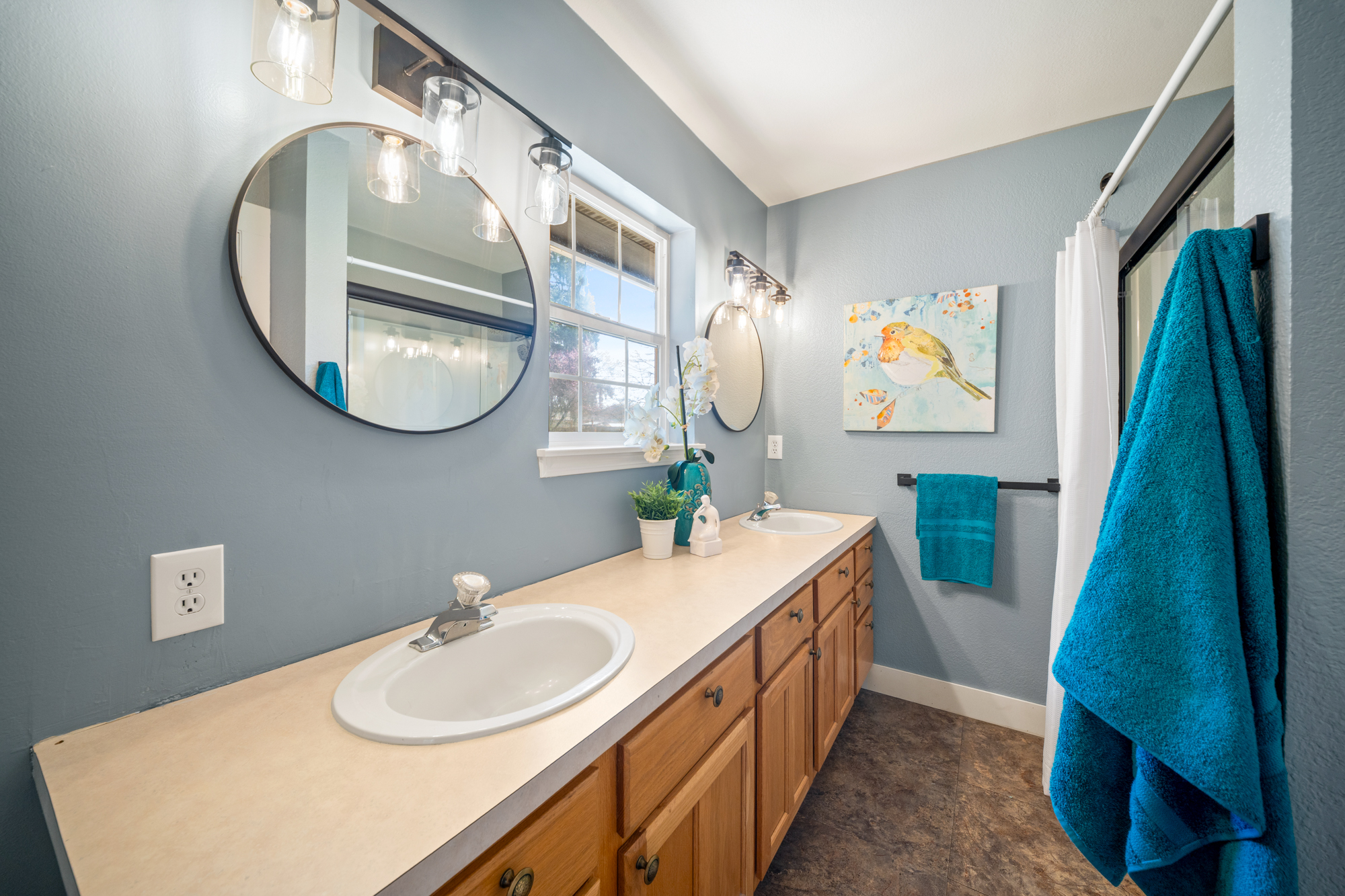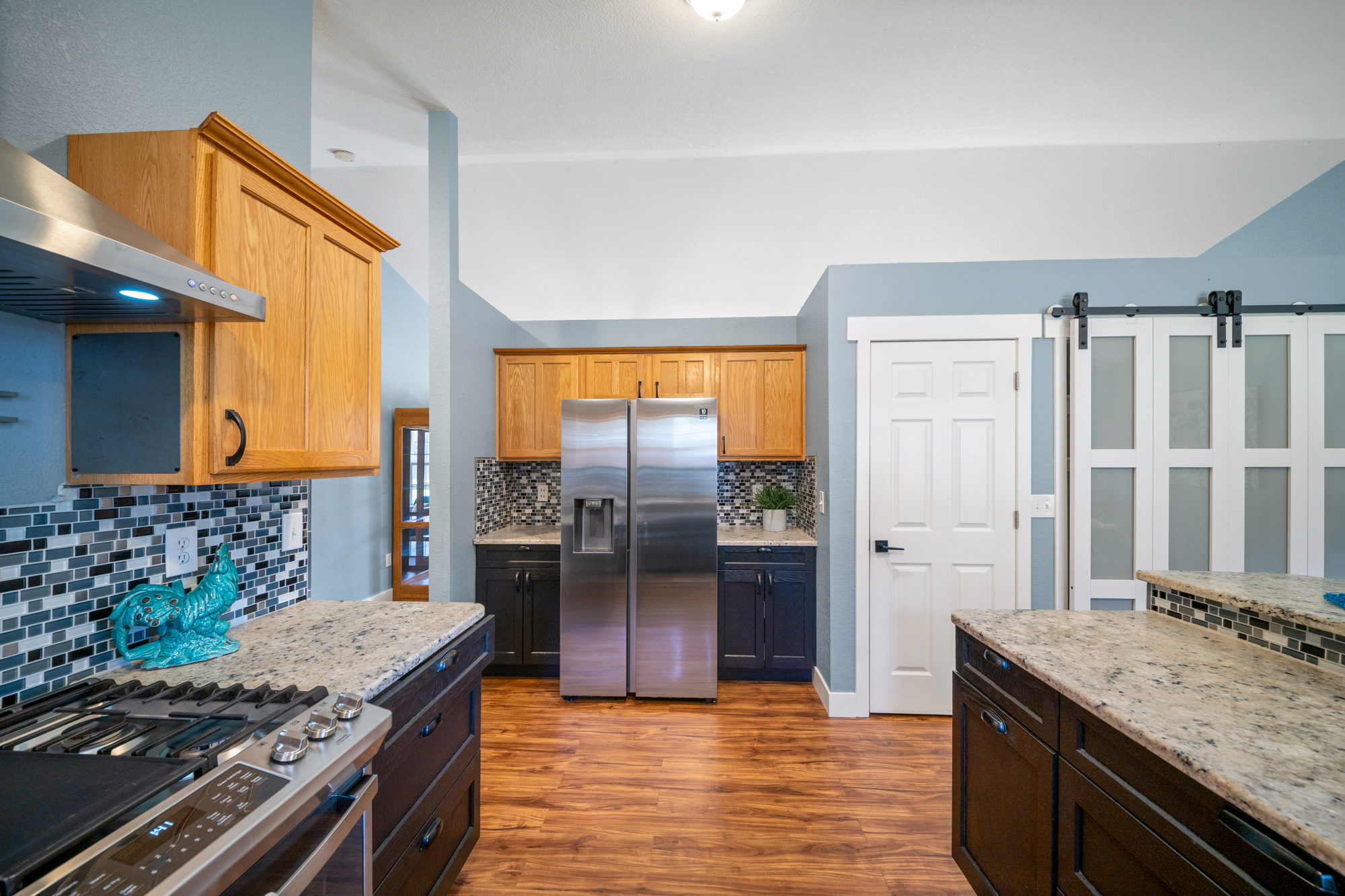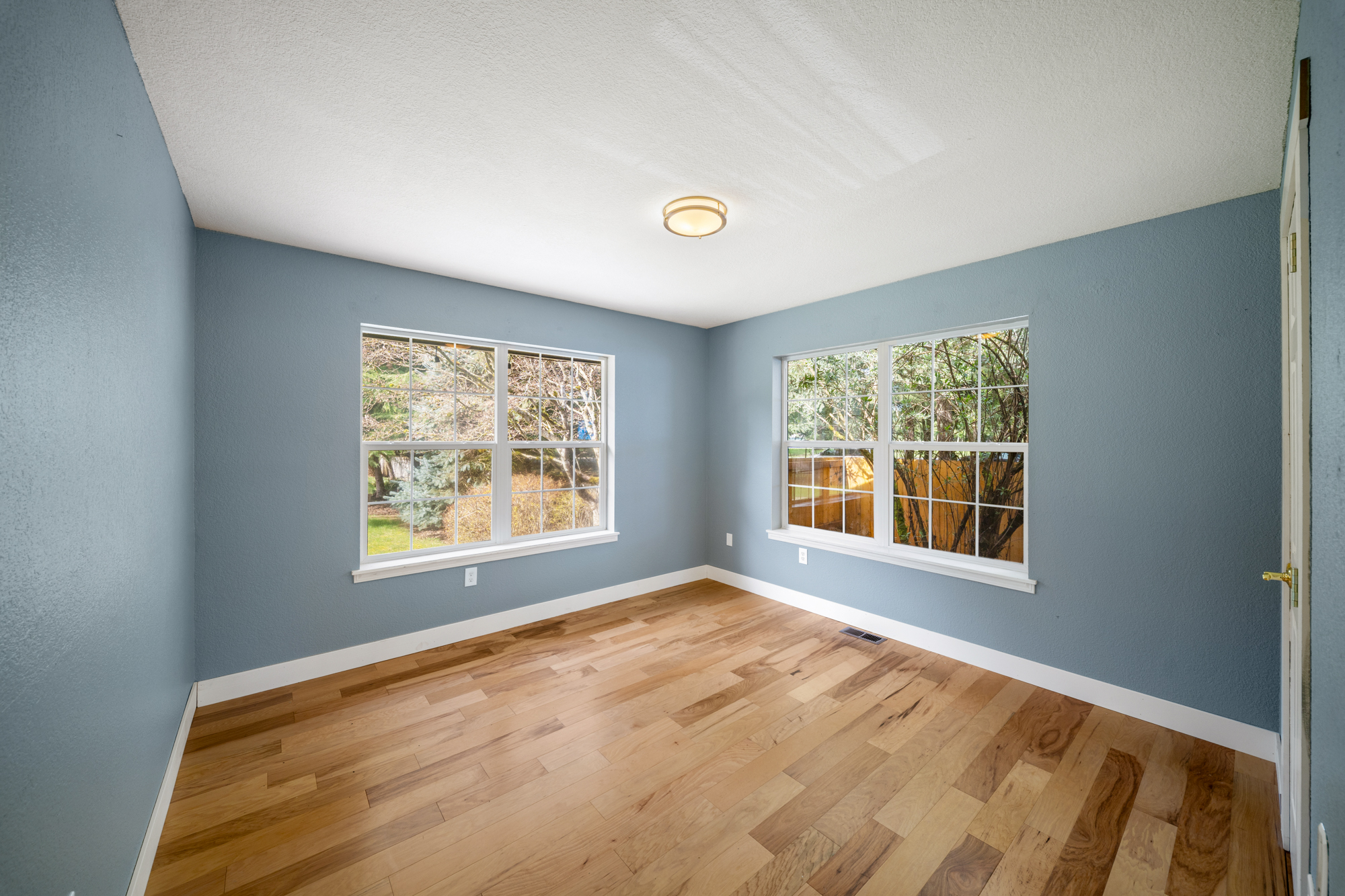 Charming well-maintained rambler on .93 +/- acres! Updated kitchen with granite counters, tile backsplash, stainless appliances, breakfast bar, and dining area. Vaulted ceilings create an open feel through the kitchen and living room, with hard-surface flooring throughout. Spacious primary bedroom with French doors leading to the deck. Comfort features include ceiling fans, central A/C, propane freestanding stove, and solar panels. Enjoy the huge fully fenced backyard with mature trees, above-ground pool, and plenty of space to garden. Extra-large 2-car garage plus 24×36 shop and RV parking—room for all your toys!