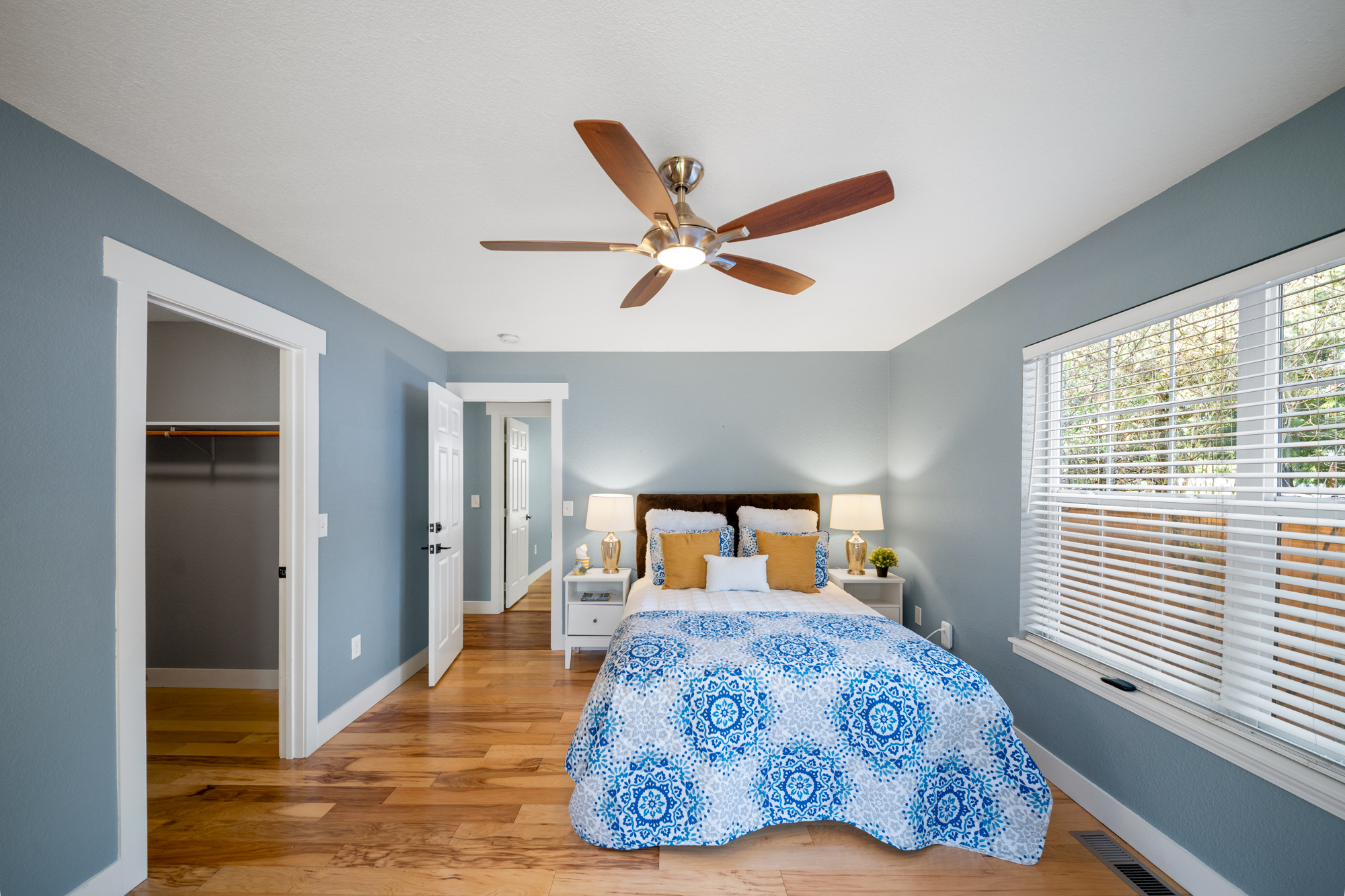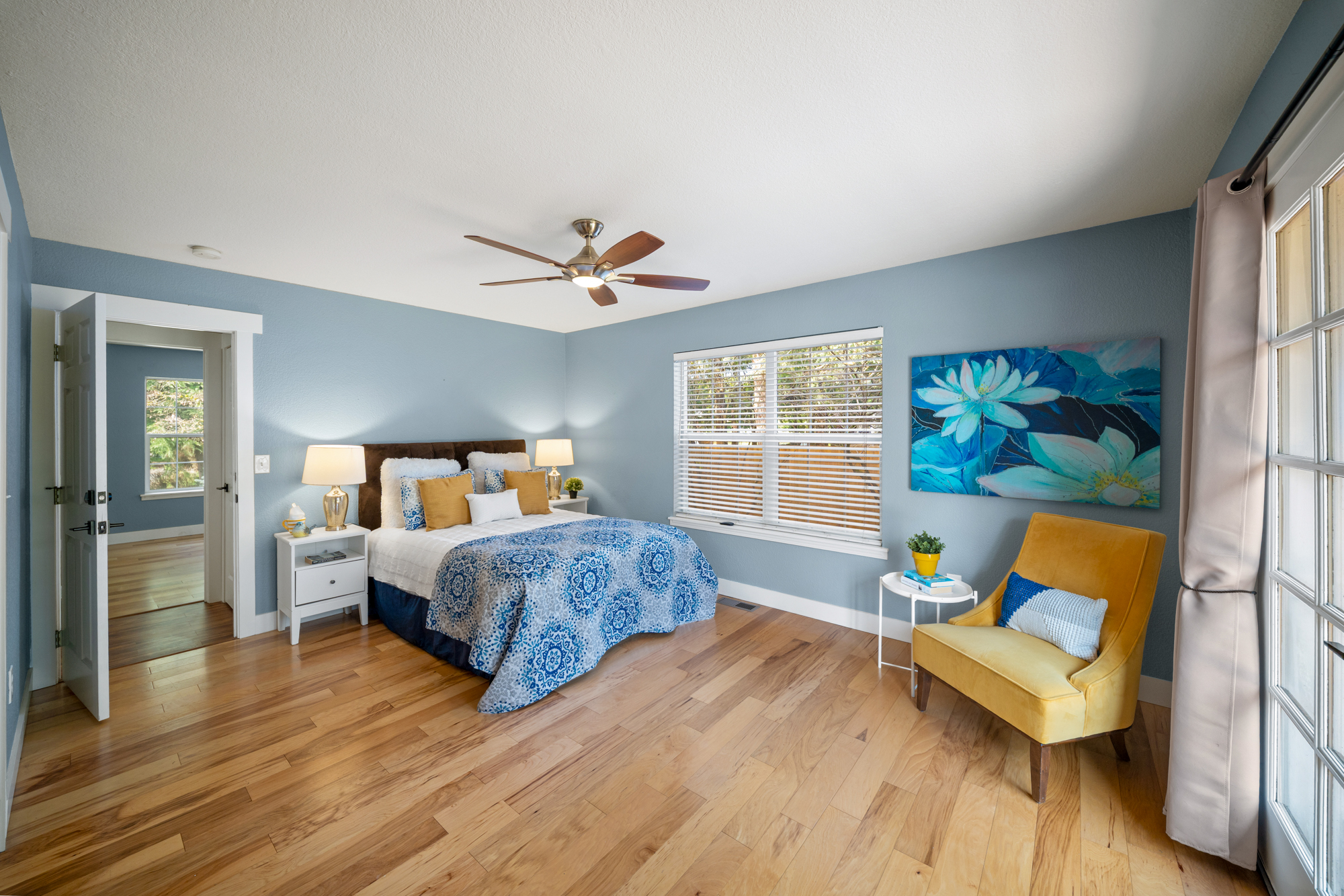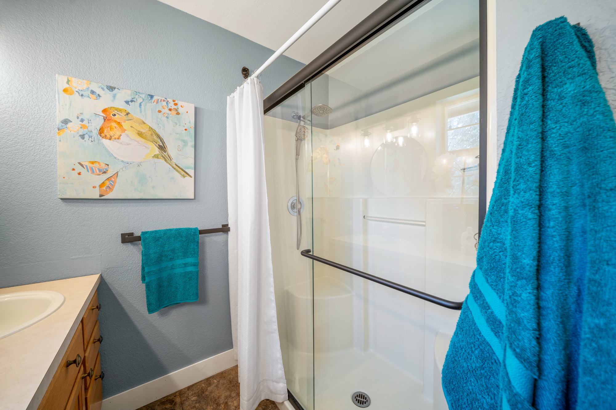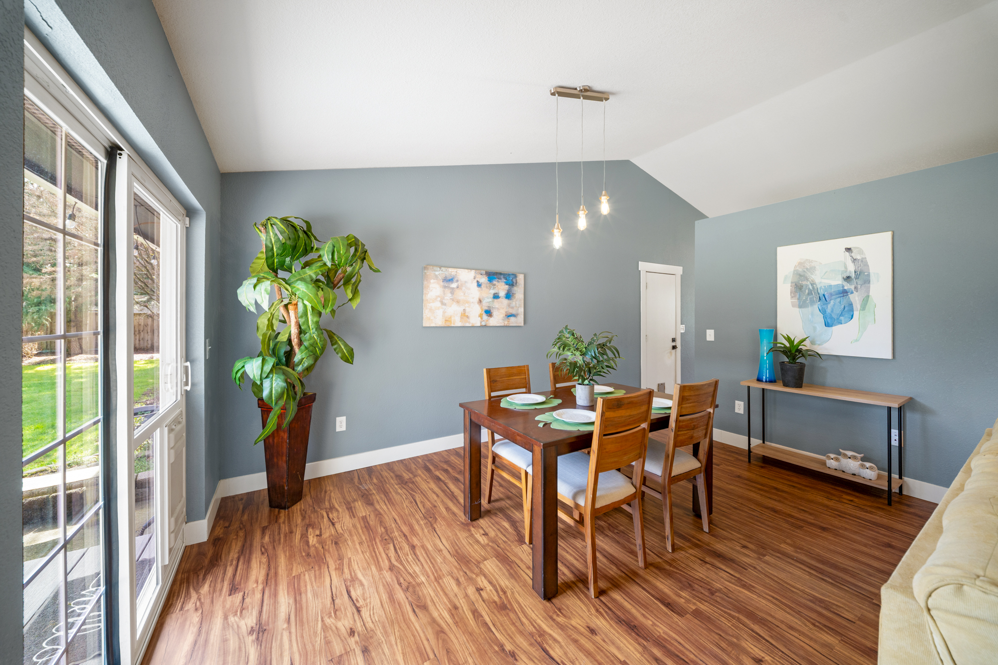 Charming well-maintained rambler on .93 +/- acres! Updated kitchen with granite counters, tile backsplash, stainless appliances, breakfast bar, and dining area. Vaulted ceilings create an open feel through the kitchen and living room, with hard-surface flooring throughout. Spacious primary bedroom with French doors leading to the deck. Comfort features include ceiling fans, central A/C, propane freestanding stove, and solar panels. Enjoy the huge fully fenced backyard with mature trees, above-ground pool, and plenty of space to garden. Extra-large 2-car garage plus 24×36 shop and RV parking—room for all your toys!