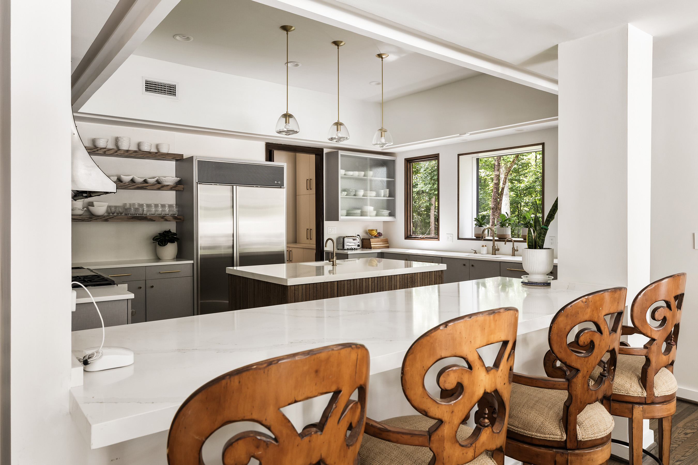 Tucked discreetly behind gates on nearly 11+/- pastoral acres, Northwind is a residence of remarkable provenance and rare scale. Conceived by celebrated architect Henri Jova and commissioned by philanthropist Peter Abreu, this modernist estate is a masterwork of spatial drama, quiet luxury, and architectural clarity, an extraordinary convergence of form and function, history and modernity. Approached via a long, tree-lined drive, the home reveals itself slowly, with monumental geometry set against a backdrop of hardwood forest and rolling lawns. Inside, grandly scaled rooms, originally designed to accommodate heirloom furnishings, unfold in a series of dramatic volumes. A sunken living room crowned by a soaring 30-foot ceiling is encased in walls of glass, dissolving the boundary between interior and landscape. Clean lines and expressive materials reflect Jova’s signature style, emphasizing transparency, proportion, and connection to the site. The residence has been thoughtfully reimagined by its current owner, balancing reverence for the original architecture with nuanced modern updates. Living, dining, and entertaining spaces are fluid and generous, anchored by a re-envisioned kitchen finished in terrazzo and framed by retractable Pella glass doors that open seamlessly to the expansive outdoor terrace and pool. Overlooking the pool is a fully self-contained A-frame guest house, a striking architectural moment in its own right. With its original angular roofline preserved, the guest house offers a full kitchen, living room, bedroom, and full bath, providing a true secondary residence that feels both private and connected. The primary suite occupies its own wing and functions as a private apartment, complete with sitting room, study, morning kitchen, dual dressing rooms, and a separate bedroom or yoga space. A second level offers three additional bedrooms and a full suite of recreational spaces, including a media lounge and billiards room, each oriented toward the surrounding grounds. Zoned agricultural, the property offers flexibility for equestrian use or curated landscaping, and includes a three-car garage, detached studio structure, and additional outbuildings. Despite its seclusion, Northwind sits just minutes from Canton Street, The Avenue East Cobb, and Avalon, offering an uncommon level of privacy without sacrificing proximity to the best of North Atlanta. An architectural landmark, a legacy estate, and an exceedingly rare land offering, Northwind presents a once-in-a-generation opportunity to own a true cultural and architectural artifact in one of North Atlanta's most accessible and desirable suburbs.