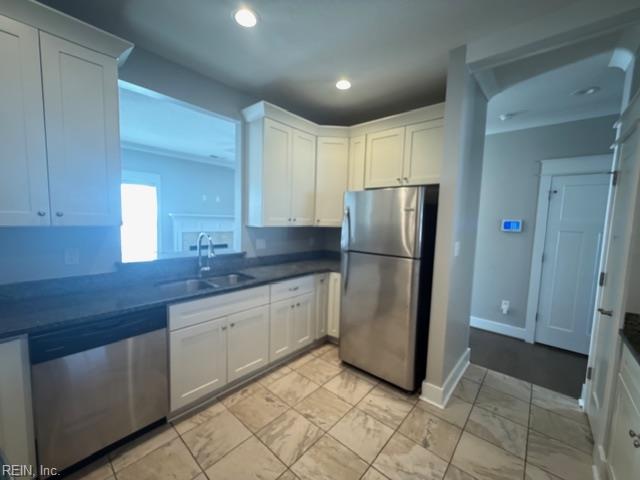 Portlock Square townhome style condos boast spacious interiors and luxury features such as granite countertops and tiled floors in the kitchen and bathrooms premier white cabinetry, gleaming, stainless-steel appliances, durable and exquisite engineered hardwood floors on the primary floor, Craftsman trim, ceiling fans throughout, and beautiful, custom plantation blinds in the living room. Fresh paint and new carpet make for an easy move in. This end unit is part of the newer community that is perfectly located for quick commutes to the Norfolk Naval Base, Portsmouth Naval Hospital, Norfolk Naval Shipyard, Portsmouth Coast Guard Base, MacArthur Mall, Downtown Norfolk, Chesapeake Regional Medical Center. Greenbrier Mall, and Battlefield Blvd. Sorry, no smoking, no pets. Please call/ text agent for showing instructions or to apply. Available now.