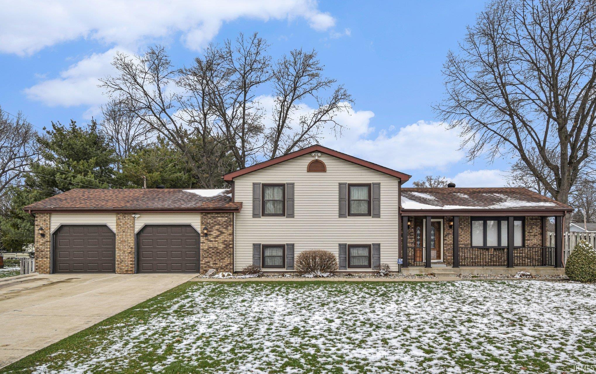 Welcome home to this charming and well-cared-for tri-level, perfectly situated on nearly half an acre with space to relax, entertain, and grow. This 3-bedroom, 2 full bath home offers generous room sizes throughout and a thoughtfully designed layout featuring two separate living areas, including a bright main-level living room and a cozy lower-level den, ideal for everyday living or hosting guests. The lower level also features a wood-burning stove, adding warmth and character, while the unfinished basement provides excellent potential for additional living space, recreation, or storage. The large primary bedroom provides a comfortable retreat, and the home's condition reflects true pride of ownership from a single owner. Numerous updates have been completed over the years, including a new roof in 2023, new dryer in 2023, and most windows replaced in 2012. Additional improvements include updated siding and porch railing, as well as carpet replaced within the past 6-7 years. Enjoy the convenience of a sprinkler system and step outside to a fully fenced-in backyard, perfect for pets, play, or private outdoor enjoyment. The sunroom offers an ideal space for spring and summer entertaining while overlooking the expansive yard. The attached garage features a 220V generator hookup to power the home in case of power outages, offering added peace of mind and functionality. This home is structurally sound and move-in ready, with only minor cosmetic updates such as paint or wallpaper needed to make it your own. A wonderful opportunity to own a solid, lovingly maintained home with space, comfort, and long-term value.