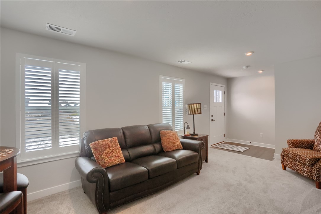 Better Than New: Luxury End-Unit Townhome in Blackstone, Welcome to 1146 Olivia Drive, where modern luxury meets effortless living. Why wait for new construction when you can move into a meticulously upgraded, "better than new" end-unit townhouse today? This stunning 3-bedroom, 2.5-bathroom residence combines the privacy of an end-unit with the high-end finishes of a model home, all situated in the sought-after Blackstone community within the West Allegheny School District. Sophisticated Main Level Living, from the moment you step inside, the open-concept design invites you to relax and entertain. The heart of the home is the expansive Great Room, which flows seamlessly into a gourmet eat-in kitchen. This isn't just a kitchen; it's a chef's dream featuring a massive center island perfect for casual dining or holiday spreads. Elegant quartz countertops providing ample prep space. A full suite of premium appliances included. Stylish cabinetry and a layout designed for maximum functionality. Step through the glass door onto your extended deck. Enjoy your morning coffee or evening cocktails with an unobstructed, peaceful view - a rare find in townhouse living. Work from Home in Style: Tucked perfectly off the Great Room is a dedicated cozy home office area. Whether you need a quiet nook for morning emails or a permanent command center, this versatile space keeps you connected to the home's energy while providing the focus you need. Upper Level Sanctuary, retreat to the second floor, where comfort is the priority. The Primary Suite serves as a private oasis, boasting a large walk-in closet and a spa-like ensuite bath featuring an oversized shower with dual shower heads and double sinks. Two additional spacious bedrooms, each equipped with ceiling fans, provide plenty of room for family, guests, or a home office. For ultimate convenience, the laundry room is located on the second floor and comes complete with the washer and dryer. You'll also notice the high-end touches throughout, including custom window treatments and plantation shutters that add a timeless, polished look to every room. Space to Grow & Play, the lower level offers a versatile finished Game room, providing the perfect spot for a media center, home gym, or play area. With a 2-car integral garage, you'll have plenty of storage and protection from the elements. The Blackstone Lifestyle means more than just owning a beautiful home; it means enjoying a resort-style lifestyle. The HOA is currently building a private clubhouse, community pool, and fitness center. Forget the weekend chores! Your monthly fee covers Professional lawn care, snow removal from sidewalks and streets and access to all future community amenities within walking distance. Unbeatable Location, truly location is everything! You are just minutes away from the Donaldson Community Center and local parks, offering endless outdoor recreation. With easy access to North Fayette's shopping and dining, and a quick commute to the Pittsburgh International Airport or Downtown, this home offers the perfect balance of suburban tranquility and urban accessibility. Key Features at a Glance: End-Unit Privacy: Extra windows and natural light. Modern Finishes: Quartz, laminate flooring, and ceramic tile. Turn-Key Ready: All Appliances, washer/dryer, and custom shutters included. Peace of Mind: Home warranty included and 2025 construction. The End-Unit Advantage, Not all townhomes are created equal. As a coveted end unit it offers a level of privacy and comfort that simply cannot be matched. Abundant Natural Light: With an entire extra wall of windows, the home is bathed in sunlight from three sides, creating a bright, airy atmosphere. Extra Green Space: The end-unit placement provides additional side-yard space, perfect for a more open, spacious feel when stepping outside. Don't wait for a build list - start living your best life right away!