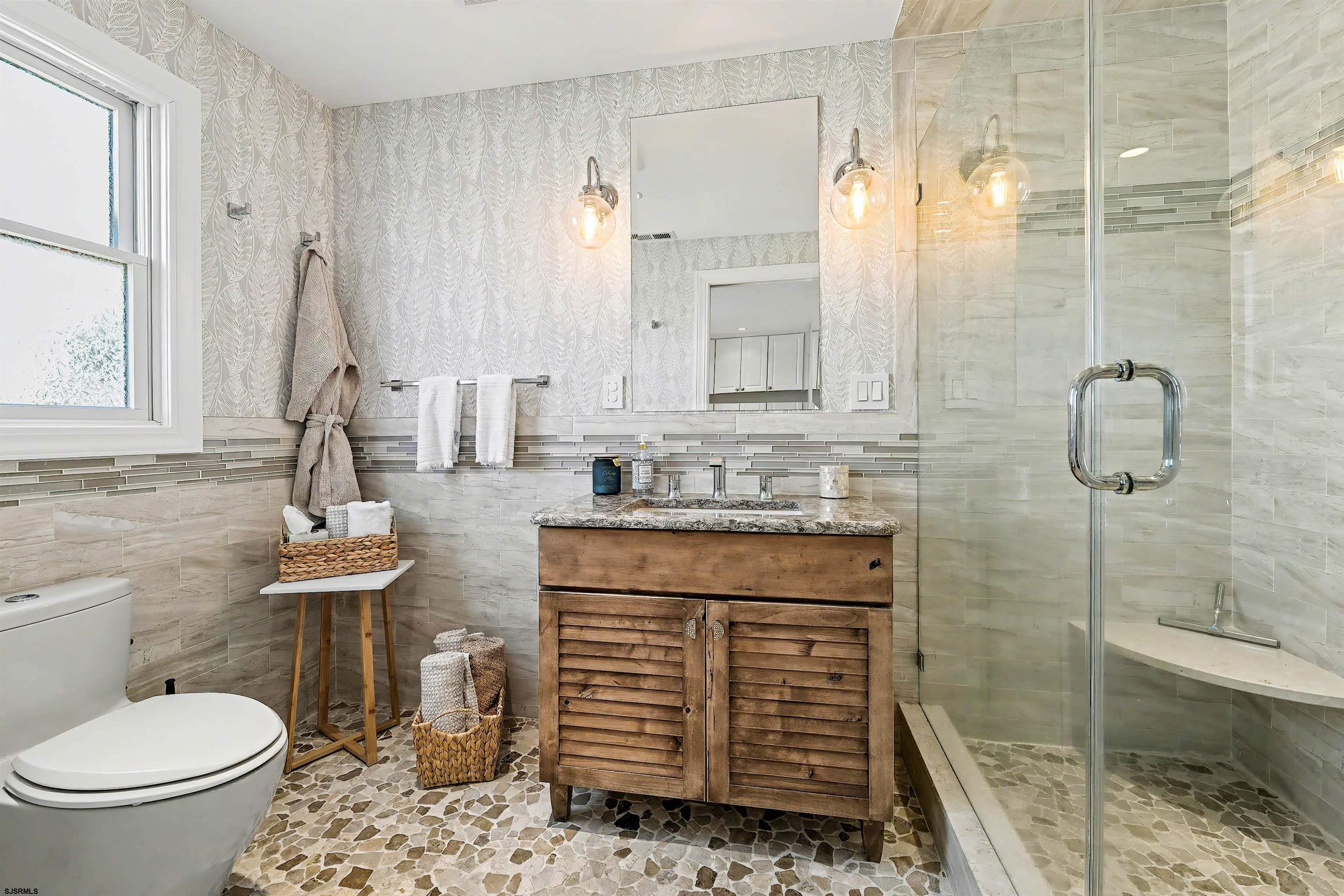 Impeccable sophistication describes this beautifully renovated 4 bedroom 2 full bath home on large corner lot. Vinyl plank flooring, central air, new kitchen & baths with walk in showers. Furnished with coastal luxury vibes. Open layout with eat-in kitchen with sliders that lead to the large 14' X 25' foot back deck with jacuzzi & BBQ. Outside shower plus plenty of fenced in lawn area for summer fun. Laundry area with wash basin & a bonus nursery for little ones. Bike and beach chair storage under the back deck. Short drive to the beach, stores & restaurants. Walk to ski beach for relaxation or to enjoy the weekly summer concerts. Enjoy the nightlife in Atlantic City. Owner is flexible on rental dates, available June $12,000. July $16,000. August $20,000. full season or possibly weekly. Call for more information.