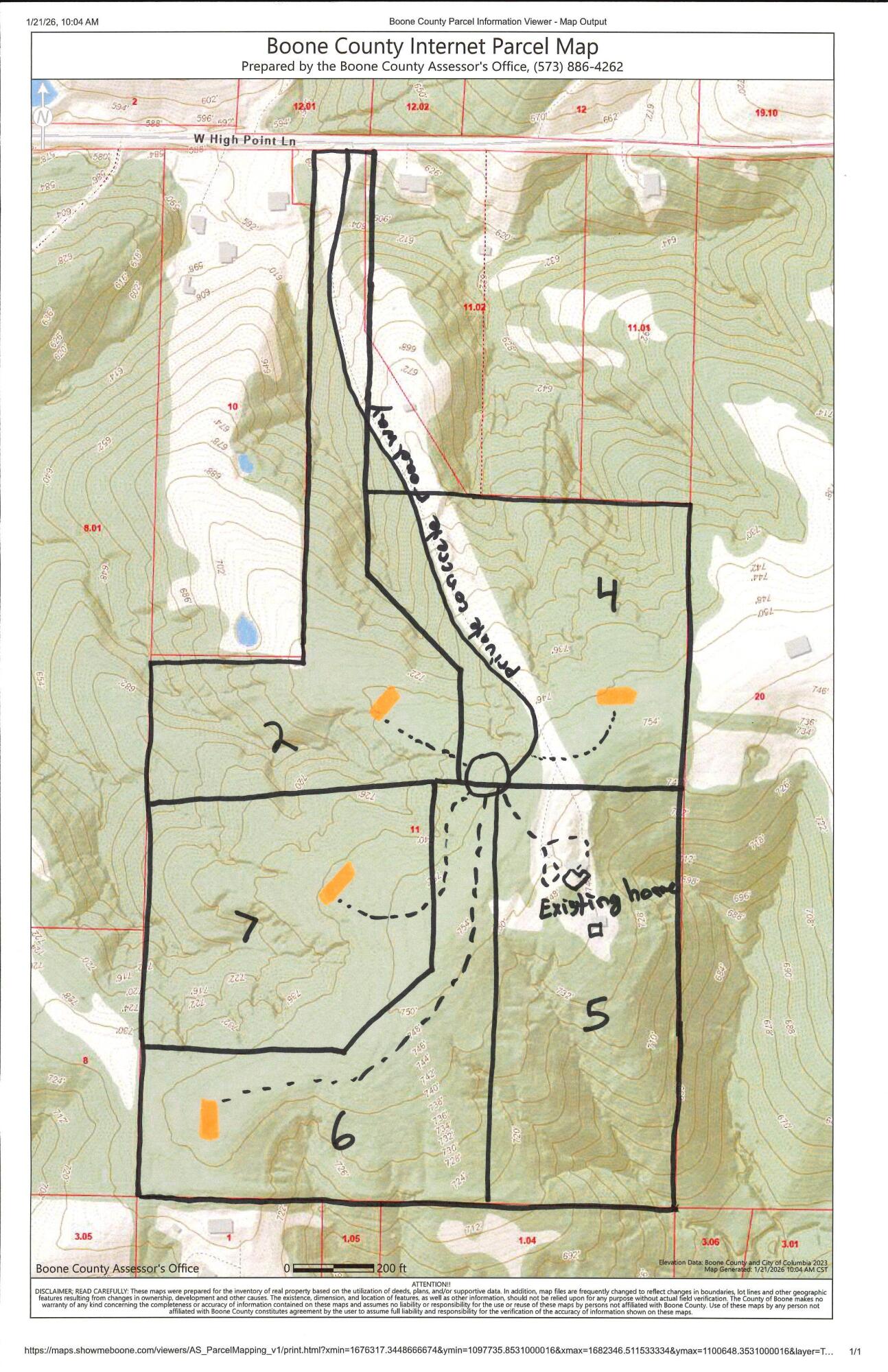 10 acre tract in South Columbia offering a very private setting in mature woods. Varied topography perfect for either slab or basement homes. Soon to be installed concrete shared driveway running from High Point Lane up to a cul-de-sac to access tracts. Boone Electric provided on each tract.