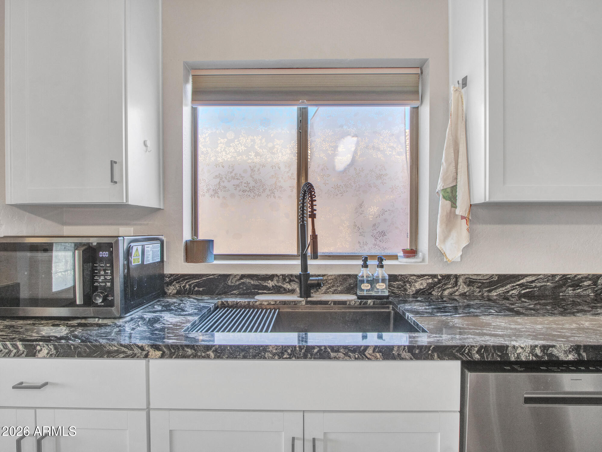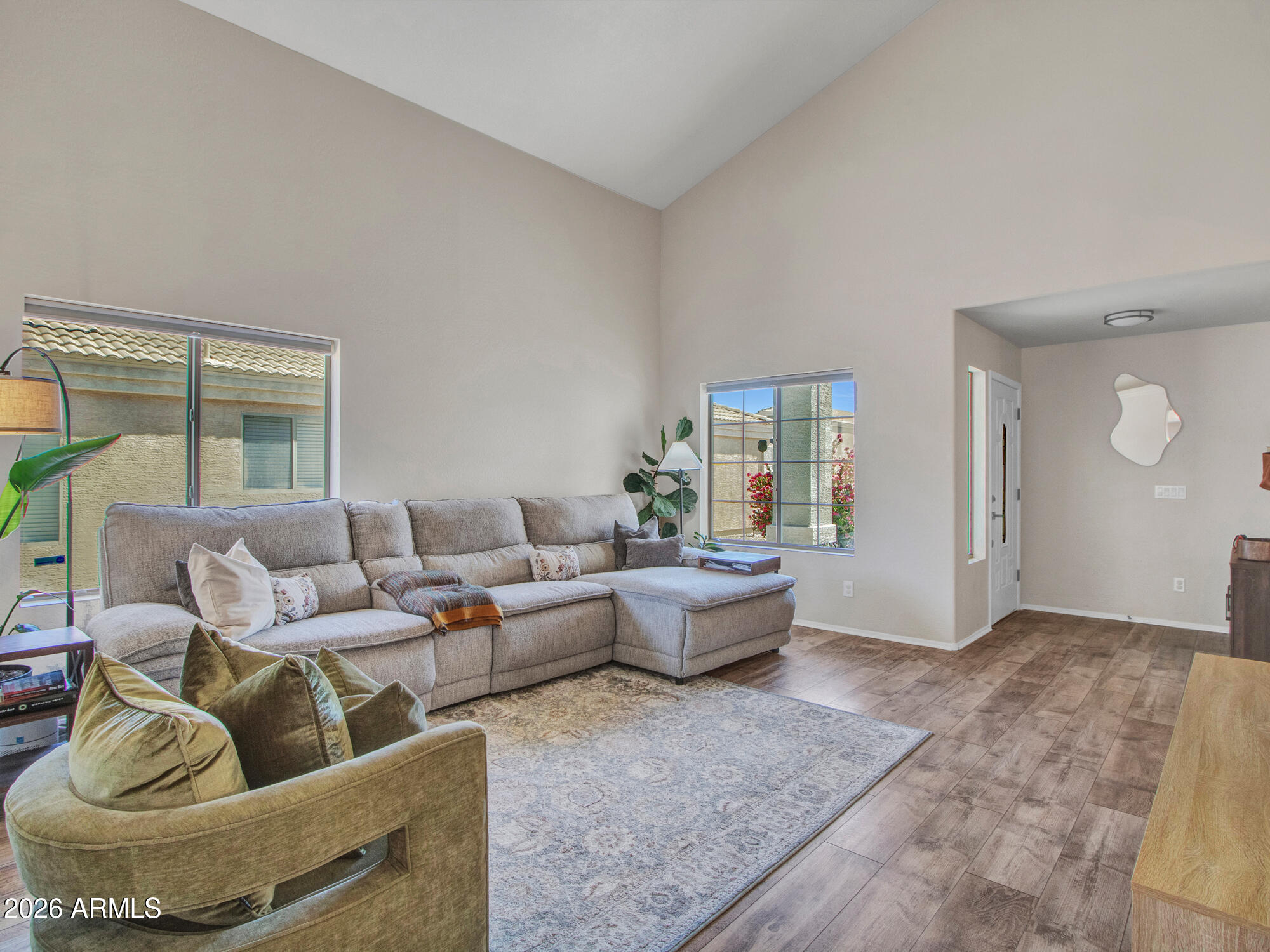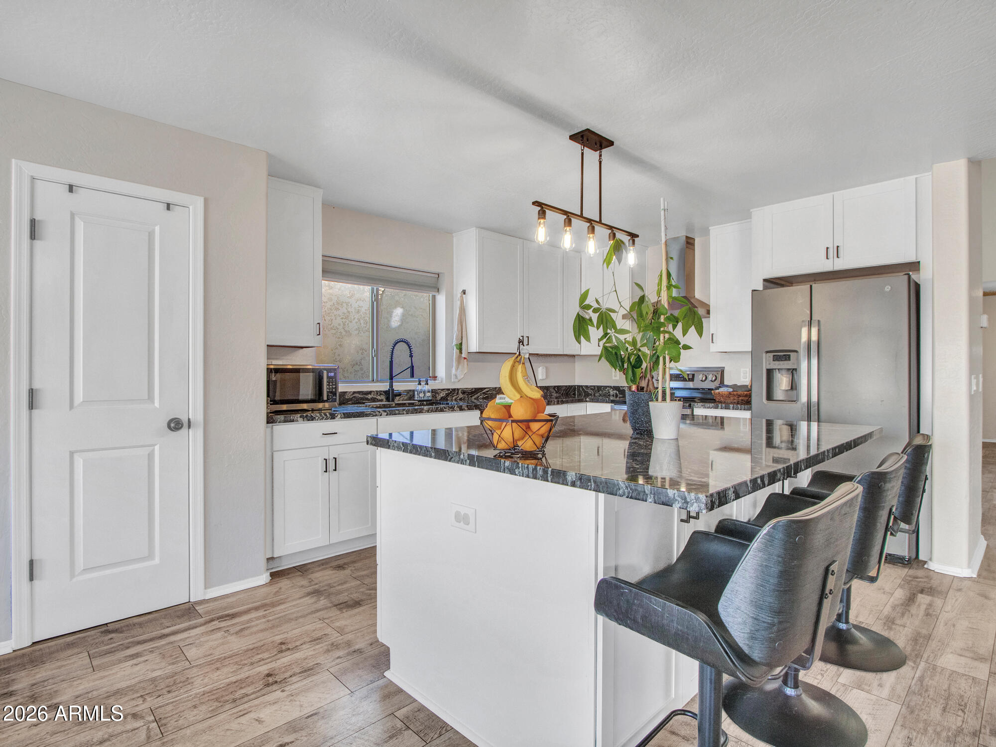 Beautifully updated and move in ready home with soaring vaulted ceilings and stylish LVP flooring. The fully remodeled kitchen shines with granite countertops, farmhouse sink, touchless faucet, soft-close drawers, and stainless steel appliances. Enjoy the convenience of a full bed and bath downstairs. Fresh updates include interior/exterior paint, new doors, trim, hardware/ hinges, window coverings, smoke detectors, and carpet (2023). Upstairs features a loft, and 3 bedrooms including a spacious primary suite with walk-in closet, soaking tub, and updated fixtures. Step outside to a sparkling Salt Water pool with Baja shelf, pop-ups, covered patio, and turf dog run. Major systems updated, including AC (2024), water heater (2024), and roof repairs (2026).