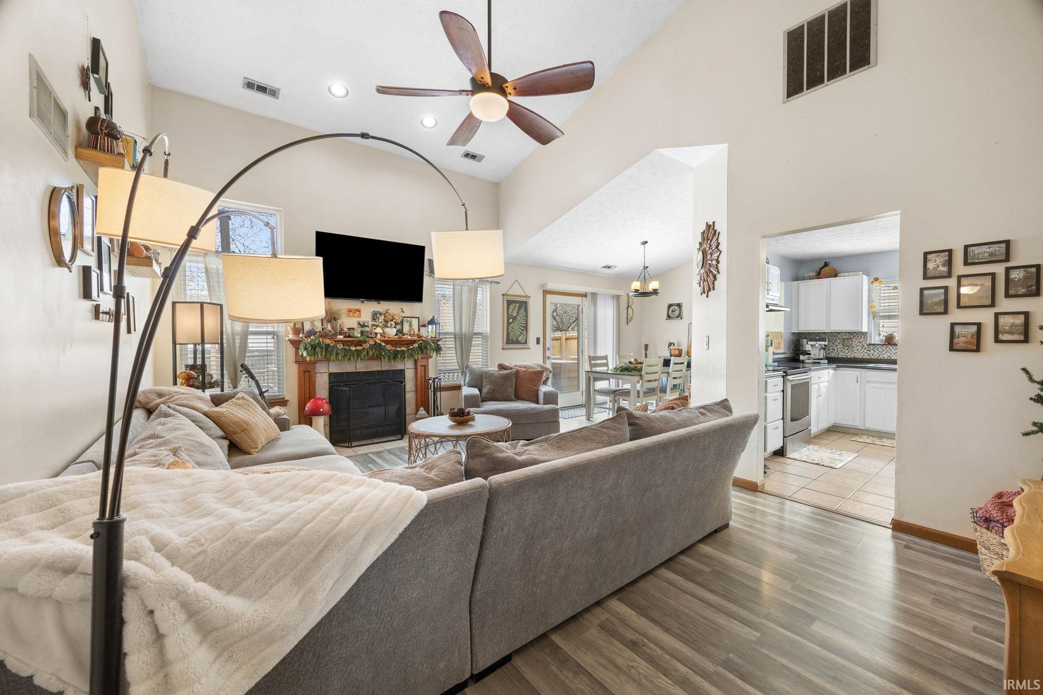 Welcome home to 318 Cromwell Court on Lafayette's south side, where comfort, care, and charm come together in all the right ways. This lovingly maintained home offers 4 bedrooms, 2.5 bathrooms, and just shy of 1,800 square feet of inviting living space designed for both everyday living and easy entertaining. Inside, you'll find large windows with an abundance of natural light, an inviting living room with a woodburning fireplace and soaring ceilings, a separate dining room, and additional seating space in the kitchen for casual meals or morning coffee. The main floor primary suite offers a peaceful retreat with an updated bath and walk-in closet. The other main floor bedroom also offers great flexibility and can easily double as a home office or hobby room, complete with a built-in desk. Washer and dryer are included, adding even more convenience. Upstairs you'll find 2 additional spacious bedrooms and another full bath! Thoughtful updates include a new furnace and central air in 2023, water heater in 2022, a beautiful new deck with built-in planter boxes in 2024, plus added pavers, a firepit, and new front and storm doors. Outside, the fenced backyard truly feels like a private oasis with space to relax, gather and enjoy, along with a handy storage shed for all those tools and gadgets. You can even light up the night with the peaceful hanging string lights! Set in a prime location, this home has been lovingly cared for and well maintained, and it shows in every space.