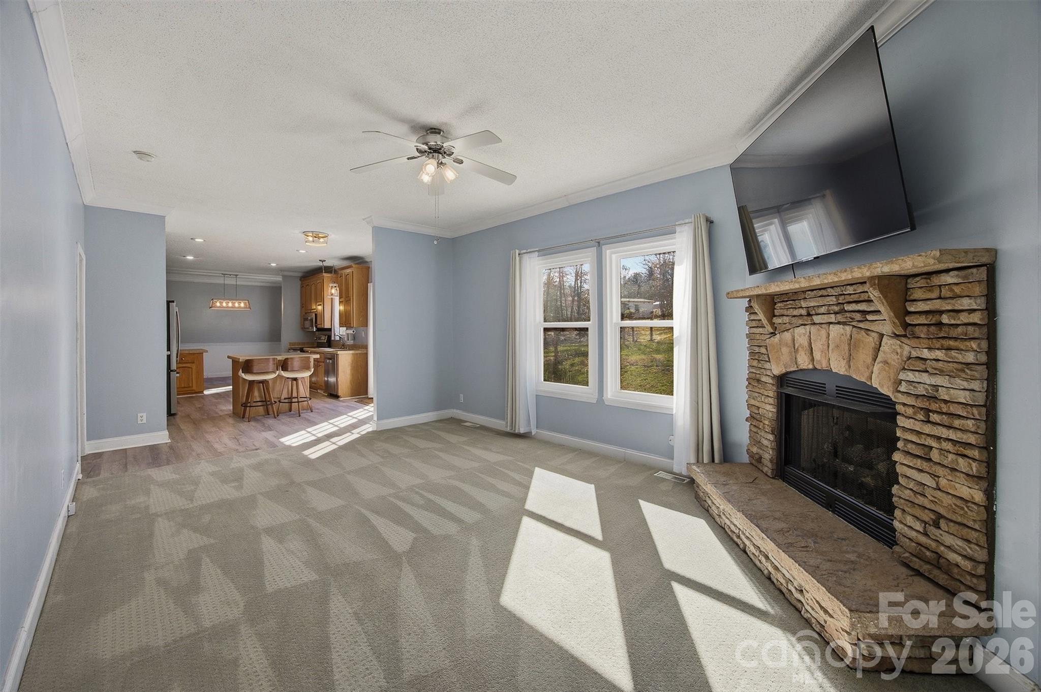 Charming single-story home on 1.7 acres at the end of a quiet cul-de-sac. This well maintained home features an open, split floor plan for comfortable and flexible living with four bedrooms and two full baths. Thoughtful spaces include a den, dining area, bright living room and conveniently located laundry room with exterior access. The primary suite, separated for privacy, offers two generous walk-in closets and a large bathroom with double vanity, soaking tub and separate shower. Cozy up to the fireplace or step outside to enjoy the oversized front porch or spacious back patio overlooking a partially fenced-in backyard and built in fire pit - perfect for children, pets or entertaining. Property highlights include secondary gravel driveway access and parking area, four storage sheds, abundant fruit and flowering plants throughout and mature plantings that, together with the untouched woodland borders, create exceptional privacy and a peaceful, natural backdrop. This home is ideal for those seeking single-level comfort, outdoor living, and storage options in a serene, private setting while remaining just under 10 miles away from downtown in both Morganton and Lenoir.