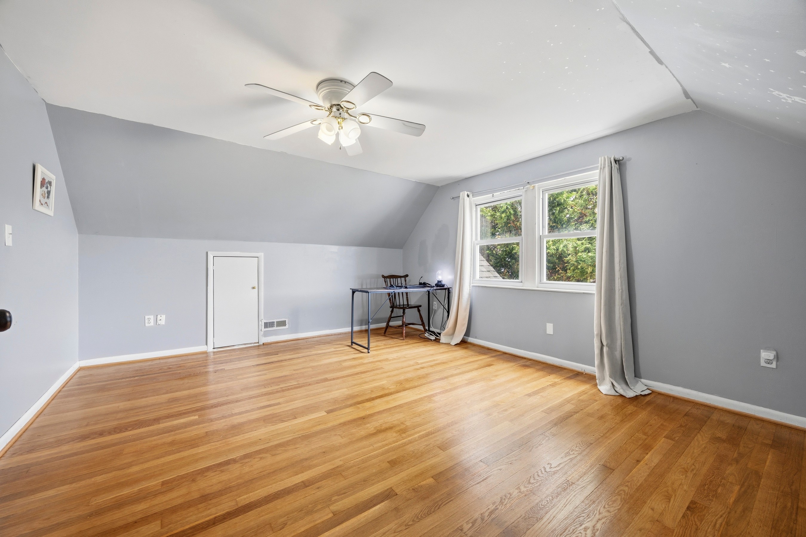 The main level includes two comfortable bedrooms and a renovated full bath. Upstairs, you'll find two generously sized bedrooms and an additional full bath, all enhanced by fresh paint and refinished hardwood flooring.