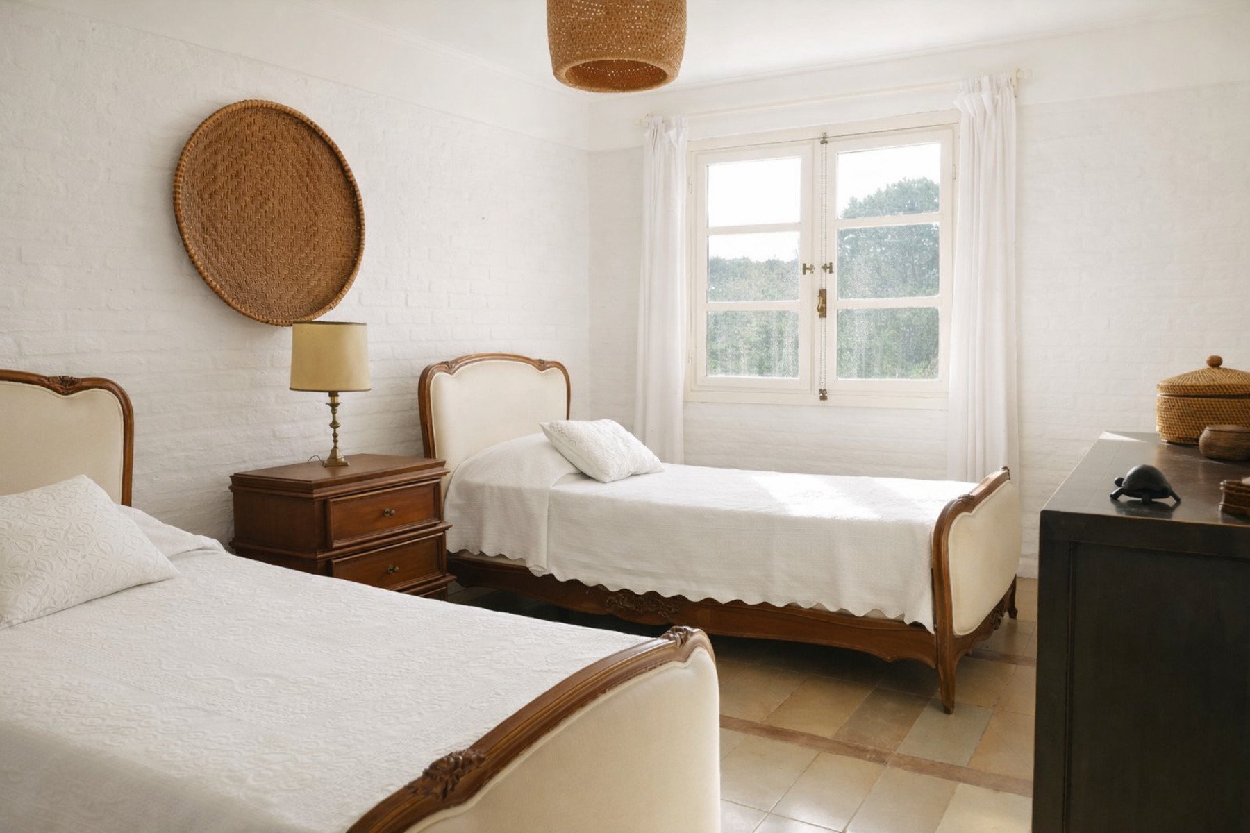We present Chalet Toledo, a real estate gem located in La Barra, just 300 meters from the sea and surrounded by all essential services. This charming house of 197 m² is built on a corner plot of 680 m², standing out for its traditional architecture with double brick walls and its distribution over two floors.The property features three bedrooms, all with en-suite bathrooms, in addition to a service room also with an en-suite, ideal for guests or personal use. Each of the openings is equipped with mosquito nets and shutters, ensuring comfort and security.Outside, owners will enjoy an extensive garden with a plant fence that provides maximum privacy, as well as a pleasant interior patio featuring a barbecue area surrounded by greenery and vines. A practical additional space behind the barbecue area houses an outdoor laundry room and a hidden clothesline. This wonderful property also includes an outdoor storage room and a garage.The internal layout on the ground floor includes a cozy entrance hall, a master suite with a wood stove and balcony, a spacious living-dining room also with a wood stove, and a kitchen with direct access to the interior patio. The service room can function as a fourth bedroom, offering versatility.On the upper floor, there are two spacious bedrooms with en-suite bathrooms, a spectacular 50 m² terrace over the living room and kitchen, and a generous 55 m² attic, providing additional space for storage or recreational activities.The chalet is delivered fully equipped, including a gas stove, appliances, crockery, Smart TV in each room, fiber optic internet connection and WIFI, and a sectorized alarm system with response, ensuring a comfortable and secure living experience. Don’t miss the opportunity to discover this exceptional property.