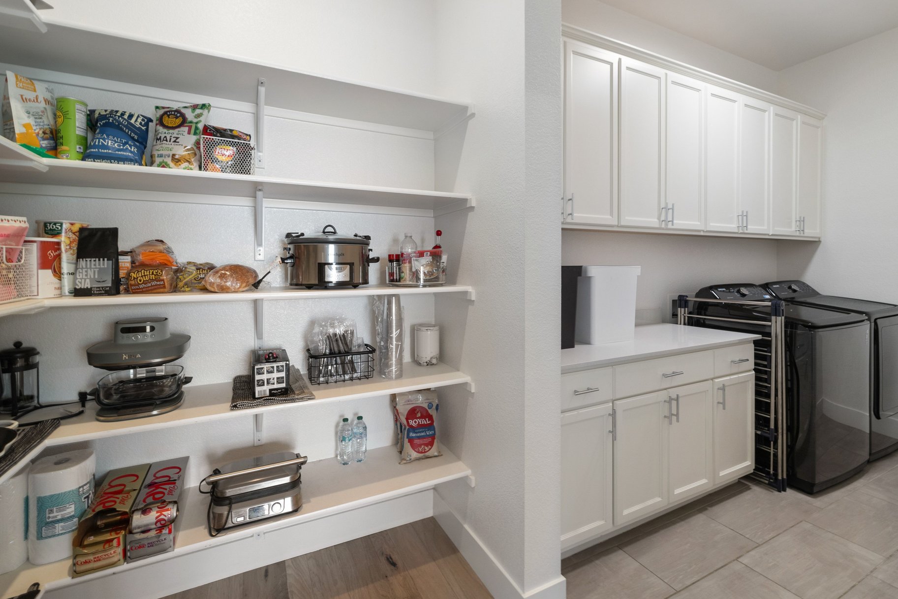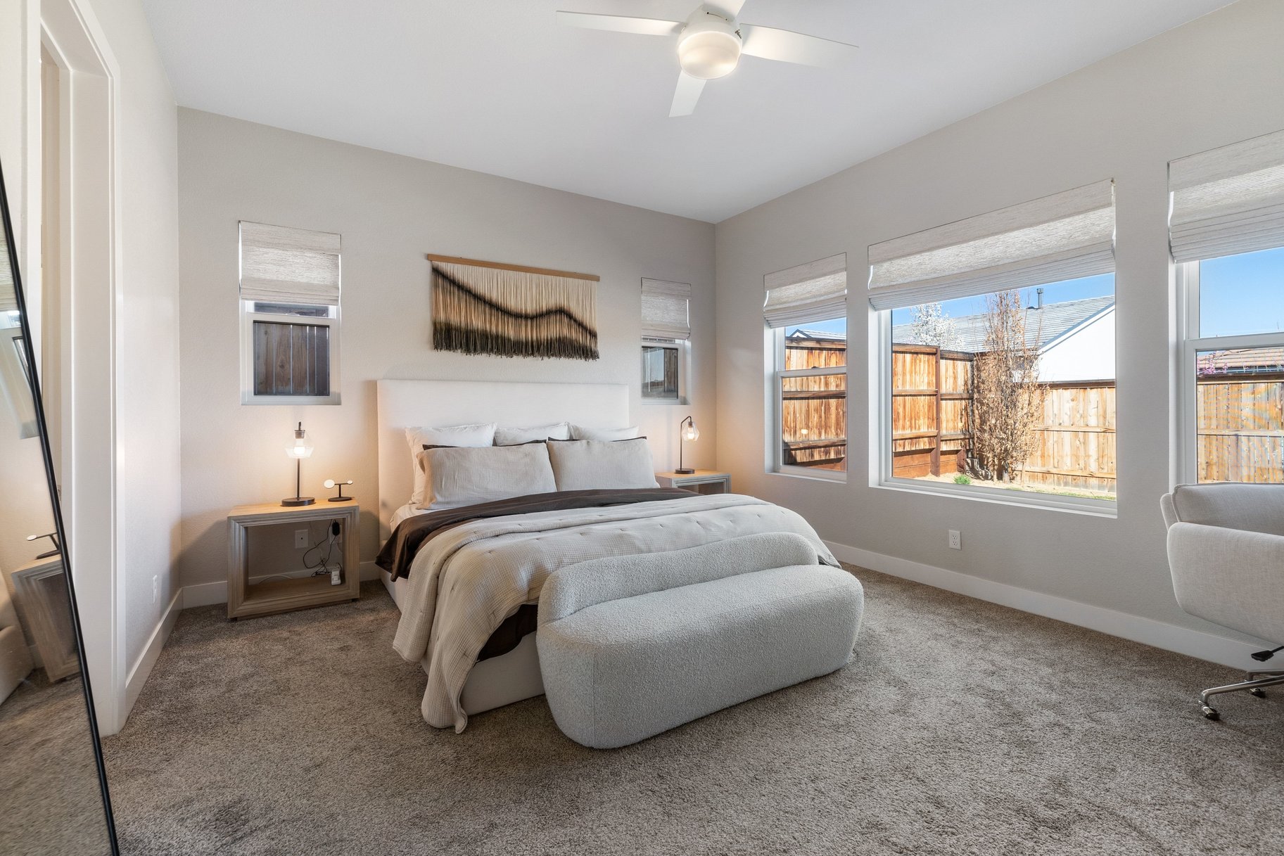 The spacious primary suite showcases tall ceilings and bathroom with dual vanities, freestanding soaking tub, and a zero-threshold walk-in shower. A versatile loft offers flexible space for a media room, office, or even a future conversion to an additional bedroom. Smart home features with Ring doorbell, keyless entry, Eero WiFi mesh system, and a smart panel ensure seamless connectivity. The finished 3-car garage includes EV charging capability plus additional storage racks.