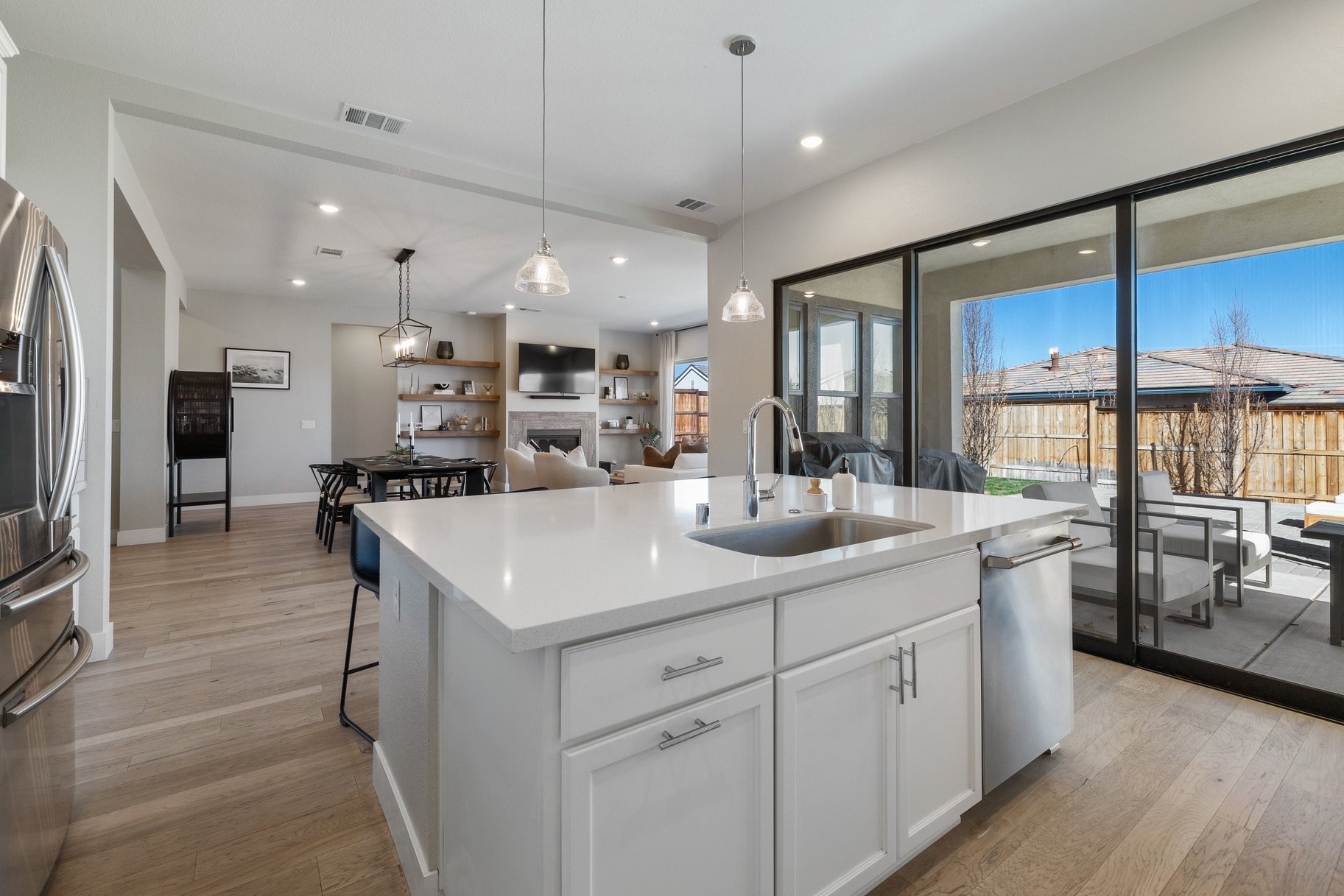 Located in a highly desirable gated enclave in Southwest Reno, this stunning 2019 contemporary craftsman home offers 3,008 square feet of thoughtfully designed living space with 3 bedrooms and 3.5 bathrooms. Natural light pours into the main living area where soaring ceilings and wide-plank wood flooring create an airy, modern feel. The open-concept layout seamlessly connects the family room, dining area, chef’s kitchen featuring pro-series appliances and sleek contemporary finishes with a sense of scale and warmth.