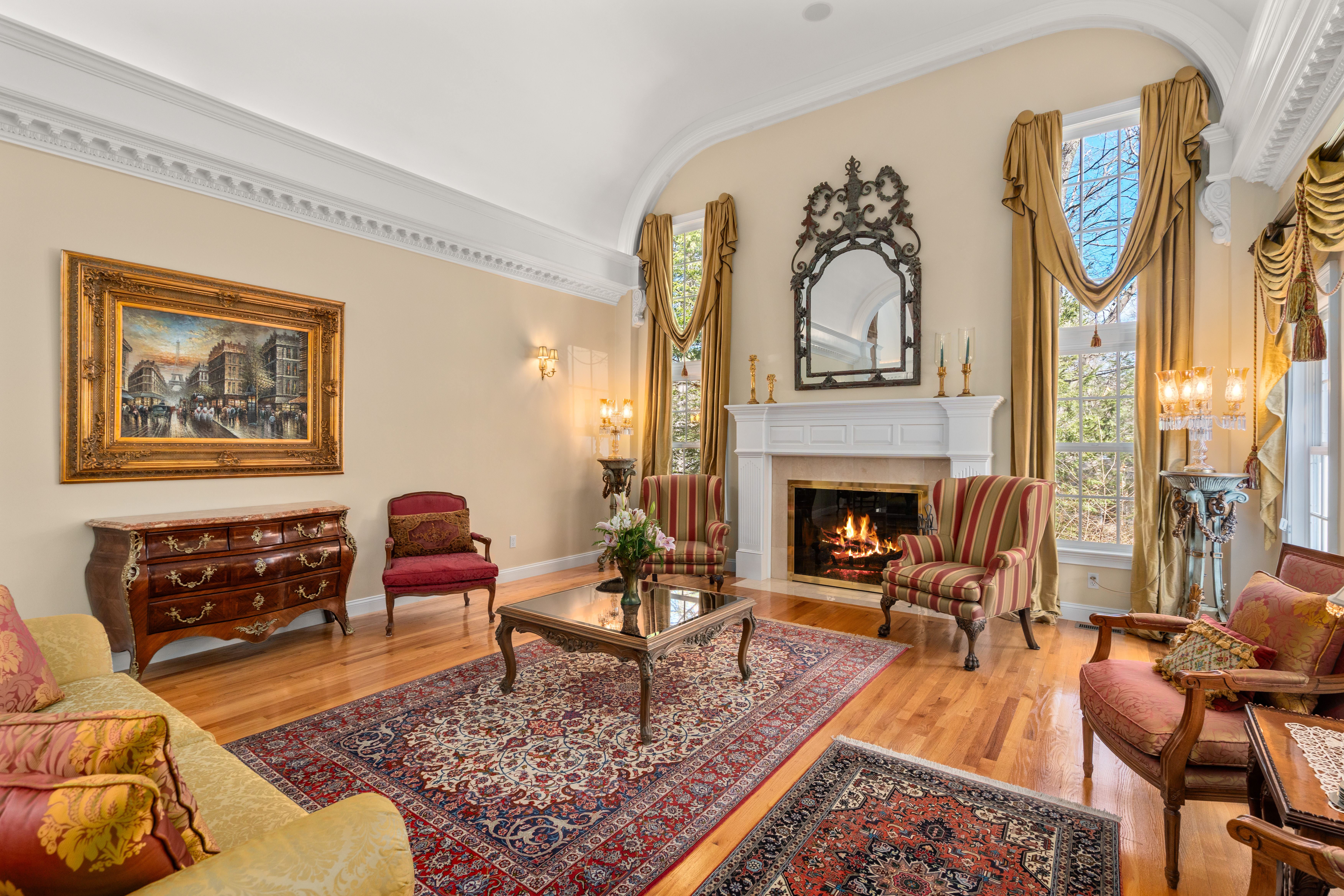 Located in one of Sudbury’s most coveted cul-de-sac neighborhoods, this magnificent French Manor estate offers over 8,000 square feet of exceptional quality and sophisticated design, showcasing exquisite architectural details throughout. Custom millwork, ornamental crown molding, and intricate ceiling details define the elegant interior, while manicured gardens frame views of the pool, spa, and cabana. The flexible floor plan offers the option for dual primary suites on the first and second floor, spacious bedrooms with en-suite baths, and 3 private home offices. Designed for both refined entertaining and comfortable living, the walk-out lower level features an au pair or in-law suite, wine cellar, home theater, wet bar with kitchenette, gym, sauna, steam shower, and bedroom with private bath. Meticulously maintained, with recent updates including newer roof, three newer HVAC systems, and fresh interior and exterior paint. Truly a timeless and gracious estate.