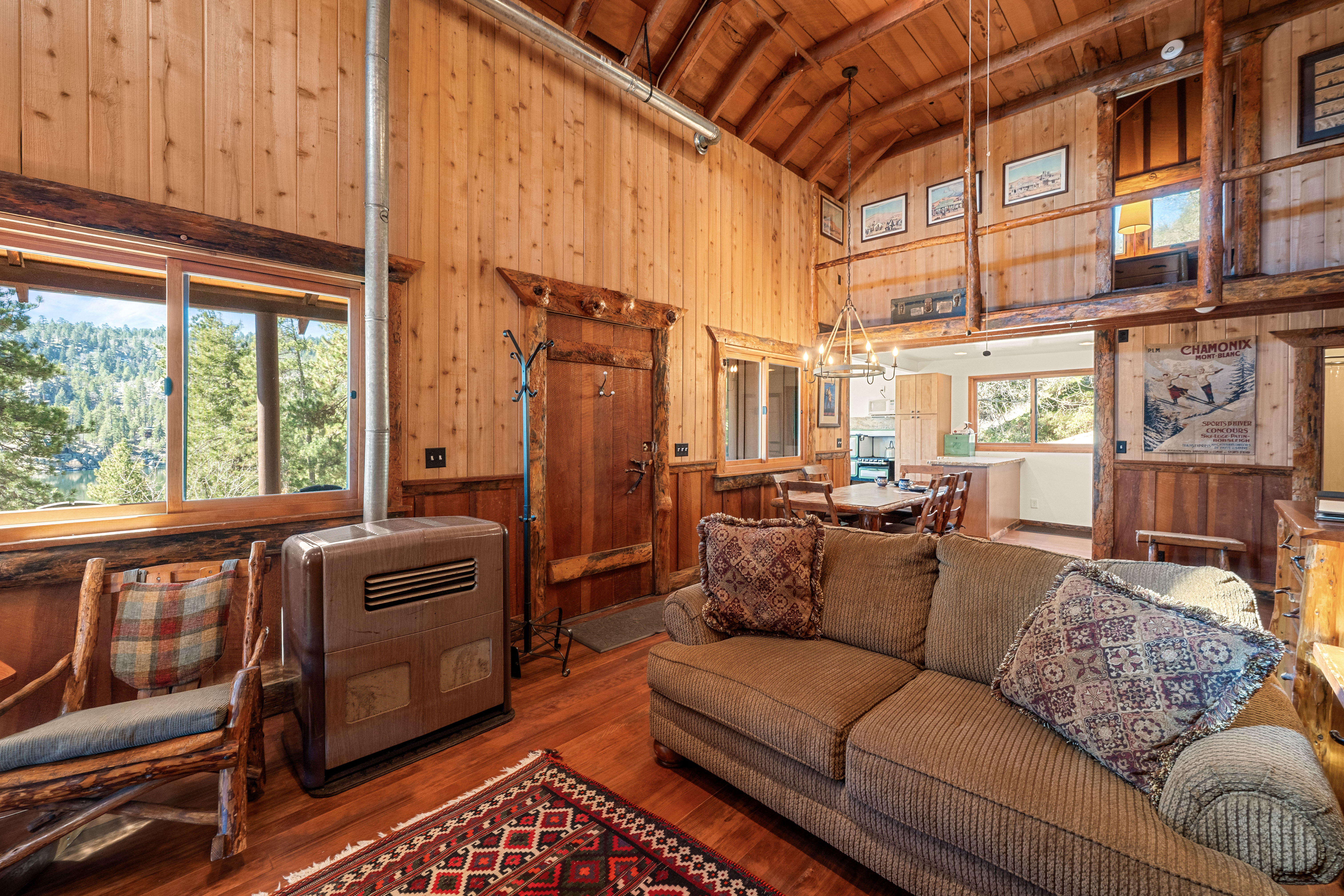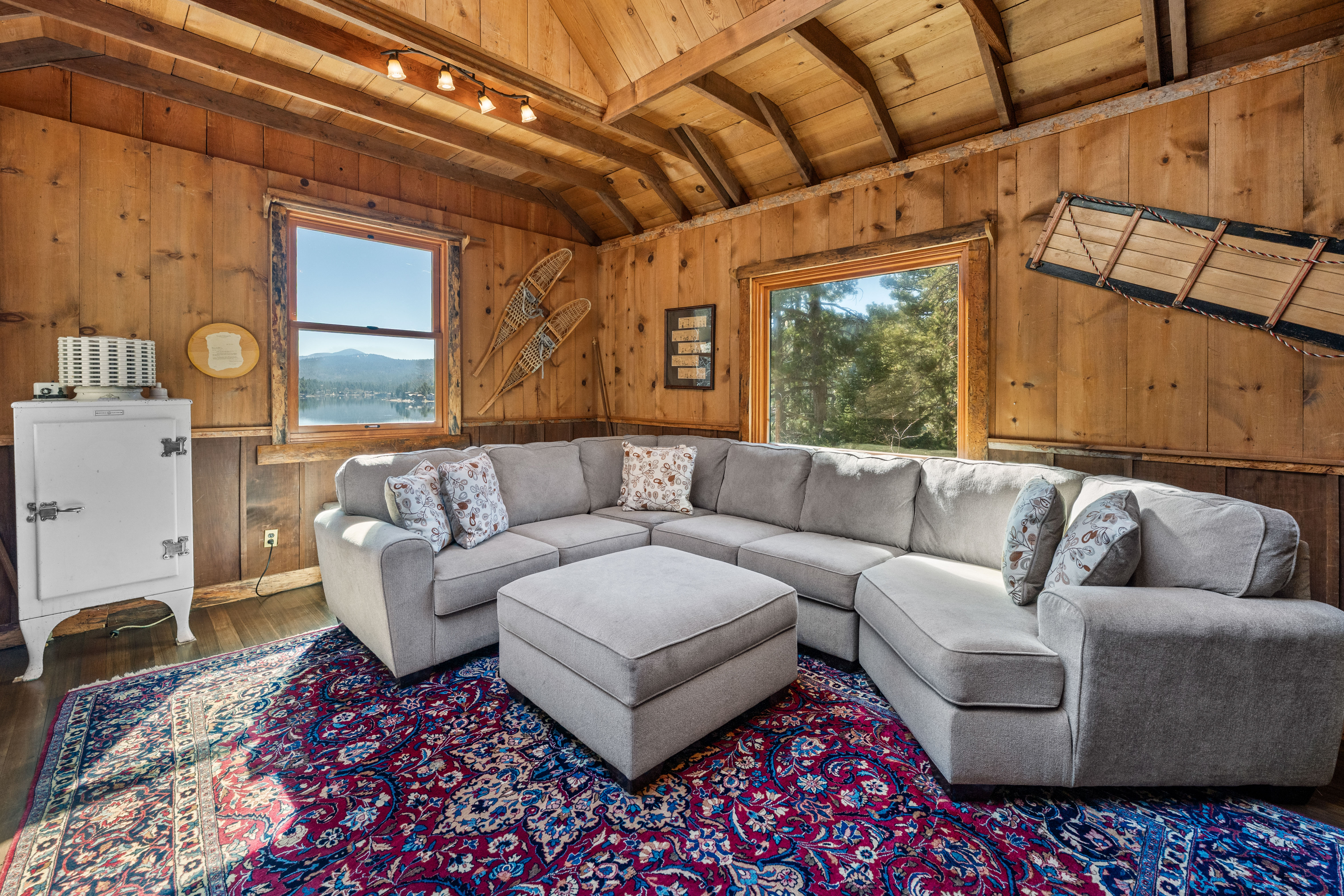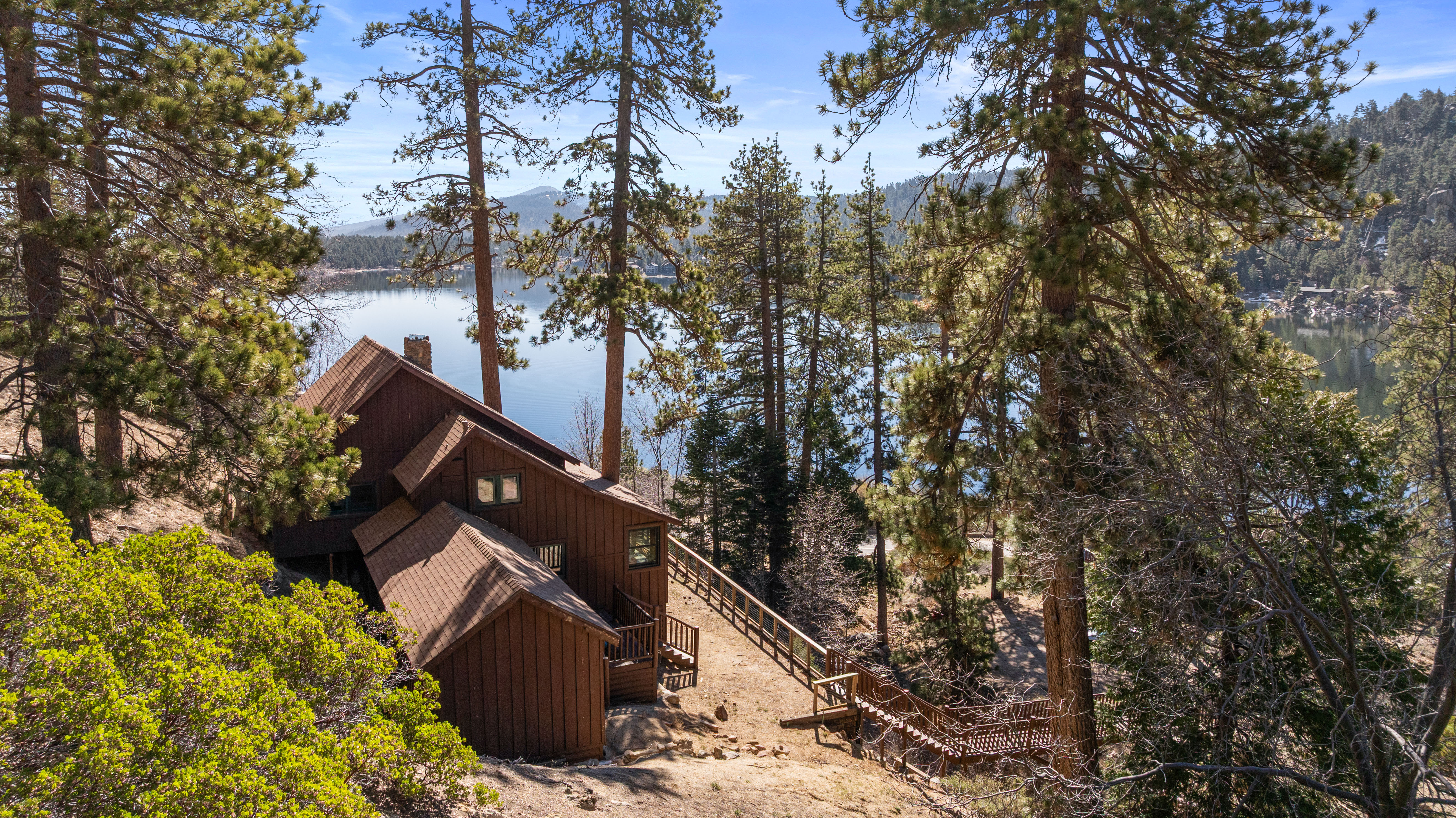 Life by the water offers stunning views of Big Bear Lake and the surrounding National Forest—it truly doesn't get better than this. This rare Recreation Residence in Big Bear Valley was once owned by artist and cartoonist Victor Clyde Forsythe (1885–1962), a close friend of Walt Disney. Built in the1920s, the cabin still holds original sketches and notes scattered throughout. The spacious family room believed to be Forsythe’s art studio, features a massive skylight and plentiful windows that bring the outdoors in. The front door opens to tall, vaulted ceilings in the large living room with a beautiful native rock fireplace and an open loft bedroom. Additionally, there are two bedrooms and a half bath on the second floor. A separate bunk room just outside the kitchen adds a private guest space with its own half bath and hookups for a stackable washer/dryer. Though updated for modern comfort, the cabin retains its rustic charm, with a kitchen boasting new cabinets, countertops, and plumbing, alongside a still-functional antique Wedgewood stove. A covered porch provides the perfect spot to relax and take in the water views right across the highway. A new roof was installed in 2024 and ample parking for 2 cars. The driveway can be plowed in winter, offering year-round access. Situated on the peaceful North Shore, it’s just 15 minutes from the Village and 2 miles from the quaint hamlet of Fawnskin. Ideal for a serene mountain escape or hosting visitors, the property offers seller financing with 50% down. As part of the USFS Recreation Residence Program, the land is federally owned and subject to certain restrictions, and short-term rentals are not permitted.
