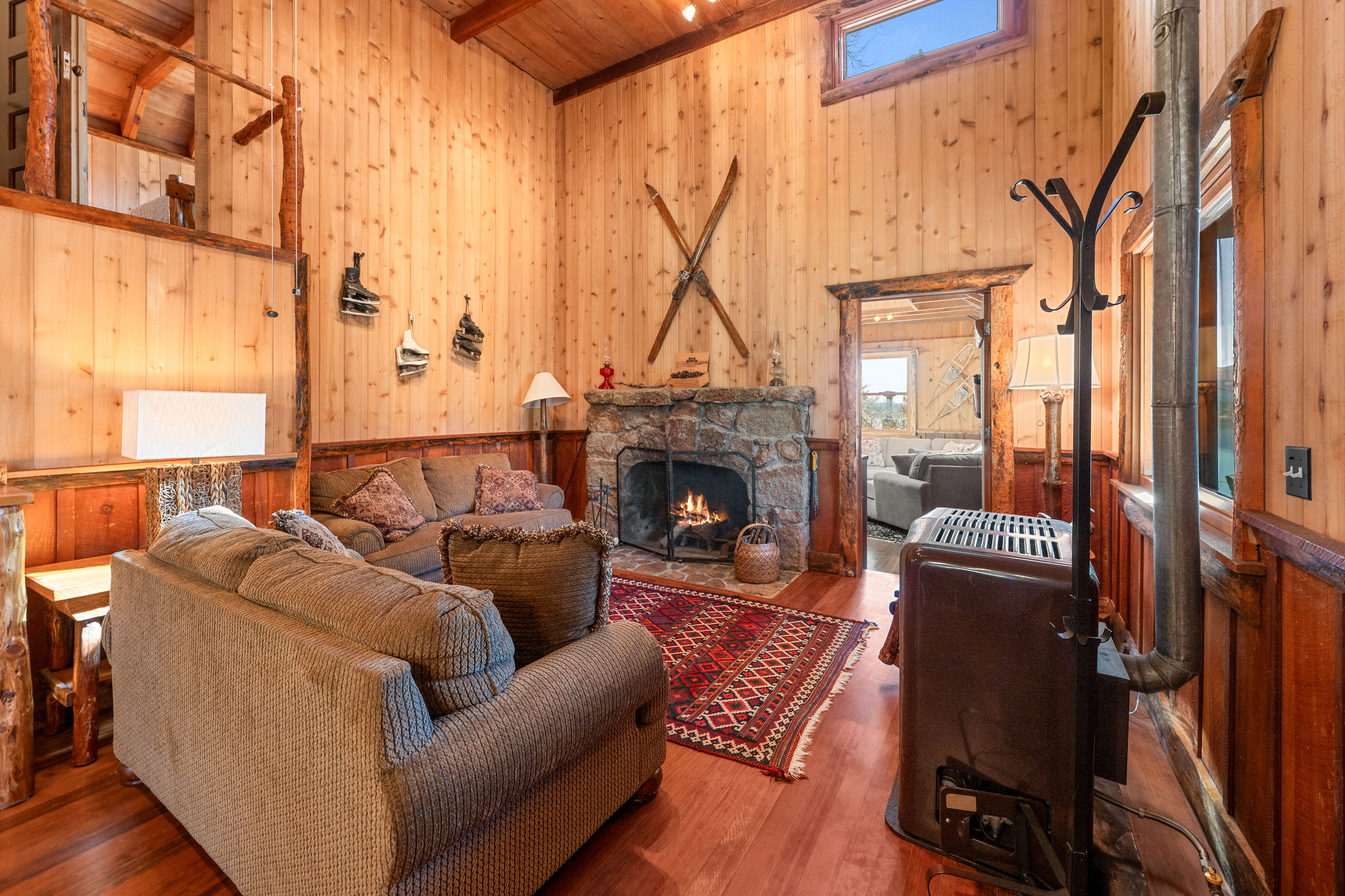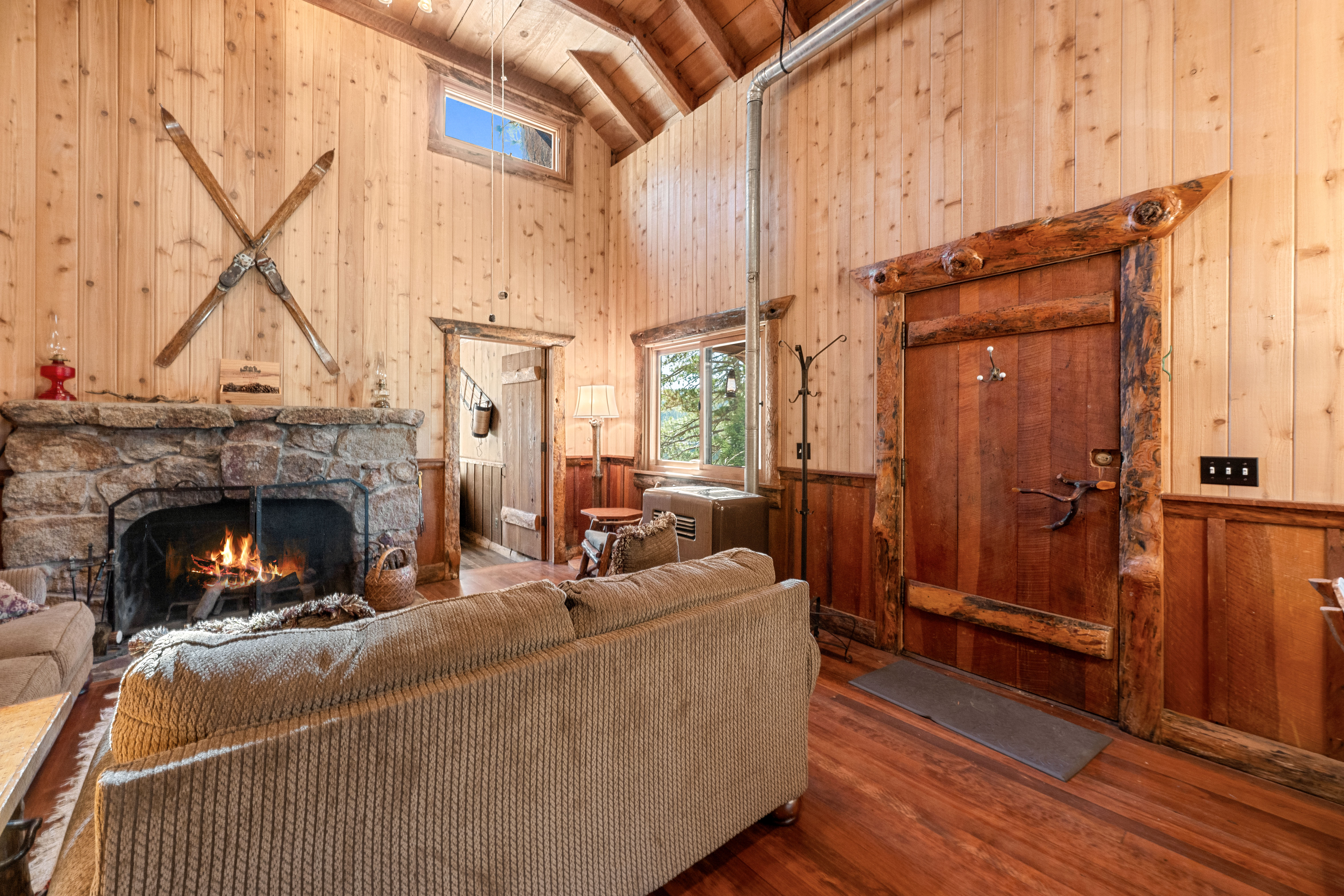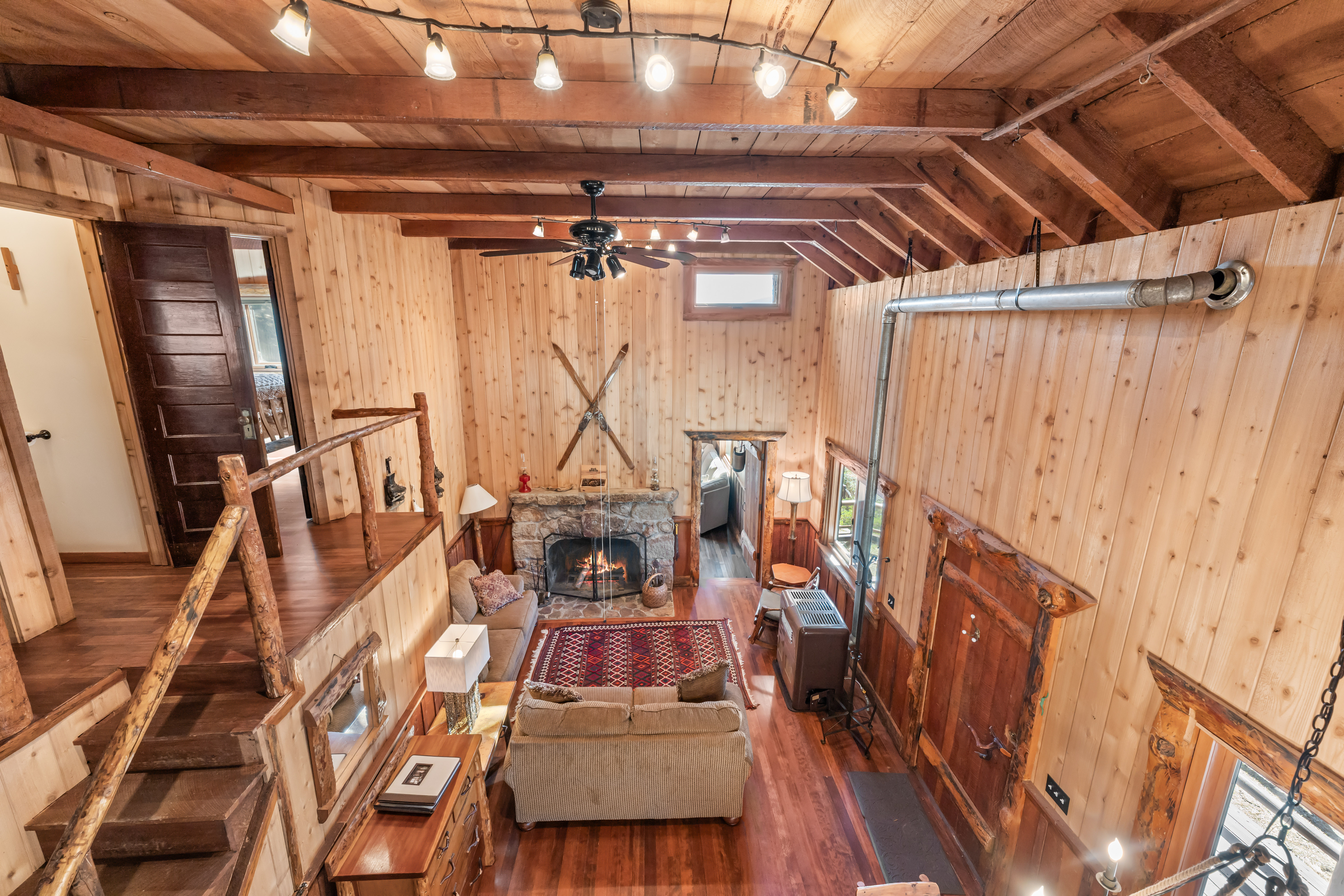 Life by the water offers stunning views of Big Bear Lake and the surrounding National Forest—it truly doesn't get better than this. This rare Recreation Residence in Big Bear Valley was once owned by artist and cartoonist Victor Clyde Forsythe (1885–1962), a close friend of Walt Disney. Built in the1920s, the cabin still holds original sketches and notes scattered throughout. The spacious family room believed to be Forsythe’s art studio, features a massive skylight and plentiful windows that bring the outdoors in. The front door opens to tall, vaulted ceilings in the large living room with a beautiful native rock fireplace and an open loft bedroom. Additionally, there are two bedrooms and a half bath on the second floor. A separate bunk room just outside the kitchen adds a private guest space with its own half bath and hookups for a stackable washer/dryer. Though updated for modern comfort, the cabin retains its rustic charm, with a kitchen boasting new cabinets, countertops, and plumbing, alongside a still-functional antique Wedgewood stove. A covered porch provides the perfect spot to relax and take in the water views right across the highway. A new roof was installed in 2024 and ample parking for 2 cars. The driveway can be plowed in winter, offering year-round access. Situated on the peaceful North Shore, it’s just 15 minutes from the Village and 2 miles from the quaint hamlet of Fawnskin. Ideal for a serene mountain escape or hosting visitors, the property offers seller financing with 50% down. As part of the USFS Recreation Residence Program, the land is federally owned and subject to certain restrictions, and short-term rentals are not permitted.