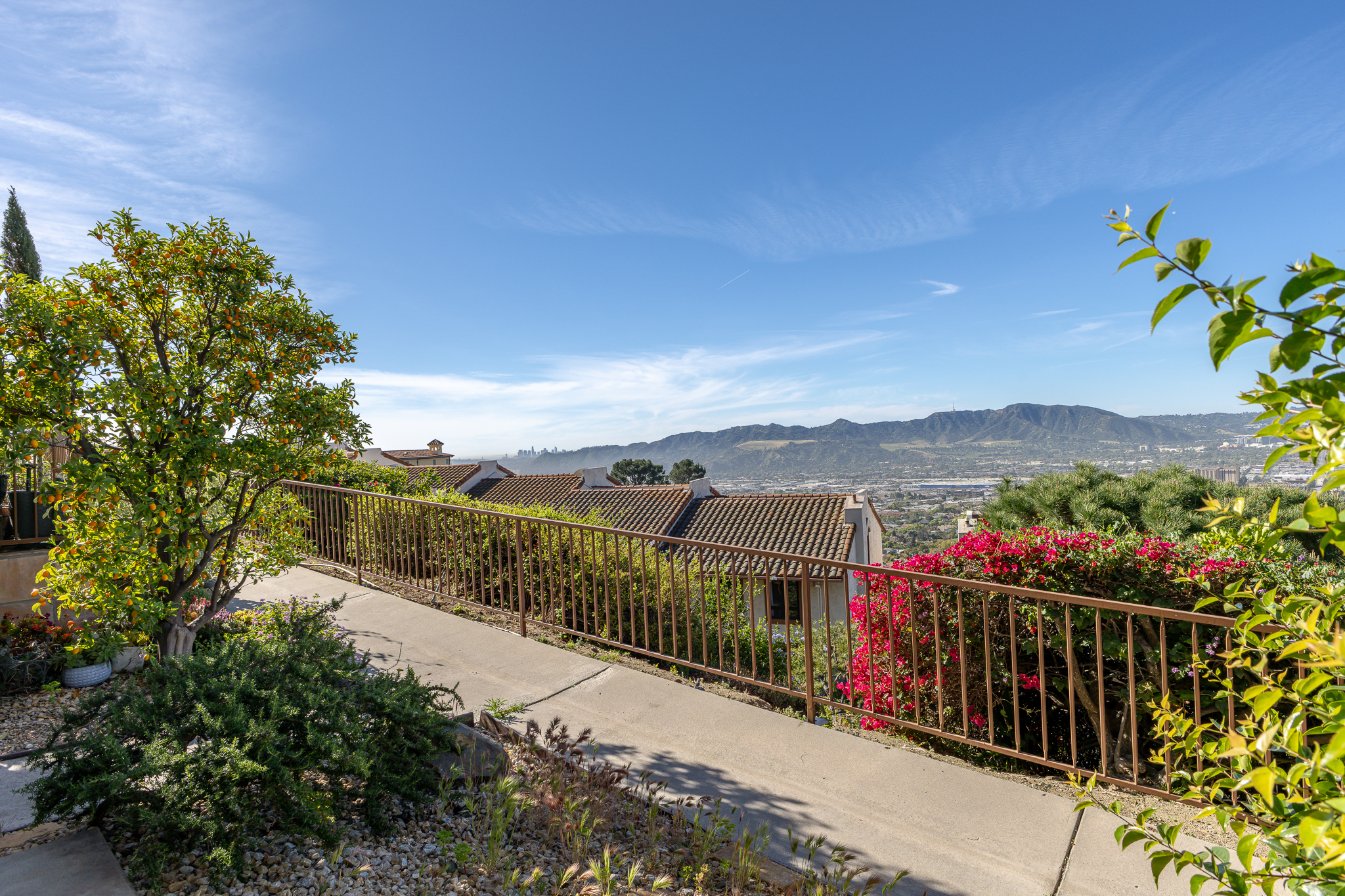 Welcome home to this striking townhome perched on the mountainside above Burbank. From your living room, front porch, and primary bedroom you'll be greeted with sweeping views from downtown Los Angeles along Griffith Park, up through the San Fernando Valley unobstructed. This 2 bedroom, 2 and a half bath unit has updated appliances, including in unit laundry, ample storage in it's oversized dedicated laundry room with floor to ceiling cabinets, bedrooms separated by a landing, with both units boasting an en suite bathroom. Private two car parking garage with plenty of guest parking on site. This great unit is move in ready!
