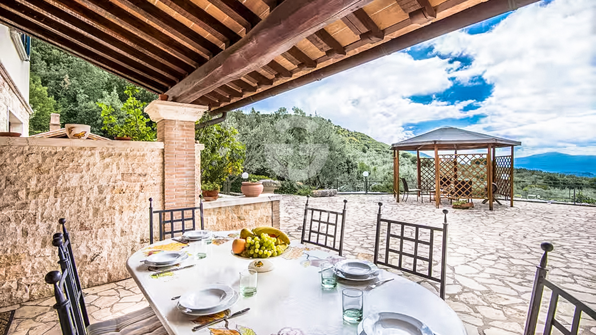Stunning panoramic villa located near the charming village of Guardea, in a dominant and private position, immersed in the peaceful Umbrian countryside among rolling hills, olive groves, and unspoiled nature. The excellent exposure ensures natural light throughout the day and offers enchanting open views over the surrounding landscape, with sunsets of rare beauty.The property is arranged over two main levels in addition to a distinctive turret, which gives the villa architectural charm and uniqueness.On the basement level, perfectly habitable and bright thanks to openings onto the greenery, there is a spacious open-plan area with kitchen and living room, ideal for convivial moments and everyday living. This floor is completed by two bedrooms, a bathroom, and a convenient hallway.The ground floor, accessible both via an internal staircase and through an independent external entrance, hosts a large and particularly bright reception hall, as well as two bedrooms, each with its own en suite bathroom, designed to ensure comfort and privacy.The picturesque turret accommodates the master suite, also featuring an en suite bathroom, an intimate and private retreat enjoying privileged views over the surrounding panorama.Externally, the villa is surrounded by a private park of approximately 3,800 sqm, well maintained and enriched with olive trees, ensuring privacy and direct contact with nature. Within the garden, a scenic bean-shaped swimming pool of about 72 sqm blends harmoniously into the setting, perfect for relaxing on summer days while enjoying the tranquility and open views over the hills.An ideal property both as a primary residence and as a charming holiday home, combining elegance, comfort, and the authentic character of the Umbrian landscape.