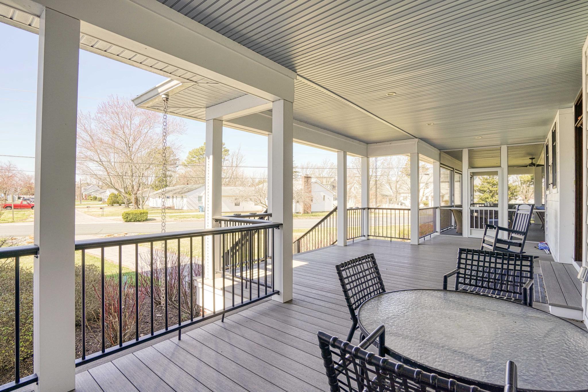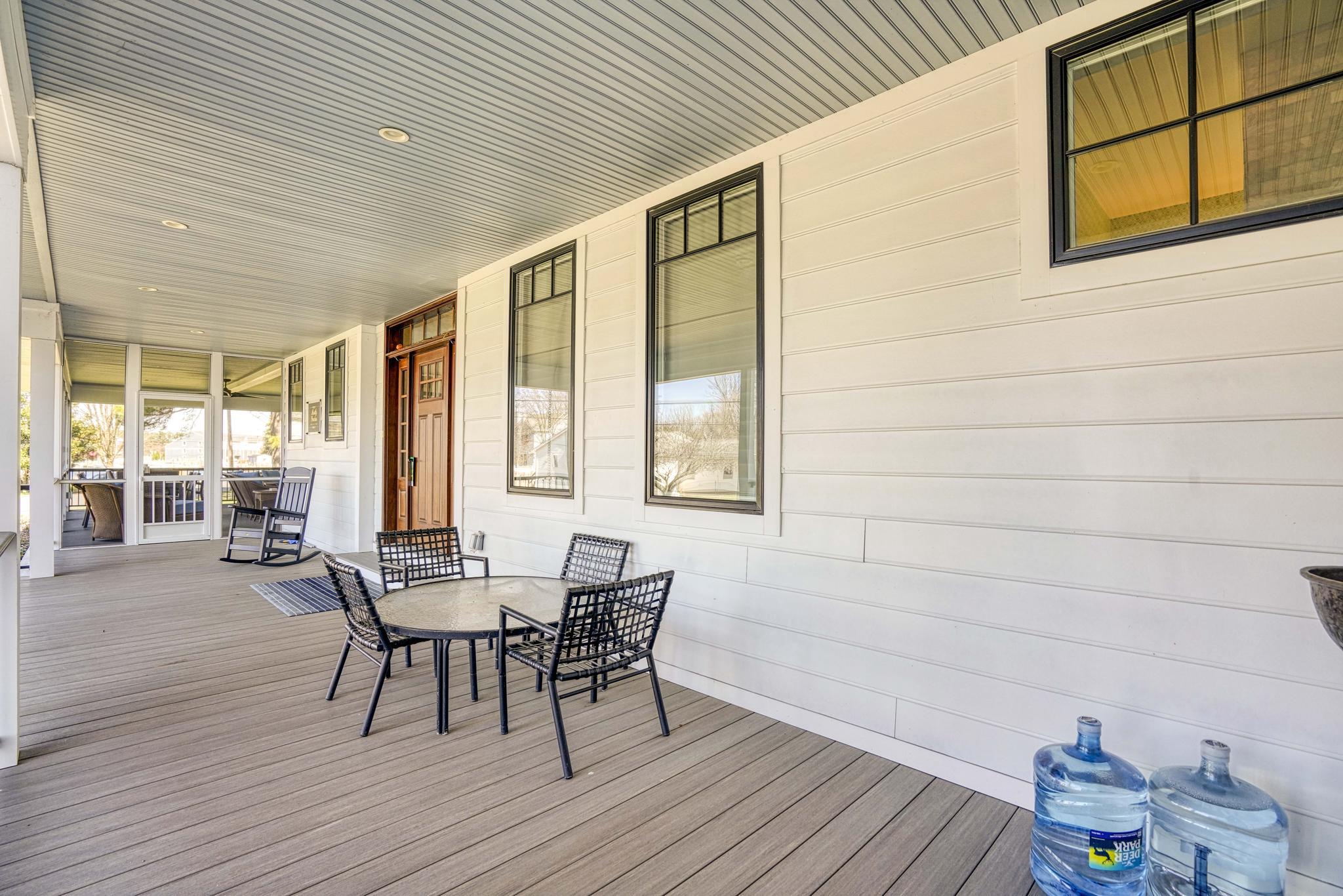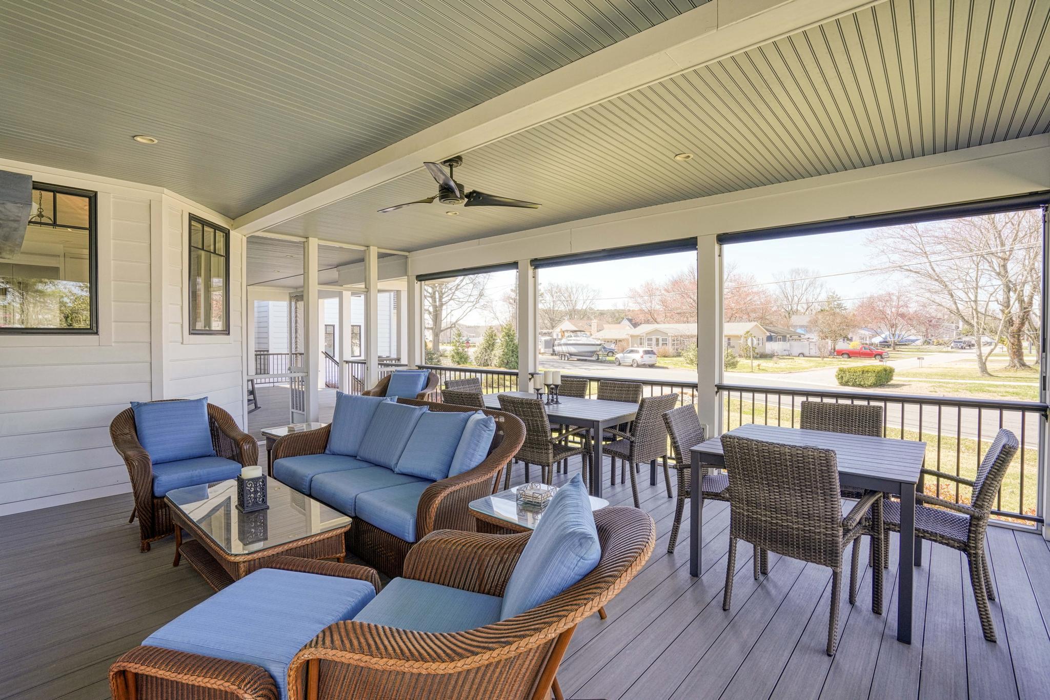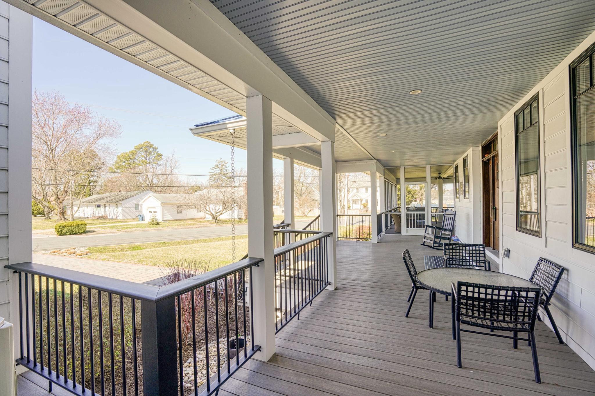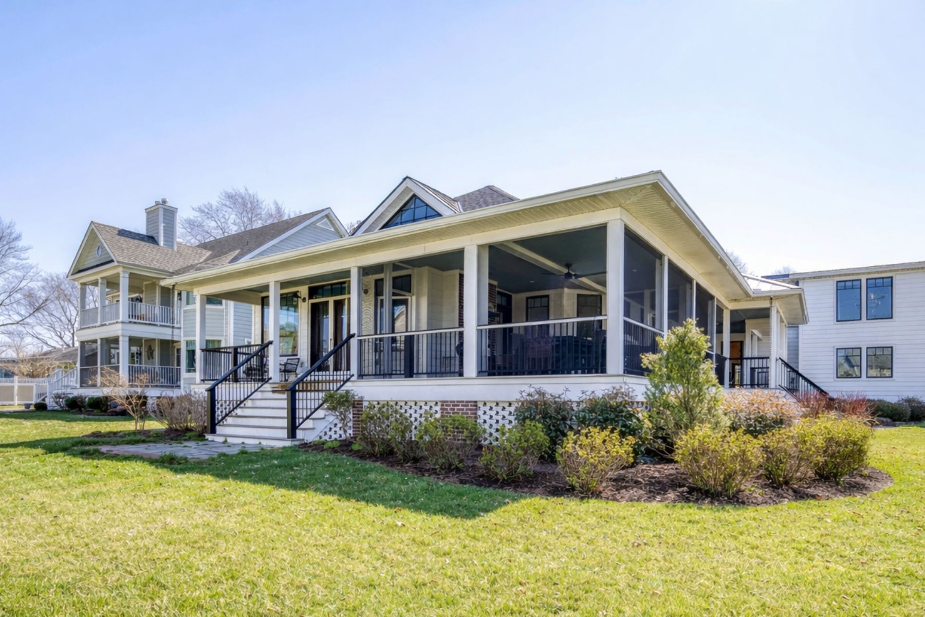 Welcome to "Porches" an exceptional coastal retreat with captivating views of the harbor, perfectly situated on a spacious .41 acre corner lot just around the corner from the shops and restaurants of St. Michaels. Built in 2018 with virtually maintenance-free construction, this beautifully designed home offers the ideal blend of comfort, style, and convenience in a rare St. Michaels setting.Inside the floor plan is filled with an abundance of natural light and enhanced by soaring cathedral ceilings, creating an airy and inviting atmosphere ideal for both every day living and perfect for entertaining. The main living area incorporates the living, dining and kitchen and offers easy access to the extensive porches the home features, including the screened-in porch with a gas fireplace and views of the harbor. In the great room there is also a "hidden" pantry along the dining area wall with plenty of shelving and storage. Custom built-in bookcases line the living area wall to the left of the propane fireplace which incorporates a built-in 90 lb per day nugget ice-maker. The gourmet kitchen is centered around a large island and features SS Thermador appliances including a duel fuel range with a six burner gas cooktop and electric oven, and an under counter wine fridge and under counter beverage fridge in the island. The contemporary design features the primary suite, 2nd bedroom, office/den, full bath and utility closet all on the main level. A standout out feature of this property is the 2nd level private guest suite, which is a licensed income-producing vacation rental, offering flexibility for guest or the opportunity for supplemental income. This private enclave includes a small sitting area, private bath and kitchenette with under counter refrigerator drawer, under counter freezer drawer, Keurig coffee maker, counter top microwave, and free standing shelves. The property also includes an attached 2 car garage, fire pit, raised garden beds with drip irrigation, and full irrigation system in the yard plus an oversized attached 2 car garage.With its desirable location close to all St. Michaels has to offer, exceptional amenities, and low-maintenance design, this is a rare opportunity to own one of the town's newer build homes with water views and income producing opportunity.