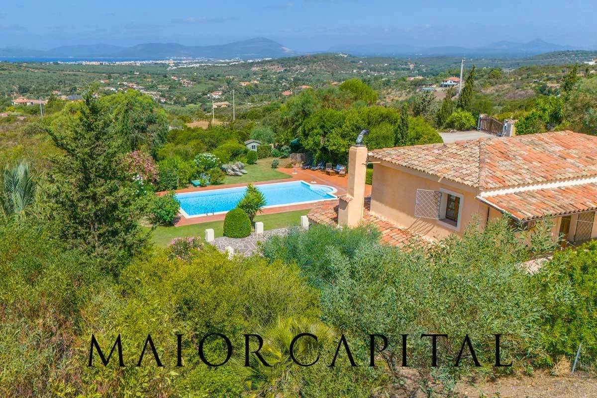 Alghero | Wonderful villa immersed in the green countryside of AlgheroDiscover your private oasis in the Alghero countryside: an exclusive villa with swimming pool, immersed in the unspoilt nature of Sardinia. Located at the entrance to Alghero, just 10 minutes from the centre and 14 km from the airport, this extraordinary property offers panoramic views over the green countryside and the crystal clear sea. The beautiful beaches of Lido, Maria Pia, Le Bombarde and The Beach of Torre del Lazzaretto are easily reachable by car.Surrounded by indigenous plants and far from the hustle and bustle of the city, the villa boasts a large private park and generous dimensions. The Mediterranean style, enriched with Sardinian details, lends elegance to the residence. The outdoor area, with swimming pool and sunbathing area, is ideal for enjoying the serene climate. Internally, a large living room and an eat-in kitchen create a bright and convivial atmosphere. With bedrooms with separate entrances and private bathrooms, this villa is also suitable as a luxurious accommodation facility, offering an extraordinary investment in the tourism market. The exclusive villa is structured on two floors and is composed as follows:Semi-basement floor· Veranda· Entrance· Living room· Eat-in kitchen· Hallway· Two bedrooms with en suite bathroom· Guest bathroomGround Floor· Terrace· Three bedrooms with en suite bathroom· Studio or additional bedroomFeatures:· Private garden· Swimming pool· Air conditioning hot/cold· Diesel-oil boiler for heating radiators· 80 m well · Imhoff tank for sewage· Solar panels for hot water with 300 l tank · Electrical system 11 kw Why buy it?#1 Strategic location#2 Proximity to beaches#3 Space and privacy#4 Elegant design#5 Investment opportunity #6 Total immersion in natureMaior Capital is the Real Estate Group of reference for the purchase and sale of property in Sardinia, offering the widest selection of luxury properties, charming homes and nature in a single collection. Our team of real estate experts offers a tailor-made and impeccable service, thanks to their deep knowledge of the Sardinian territory and proven professionalism. As an exclusive member for Sardinia of important global networks such as Luxury Portfolio International, Leading Real Estate and Italian Network Realty, we guarantee a high-level brokerage experience and maximum satisfaction for every client.
