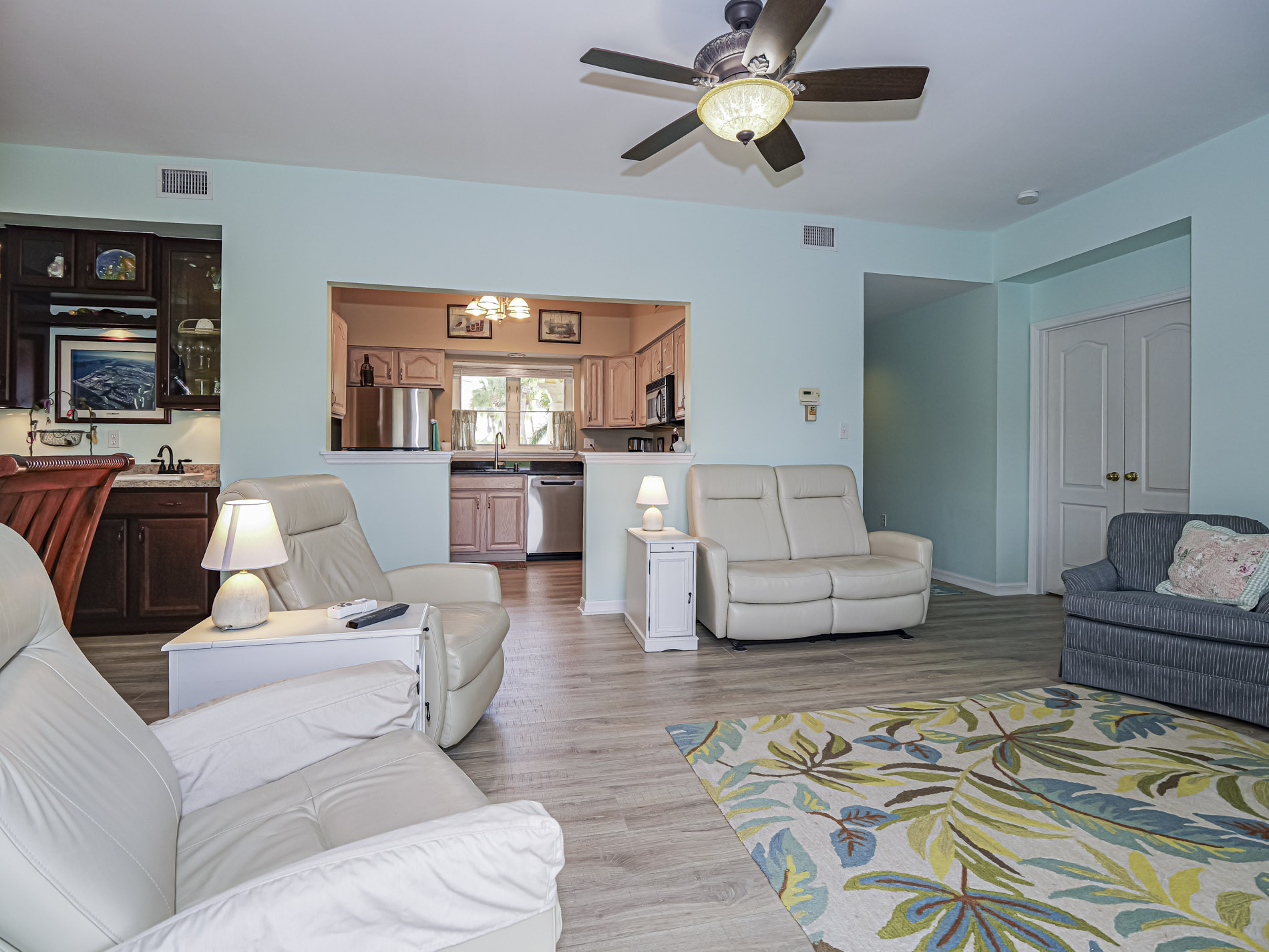 Resort living at its best! 2-bedroom, 2 bath furnished unit has been updated throughout. Oak laminate flooring, no carpets, in all living areas, new bathroom vanities, quartz countertops, huge master shower, and cook's kitchen with pantry. Split bedrooms, large walk-in closet in master bedroom and golf course views. Close to community pool, clubhouse and bike, jog, nature trail. Short drive to Ocean Drive shoppes, restaurants, beach and Riverside Theater.