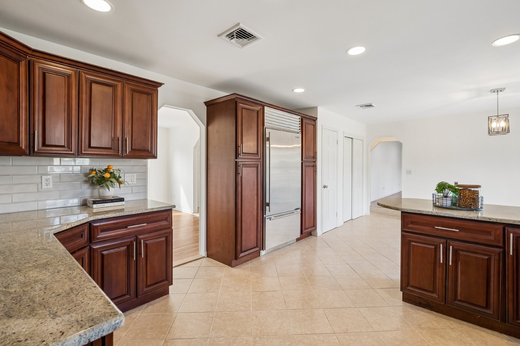 Experience refined living in this move-in ready Colonial, perfectly situated in Livingston's sought-after Forest Park neighborhood. Featuring four spacious bedrooms and two full and one half baths, this beautifully maintained home showcases gleaming hardwood floors, tasteful upgrades, a full finished basement, and sun-drenched interiors throughout. The gourmet kitchen is a chef's dream, complete with a separate breakfast area, granite countertops, a stylish new backsplash, and premium Sub-Zero and Viking appliances. The inviting layout flows seamlessly into the living and family spaces, ideal for both everyday living and entertaining. Step outside to an expansive deck off the family room, where serene natural surroundings create the perfect setting for relaxing or hosting guests. Additional highlights include a two-car garage and a convenient location close to top-rated schools, shopping, dining, and direct NYC transportation.