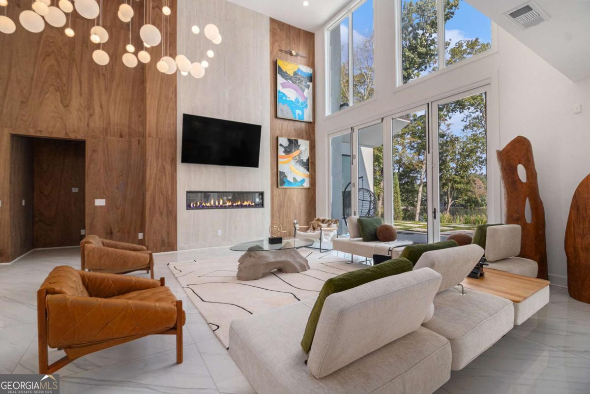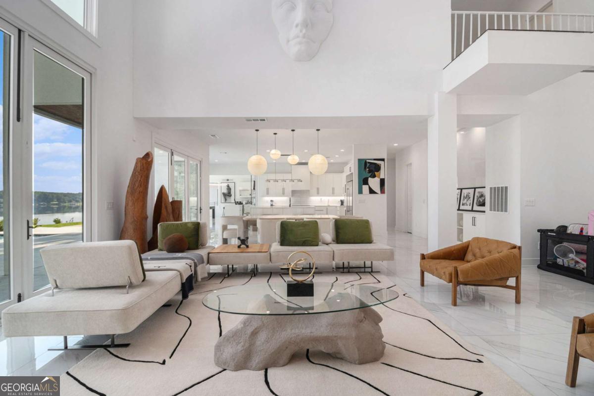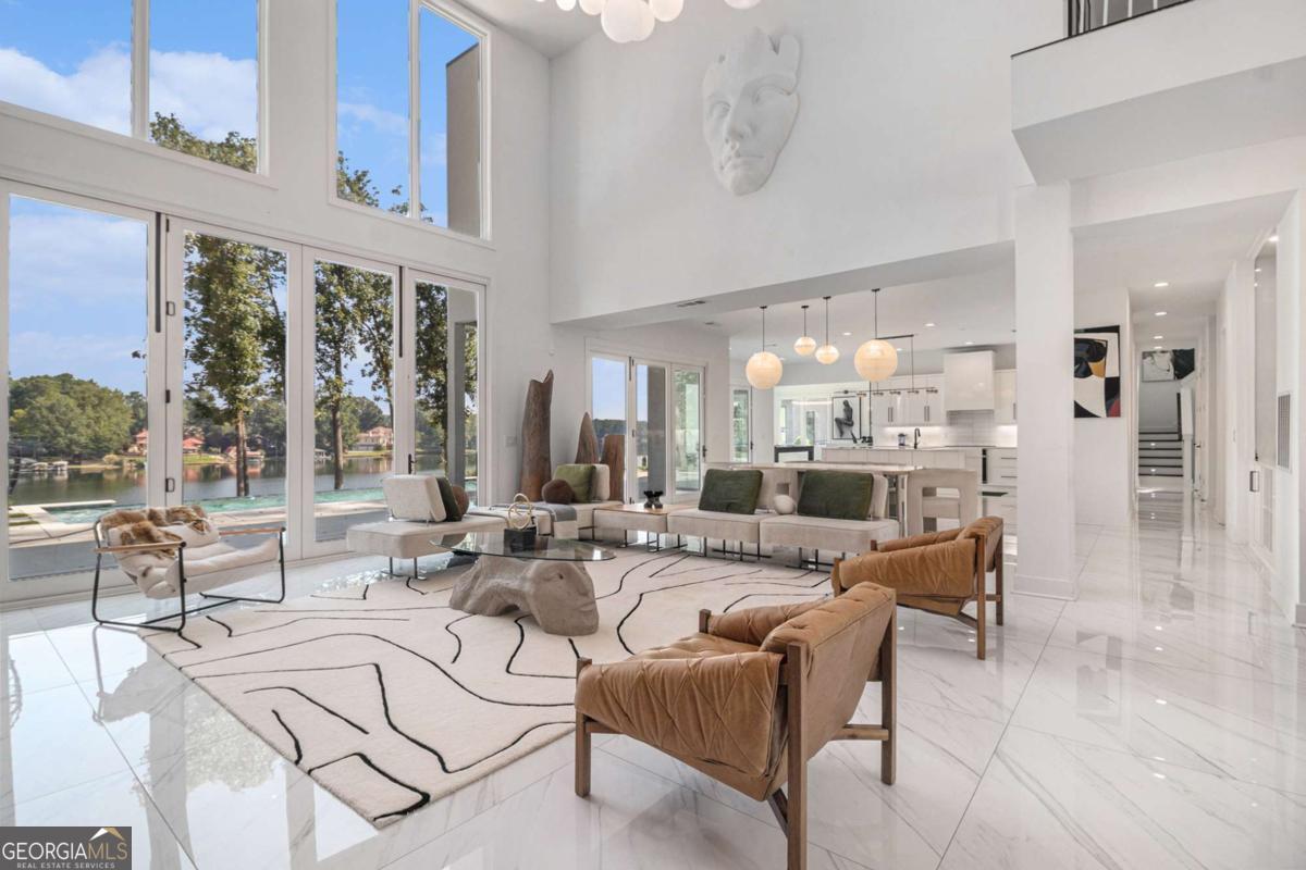 Experience the pinnacle of lakeside luxury at 2730 Emerald Drive, an extraordinary modern-contemporary estate nestled in the prestigious Lake Spivey community. This one-of-a-kind, privately gated masterpiece seamlessly blends striking architectural design with resort-style living, offering an unparalleled lifestyle on the water. Boasting 7 bedrooms and 8 bathrooms, the home is centered around a breathtaking two-story great room, where soaring ceilings and dramatic floor-to-ceiling windows flood the space with natural light while framing stunning panoramic lake views. The open-concept layout creates an effortless flow, perfect for both intimate living and grand-scale entertaining. Sleek white polished tile flooring runs throughout, enhancing the home's modern elegance. The gourmet kitchen is a true showpiece, featuring stainless steel appliances, chic custom cabinetry, and an oversized designer island that commands attention, ideal for culinary creations and social gatherings alike. Curated designer lighting adds sophistication and warmth to every space. The main-level primary suite is a private sanctuary, complete with soaring ceilings, serene lake views, and a spa-inspired bathroom featuring dual vanities, a soaking tub, and two expansive custom walk-in closets. An elevator-ready hoistway offers future convenience and accessibility. A guest suite with a full bath is also thoughtfully located on the main floor. Upstairs, each additional bedroom includes its own en-suite bath and direct access to expansive front and rear balconies, perfect for enjoying peaceful mornings or sunset views over the lake. Set on over an acre, this estate delivers the ultimate outdoor experience with a stunning infinity pool, a 3-car garage, and direct lake access for boating and recreation. Beyond its beauty, the property presents a rare investment opportunity in a short- and long-term rental-friendly community, attracting high-end guests and discerning investors alike. Ideally located just 30 minutes from Downtown Atlanta and Hartsfield-Jackson Atlanta International Airport, with convenient access to premier shopping, dining, and entertainment, this exceptional residence offers both seclusion and connectivity. This is more than a home, it's a statement. Schedule your private tour today and experience the unmatched luxury of Lake Spivey living.