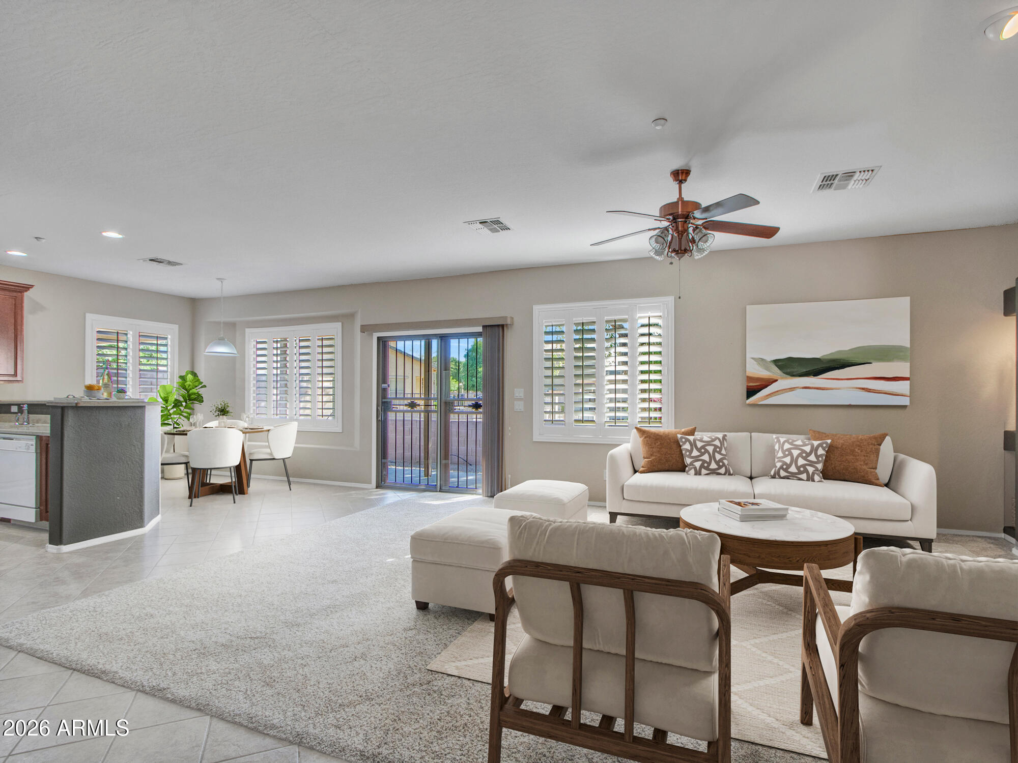 Welcome to this beautiful 4-bed, 2-bath home in the prestigious gated community of Running Horse at Arrowhead. Built by Keystone Homes, this meticulously maintained 1,713 sq. ft. residence offers the ultimate low-maintenance lifestyle, with the HOA providing front yard landscaping. The primary suite is a true retreat, featuring a private ensuite with a shower and a relaxing walk-in tub. Step outside to a private backyard boasting a beautiful view of the lush community common area. Residents enjoy premium amenities including a heated pool and spa, playground, and BBQ area. Located in the top-rated Peoria Unified School District and minutes from the Loop 101, shopping, and dining at Arrowhead, this home perfectly blends luxury and convenience and awaits your visit!