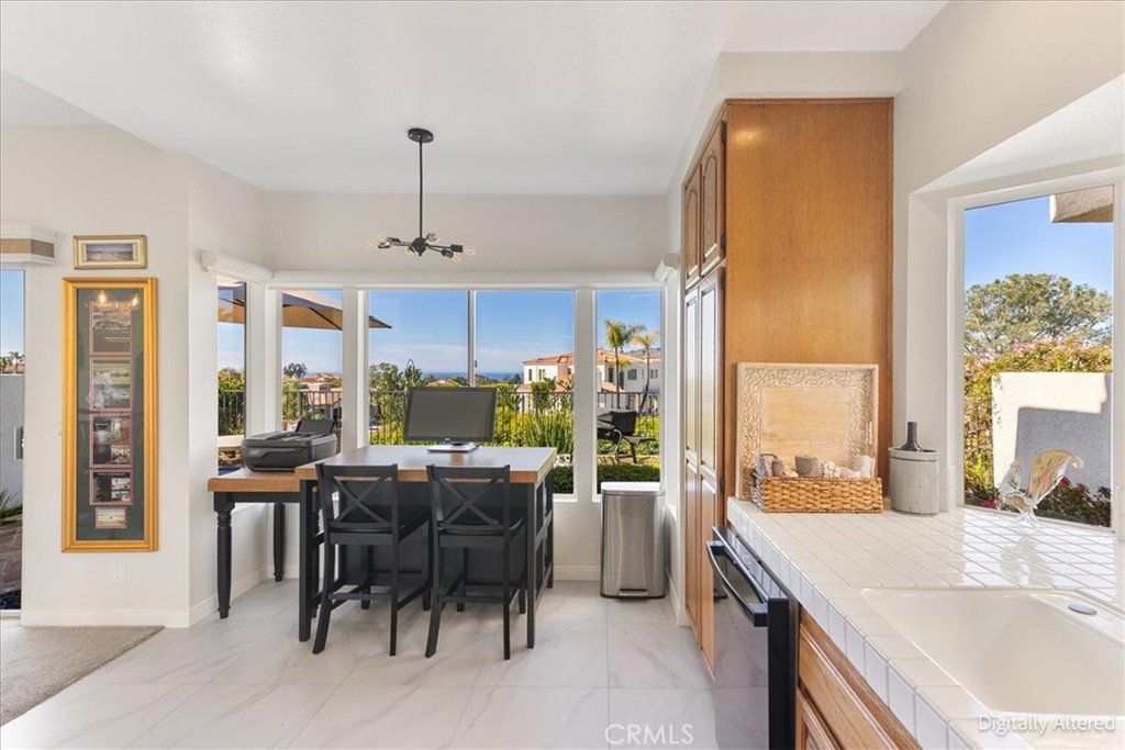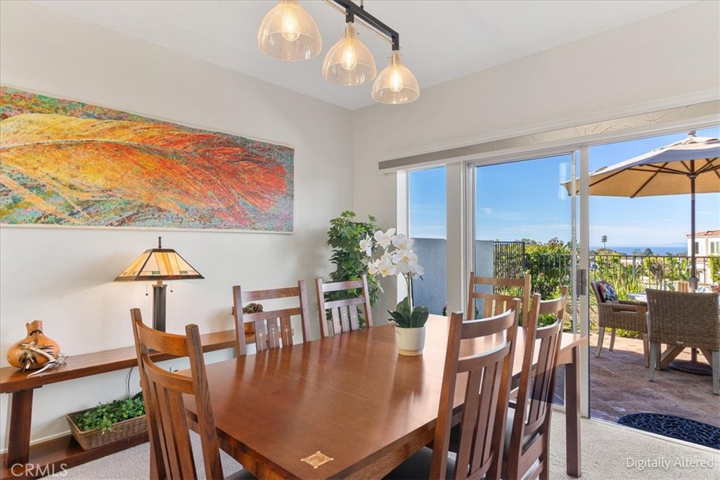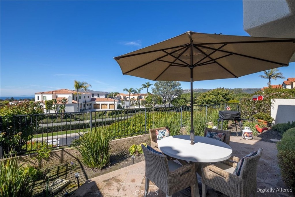 Panoramic and Shimmering Ocean Views!!! This beautifully situated home faces Southwest, offering incredible Ocean and Catalina Island views from both levels (downstairs and upstairs, plus the yard). It is located in Monarch Beach, a 24-hour guard-gated community within walking distance to Salt Creek Beach, The Strand Beach Park, Waldorf Astoria Resort & Spa, Monarch Links Golf Course, and the Ritz Carlton Laguna Niguel. This is a premier location in Dana Point's coveted and beautiful Monarch Beach neighborhood within the Antigua tract. This home is in excellent condition and lovingly cared for by the original owner and a previous long-term tenant. The lovely residence was completely painted from top to bottom inside in a crisp, fresh white paint. This home boasts two-story ceilings, is extraordinarily light and bright, with raised panel oak cabinetry, hand-set tile counters, Jenn-Air oven and microwave combo, hoodless electric cooktop, dishwasher and refrigerator, newer LED recessed lighting, newer ceiling fan with lights in all bedrooms, remote control shades in kitchen and dining areas, marble gas fireplace in the living room with fire-glass, eat-in kitchen area plus dining room, large living area with dramatic high ceilings, Dupont Corian counters in bathrooms plus mirror and lighting updates, and washer-dryer hookups in the direct access two-car garage. The primary bedroom suite upstairs has an ocean-view balcony with panoramic views in both directions. The bathroom has a nice walk-in closet, dual vanity sinks, a soaking tub, and a walk-in shower. Amazing Sunset Views!!! The other two bedrooms are at the opposite end of the hallway, and each has access to a rear balcony. On the exterior, a double-door entry from the private, gated front yard wraps around to the backyard. The sunny, south-facing backyard has stone tile, low-maintenance landscaping, and fabulous ocean views. Enjoy the endless, cool ocean breezes and views from this unbelievable location. This location is conveniently located near the front or back entrances of the community (off of Niguel Road or Stonehill) for easy access to the beach, downtown Dana Point, and transportation. The Dana Point trolley runs throughout the summer and connects to San Clemente, San Juan Capistrano, and Laguna Beach trolleys. The 5 freeway is easily accessible via Stonehill and Camino Capistrano.