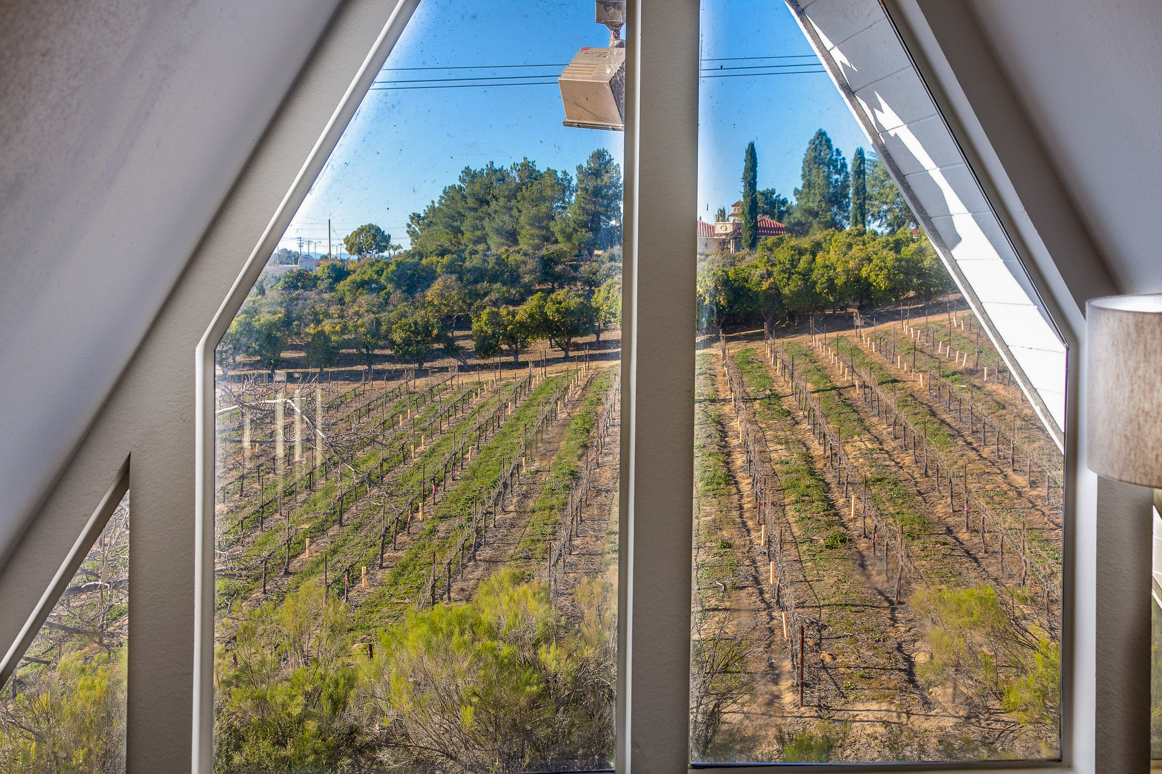 Stunning Architectural Gem Located in the heart of Temecula Wine Country. This Unique Style Property Offers High Ceilings and Multidimensional Walls, Angles and Skylights. Walk to the Award Winning Wineries, Enjoy Beautiful Wine Country Views, Sunrises and Catch a Glimpse of Hot Air Balloons Flying Above. Main Residence Includes Three Bedrooms and Three Bathrooms. Separate Entrance Guest Quarters Include Another Bedroom/Loft, Living Area, Full Bathroom, Small Kitchen and Balcony. Office Area Includes Several Small Offices, Workshops, "Harry Potter Room" for Storage, Large Bedroom and Bathroom. Three Car Garage is Oversized with High Ceilings and Tall Garage Doors. Multiple Storage Sheds on the Property. Current County Land Use is Wine Grape Vineyard. Seller would consider a lease back @ $15,000 per month for one, two or three years.