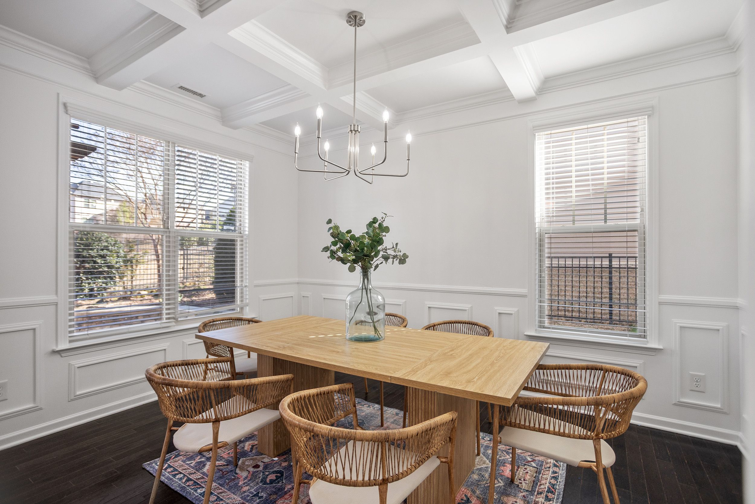 Nestled in the sought-after Rustica Oaks community, this move-in ready home offers the perfect combination of style, comfort, and convenience. Thoughtfully updated and beautifully maintained, the home features fresh interior paint, updated lighting, and brand-new carpet upstairs, creating a bright and welcoming feel throughout.The main level is designed for both everyday living and entertaining, with an open-concept layout, gleaming wood floors, and a spacious family room with coffered ceiling and gas fireplace. The kitchen is both functional and stylish, featuring quartz countertops, tile backsplash, gas range, and seamless flow into the dining and living areas.Upstairs, the primary suite offers a private retreat with a sitting area, dual walk-in closets, and a spa-like bath featuring a soaking tub and separate shower. Three additional bedrooms share a well-appointed bathroom with double sinks, and a dedicated laundry room adds everyday convenience.Outdoor living is equally appealing, with a fully fenced, flat backyard and patio space perfect for relaxing or entertaining.Residents of Rustica Oaks enjoy access to neighborhood amenities including a pool, playground, and sidewalks, all within a welcoming, fun, dog-friendly community. Ideally located just minutes from Brier Creek, Southpoint Mall, RTP, andmajor highways including I-40, Hwy 147, and I-540, this home offers easy access to everything the Triangle has to offer.With itsthoughtful updates, functional layout, and prime location, this home is truly move-in ready and not to be missed.
