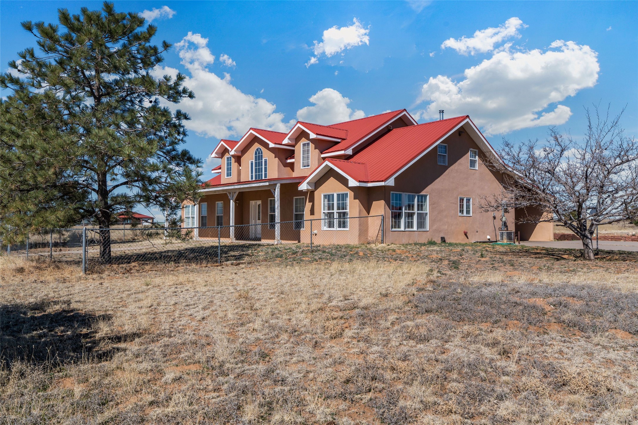 In Los Caballos Subdivision, Santa Fe County, a sought-after area popular with horse owners for its easy access to town, 9 Jacinto Road has the elements to create a significant equestrian property. Located on 10 level acres only 20 minutes south of Santa Fe is a 3434 sq. ft. two-story, five-bedroom, four bath residence; horse amenities with a 2818 sq. ft. six stall horse barn with large courtyard, turnouts, tack room with 1/2 bath, hay storage, arena, and roping corral. In addition, there is an 1805 sq. ft. workshop/garage building with mechanic’s pit. All buildings have a pitched pro-panel roof. This is an Estate sale. Buyers should anticipate making additional investment after acquiring the property.