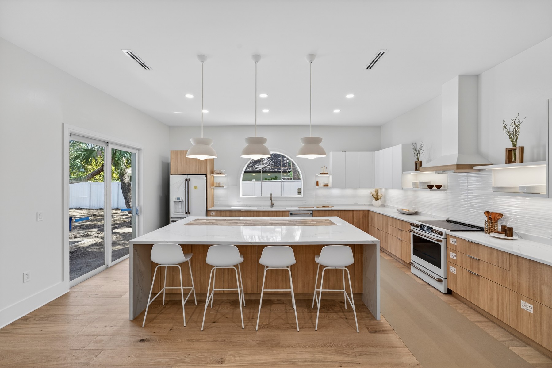 Just completed in new Riomar Beach, just one block from the ocean. This exceptional 3-bedroom, 2.5 bath residence blends refined coastal living with elevated design, featuring white oak flooring, custom cabinetry, quartz counters, and waterfall-edge island complemented by GE Café appliances. Quiet, light-filled interiors offer high ceilings and a spacious primary suite. Enjoy seamless indoor-outdoor living with a private pool, impact windows and doors, and 2-car garage. One of just three newly built homes in this coveted enclave, next to the new Tides restaurant and moments from Ocean Drive’s dining and shopping.