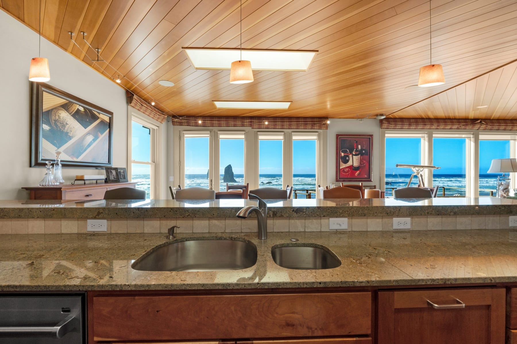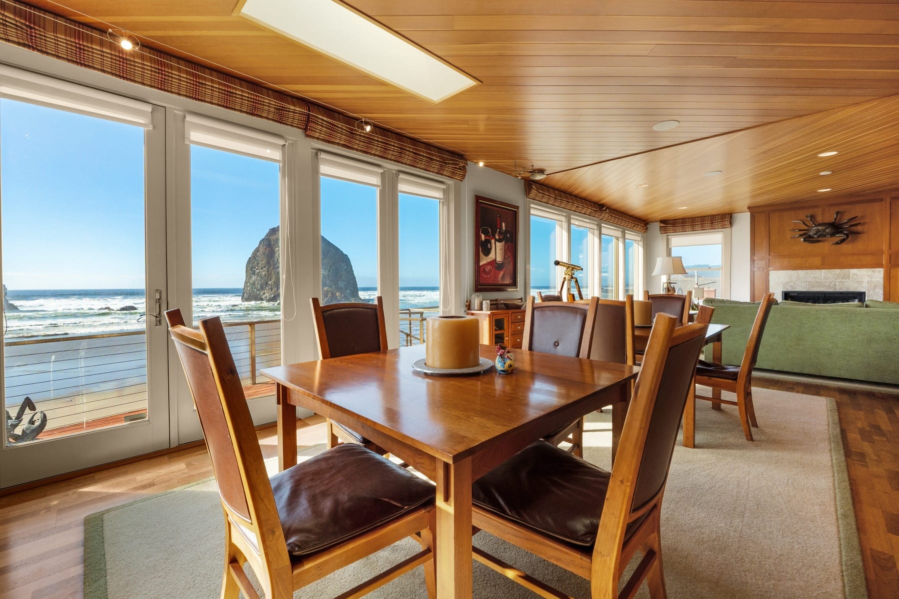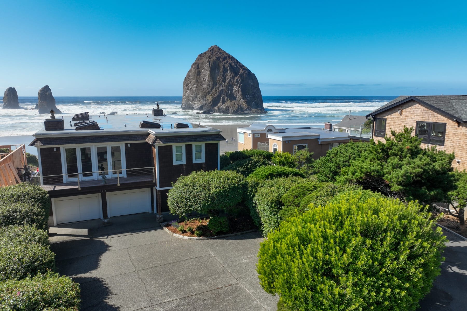 Extraordinary masterpiece property facing the proverbial Haystack Rock and Needles of Cannon Beach! This exquisite custom oceanfront home is a short walk to midtown and downtown Cannon Beach, boasts 4,127 square feet, 5 bedrooms , 6.5 bathrooms, a gourmet kitchen, a private path to the beach and not to mention surreal expansive ocean views! This stunning home offers four en suites, stainless Steel appliances , superb high end wood finishes, an elevator, two decks, a beautiful spiral staircase from the deck to the garden below where you are steps away from the sand. Built with incredible craftsmanship, attention to detail, and privacy in mind, it has been meticulously maintained over the years and is being offered furnished. With Cannon Beach being the pinnacle of the Oregon Coast and this impressive property located in front of its most iconic landmark, it is very seldom that opportunities such as this come along often where families and friends will relish in the amazing sunsets and cherish years of unforgettable memories.