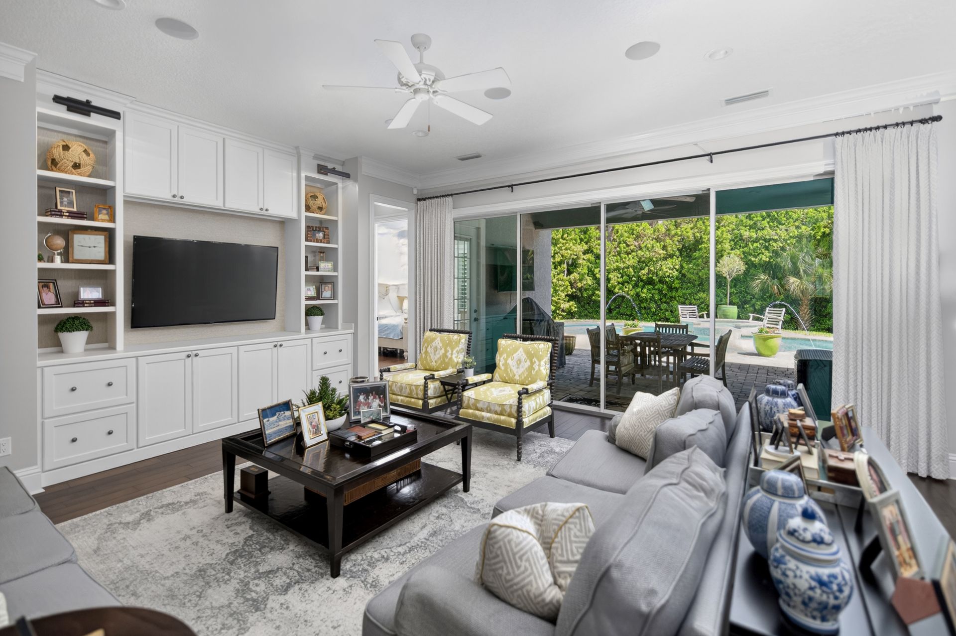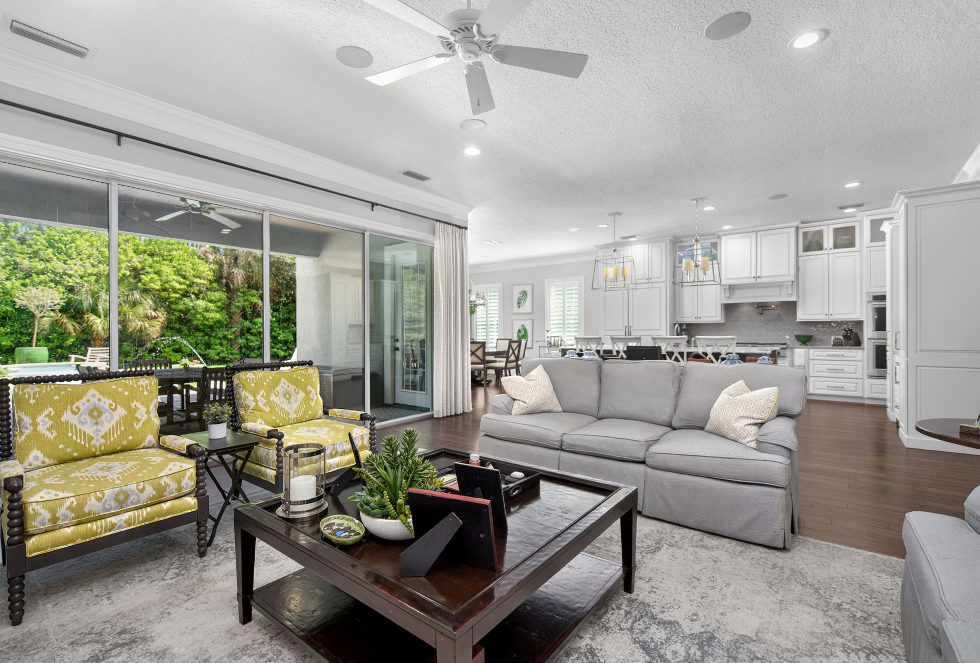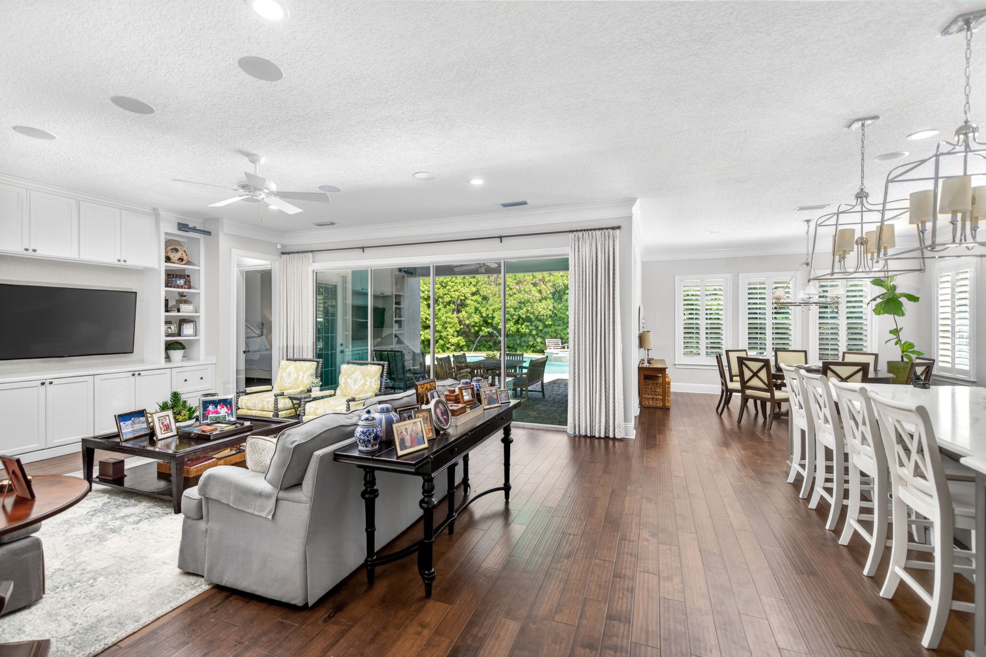 In the heart of Amelia Island !!! Come see this custom 2-story residence constructed by Magnolia Homes with a lovely swimming pool centrally located on the Island. Feel worlds apart on this spacious homesite off the beaten track while moments away from Island conveniences. Natural gas community, concrete block exterior walls with poured cells, 7-8-foot doors, tankless water heater, retractable sliding door system to rear terrace, and a whole-house generator are but a few of the details. Attractive shake, stacked stone, and stucco facade leads to an interior featuring dual primary bedroom suites (1 upstairs | 1 downstairs), hardwood floors, Plantation shutters, interior and exterior stereo system and solid core interior doors. The Kitchen is open to the great room and boasts a Thermador refrigerator, a 6-burner gas range with pot-filler, Quartz counters, maple cabinetry, and appliance slides. The approximately over half-acre lot fronts the .4-acre HOA common property, such green space benefit adds to the overall appeal. The back yard is an oasis...so much to enjoy with East-facing heated pool, fountains, lush landscape and unique privacy. Petite HOA with mild covenants and restrictions. When you do venture out, nearby is the oceanfront Ritz Carlton Hotel with 5-star dining, the Florida Trail walking and bicycle path, the Harris Teeter grocery, various access points to the beach with miles of pristine shoreline, boutique shopping, the Fernandina Beach downtown Historic District, the Spa and Shops area at Omni, and the Palmetto Walk shopping district. Southern charm, Amelia-style!