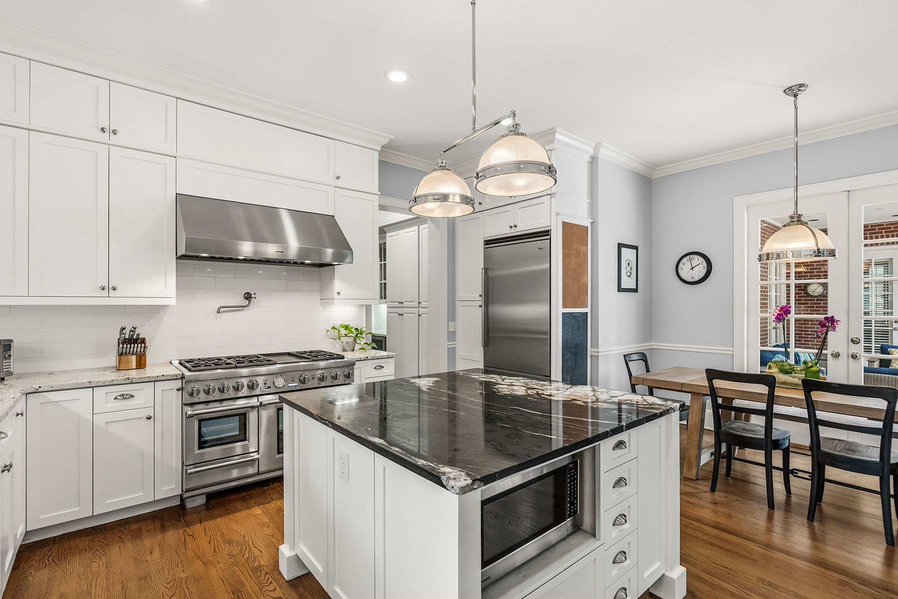 Set along a picturesque, tree-lined street in the heart of College Park, this stunning four-bedroom, three-and-one-half bath brick residence offers timeless elegance paired with modern upgrades and exceptional livability. From its charming curb appeal to its thoughtfully designed interior, this two-story home is a standout. Inside, beautiful wood floors flow throughout the main living areas, setting a warm and inviting tone. A dedicated office with French doors provides a work-from-home retreat, while the formal living room, complete with custom built-ins and French doors, opens seamlessly to the outdoor entertaining space. A gracious formal dining room connects to the kitchen via a convenient butler's pantry, ideal for hosting. The open-concept kitchen and family room serve as the heart of the home. The kitchen is equipped with high-end appliances, including a Thermador 6-burner gas range and a Viking refrigerator, and overlooks the spacious family room, recently enhanced with a full wall of custom built-ins (2025). The private first-floor primary suite is a serene retreat, featuring two sets of French doors that lead to the covered lanai and backyard oasis. The luxurious primary bath offers dual walk-in closets, separate vanities, a classic claw-foot tub and a walk-in shower. A laundry room, powder bath and a convenient drop zone from the garage complete the first level. Upstairs, you'll find three additional bedrooms, one with an en-suite bath, all featuring built-in closets. A cozy reading nook or media area adds flexible living space, while an impressive 15-by-11-foot climate-controlled storage room provides rare and valuable extra storage. Go outside to enjoy your private backyard retreat, complete with a sparkling saltwater pool, a newly installed putting green with turf (2022) and a new pool pump (2024), ideal for relaxing and entertaining. Additional highlights include a two-car attached garage, expanded driveway parking and a roof replaced in 2021. Ideally just moments from the charming shops and restaurants of Edgewater Drive in picturesque College Park, this home also offers convenient access to downtown Orlando, area hospitals and major sports venues. Enjoy proximity to the historic Country Club of Orlando, along with easy access to major roadways for seamless commutes to Orlando International Airport, Orlando Executive Airport and world-renowned theme park attractions. This exceptional home blends classic charm with modern convenience in one of College Park's desirable locations. Please refer to MLS attachments for a complete list of upgrades and improvements.