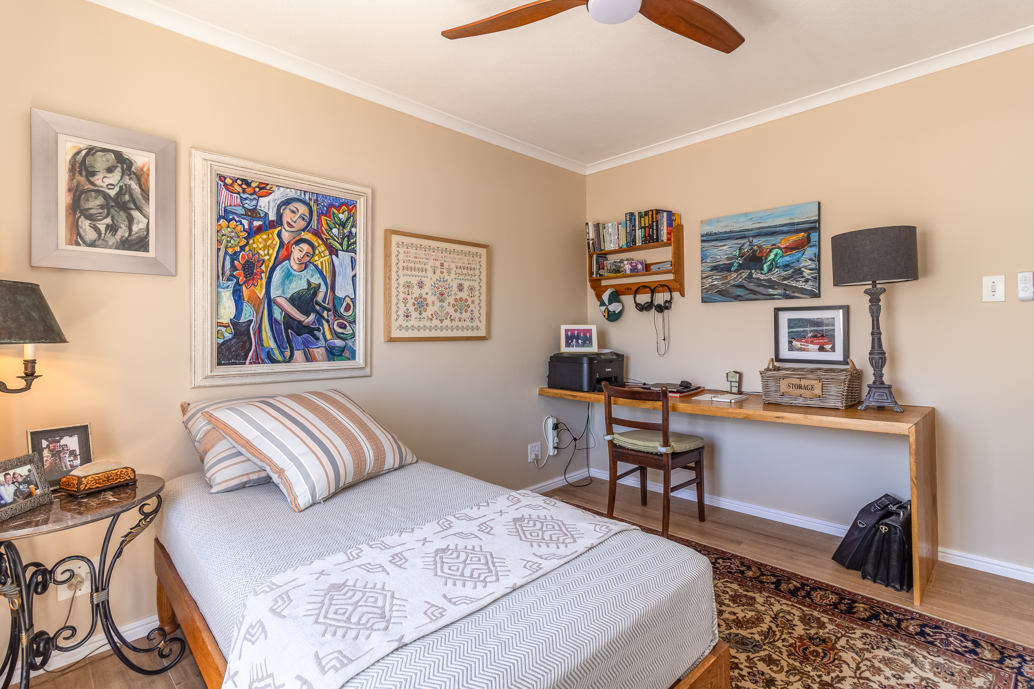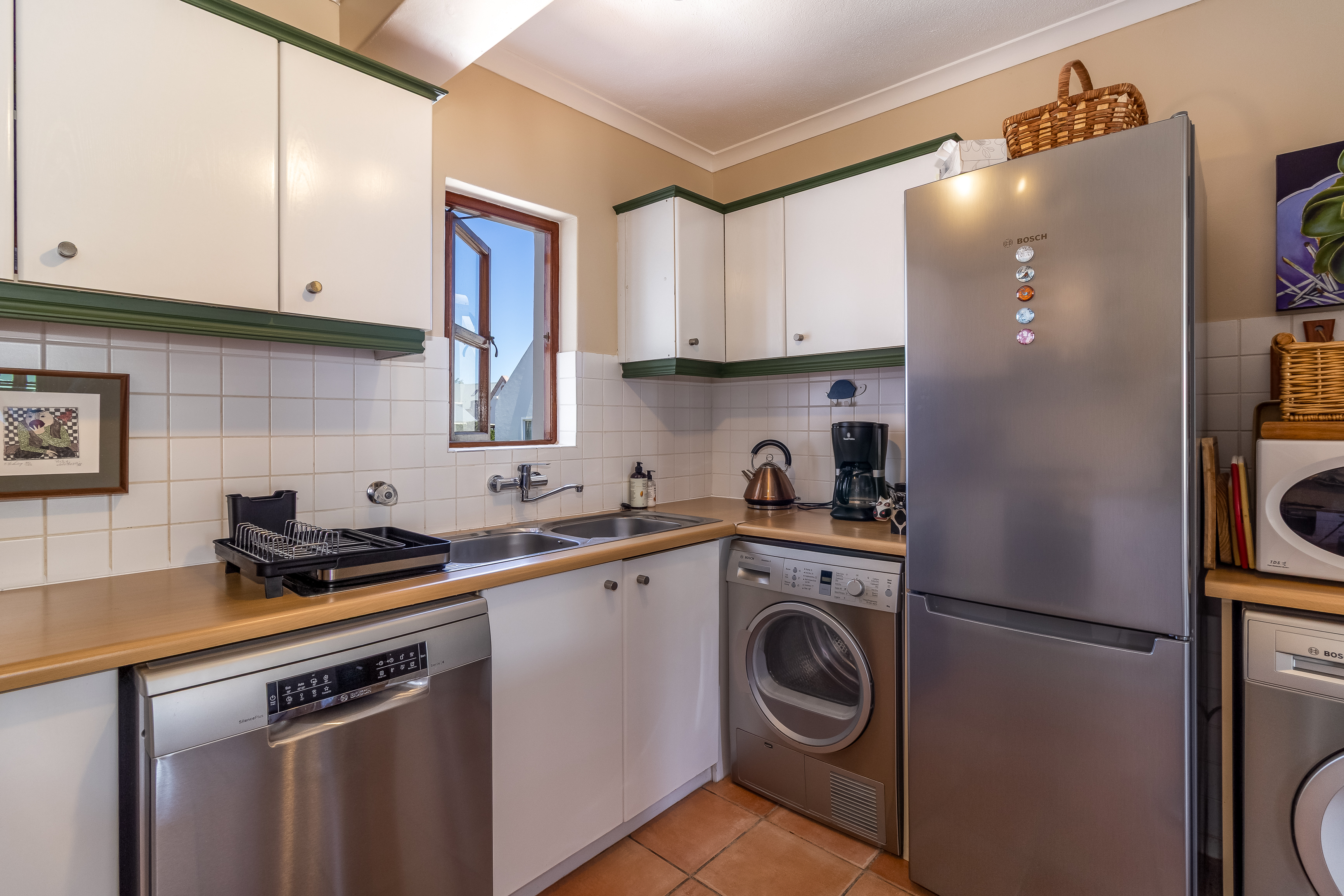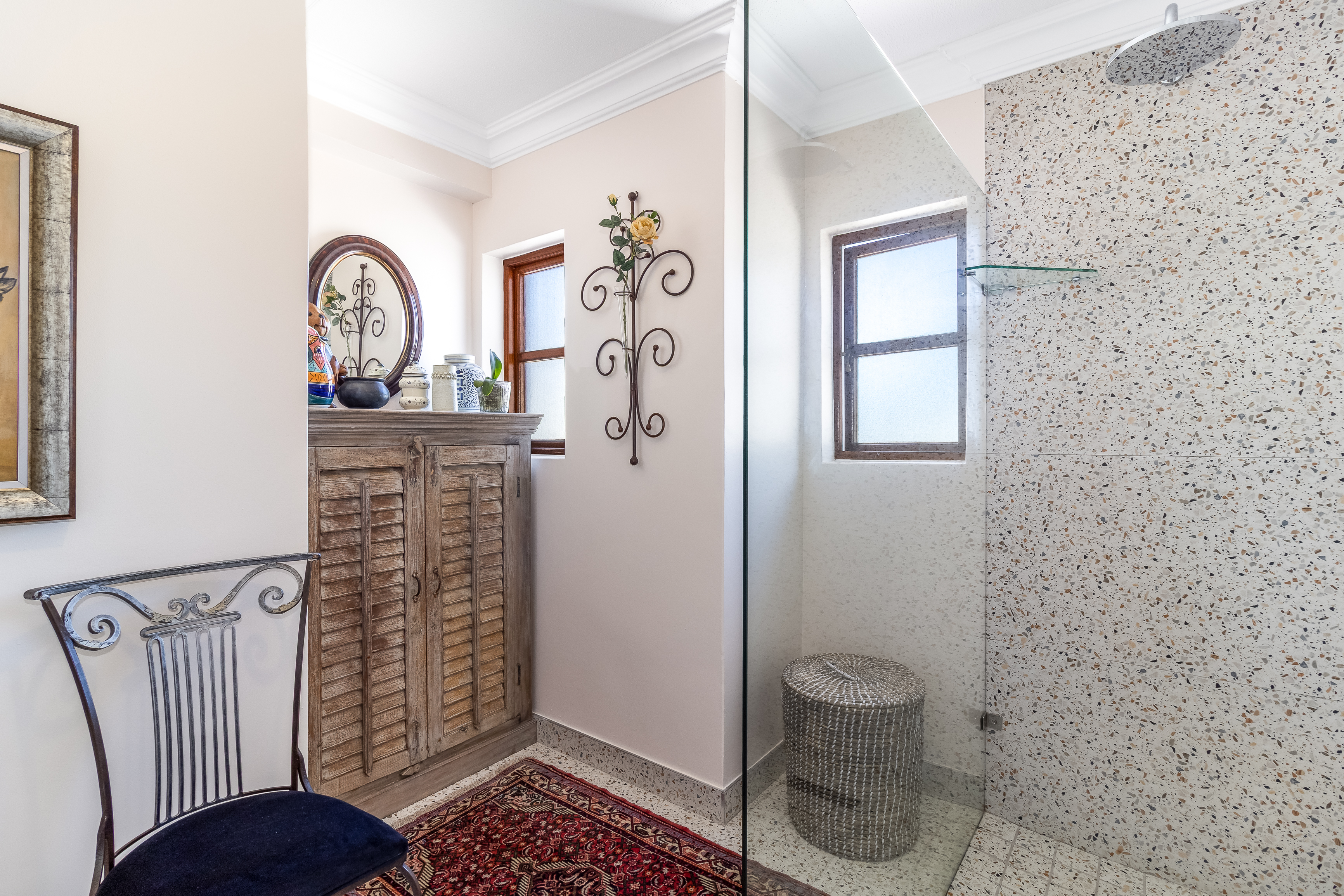 The well-considered layout includes a spacious main bedroom with a private en-suite bathroom, two additional bedrooms that share a stylish family bathroom, and a separate guest toilet for added convenience. A practical storeroom on the same level provides valuable additional storage, while the inclusion of lift access between floors ensures effortless everyday living, particularly for luggage, groceries or accessibility needs. A secure lock-up garage, a highly rare asset in central Stellenbosch, further elevates the convenience and value of this exceptional property.